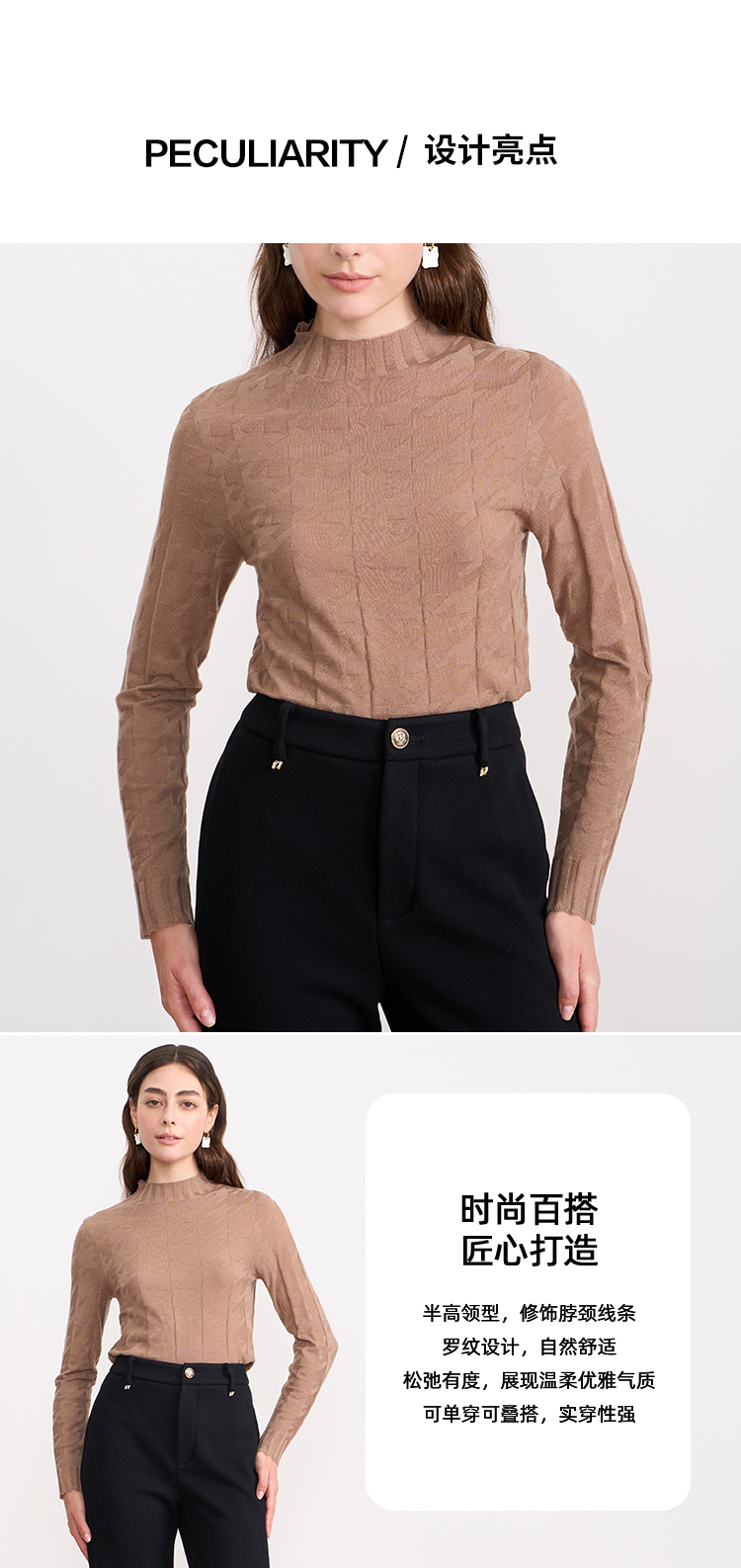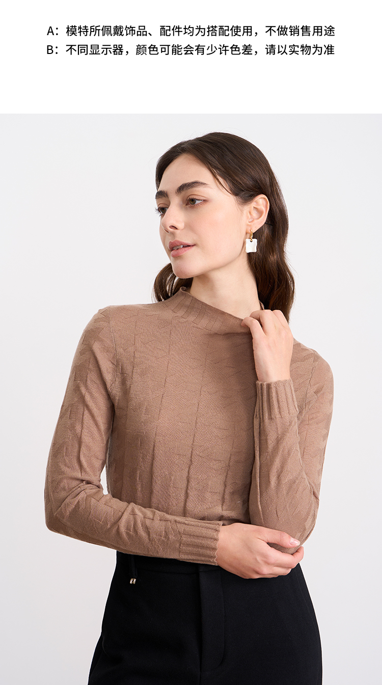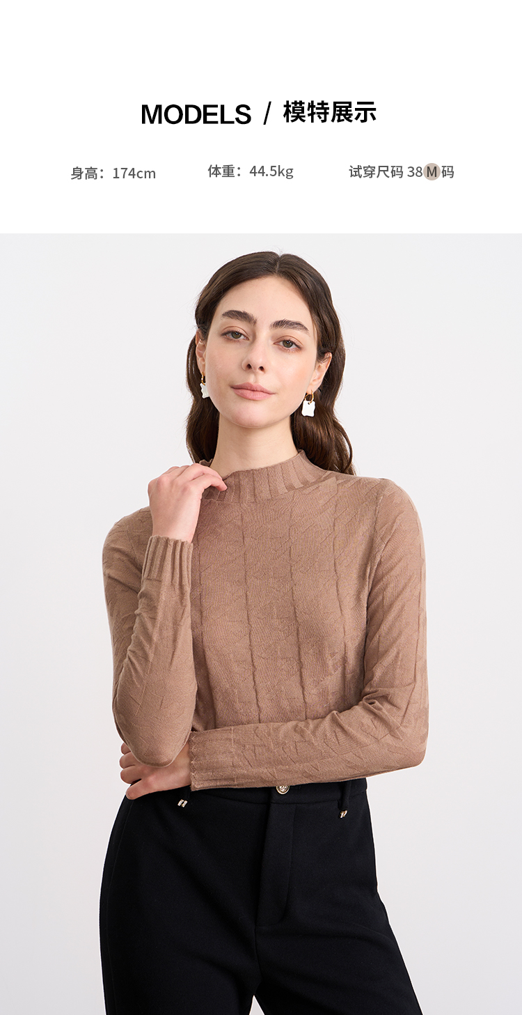 EITIE爱特爱半高领薄款舒适柔软修身显瘦打底针织衫C2501804