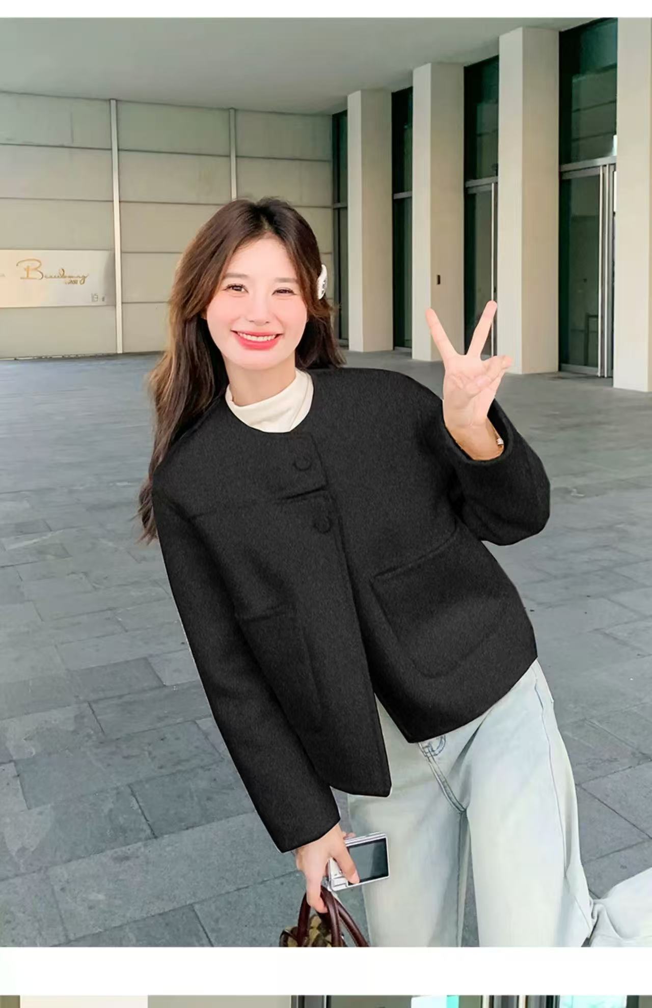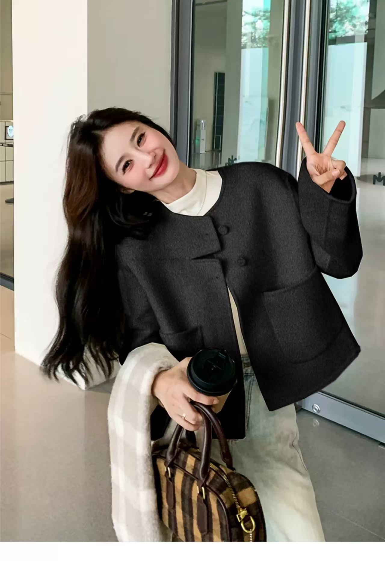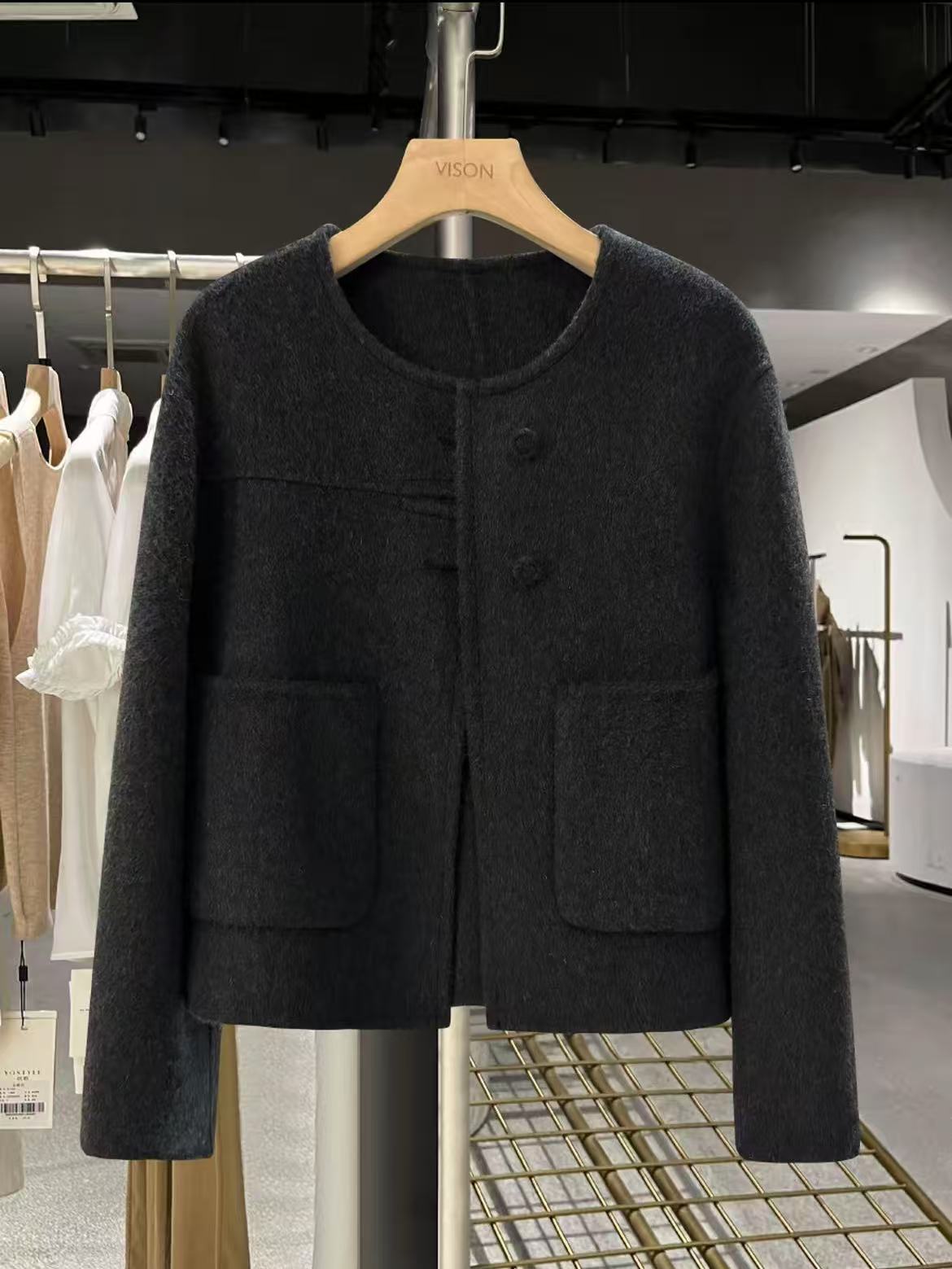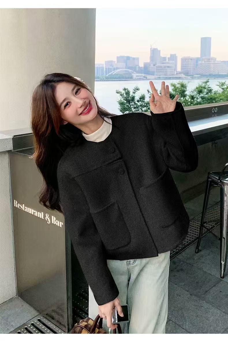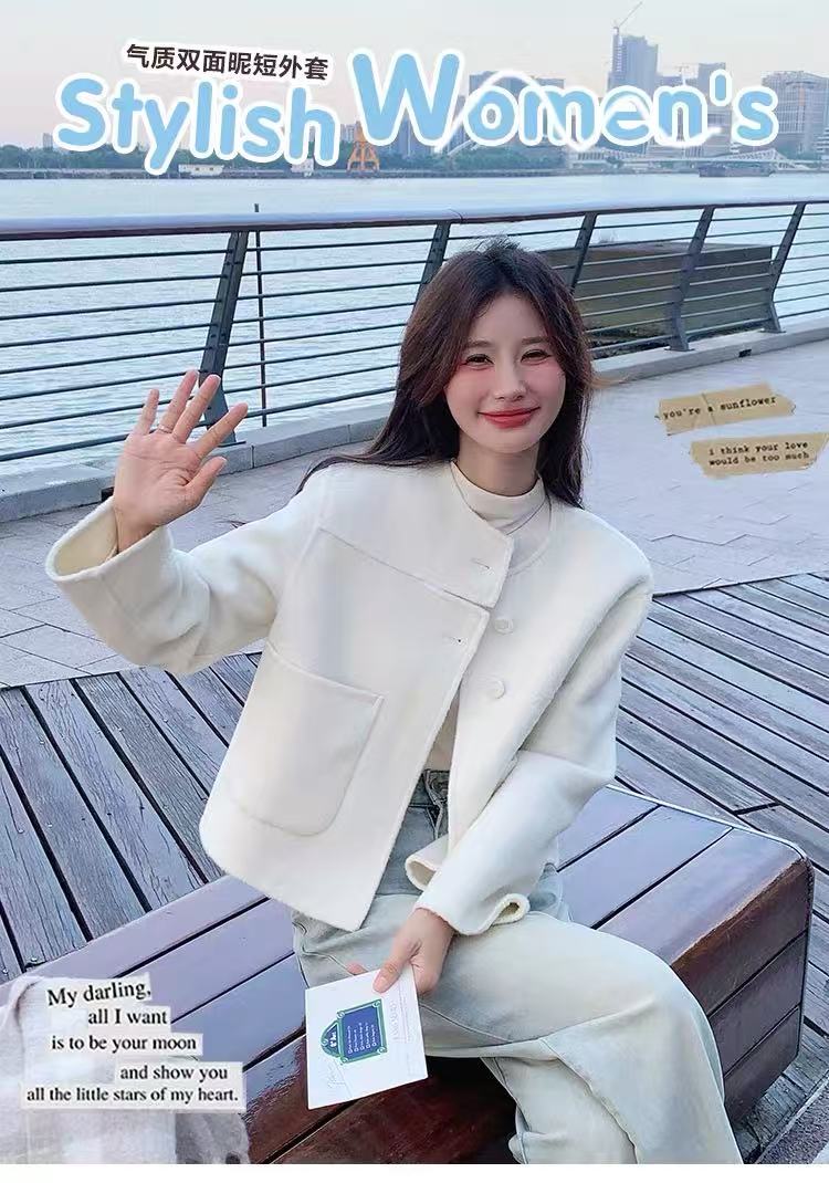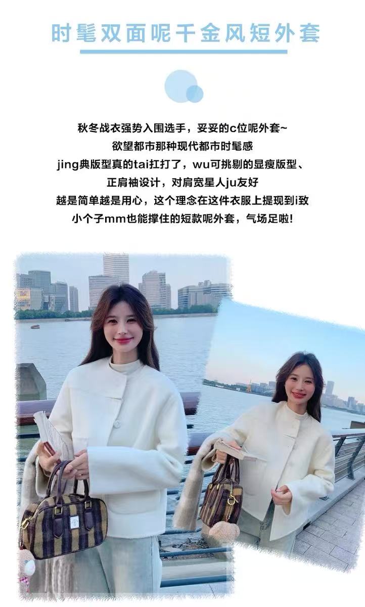 【高端系列】手工定制2253款69.2%绵羊毛短款双面尼外套-喜出