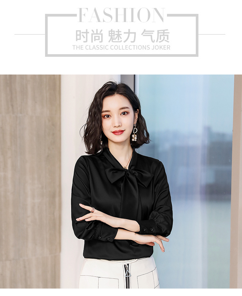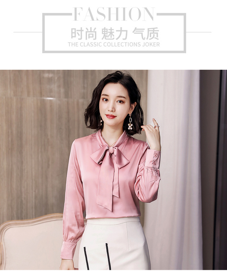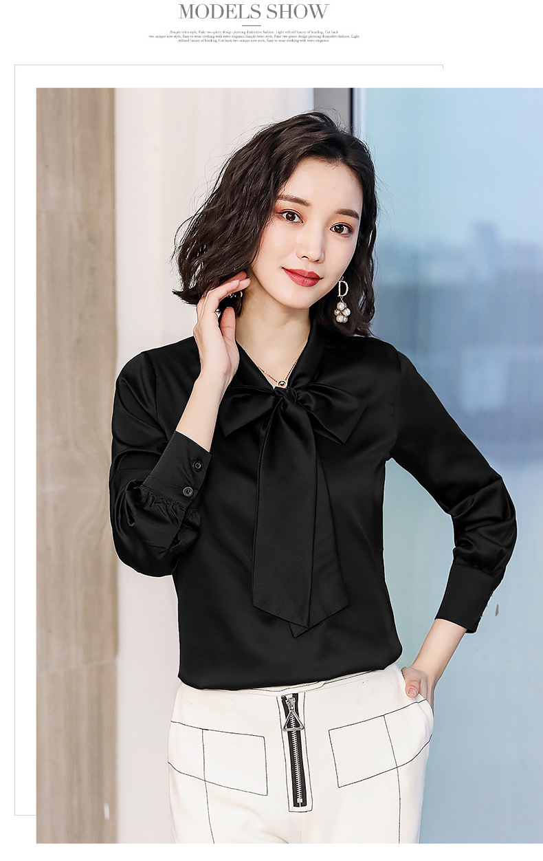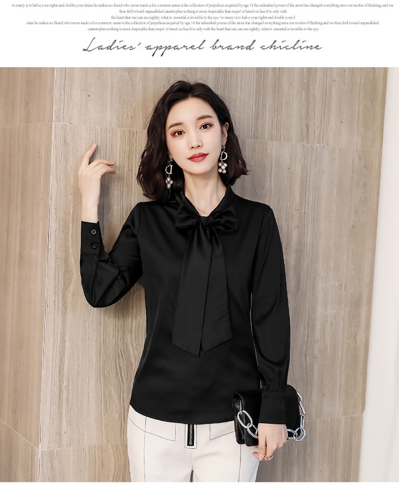 QQH-8018韩版蝴蝶结仿真丝短款宽松长袖纯色雪纺衬衫 TZW