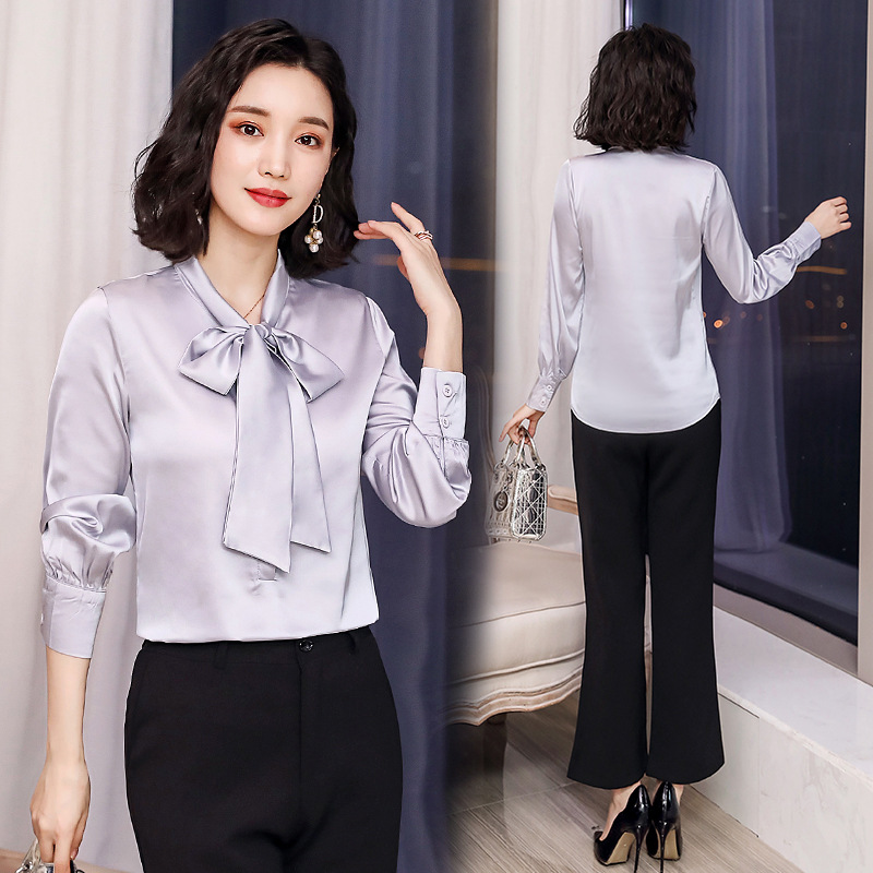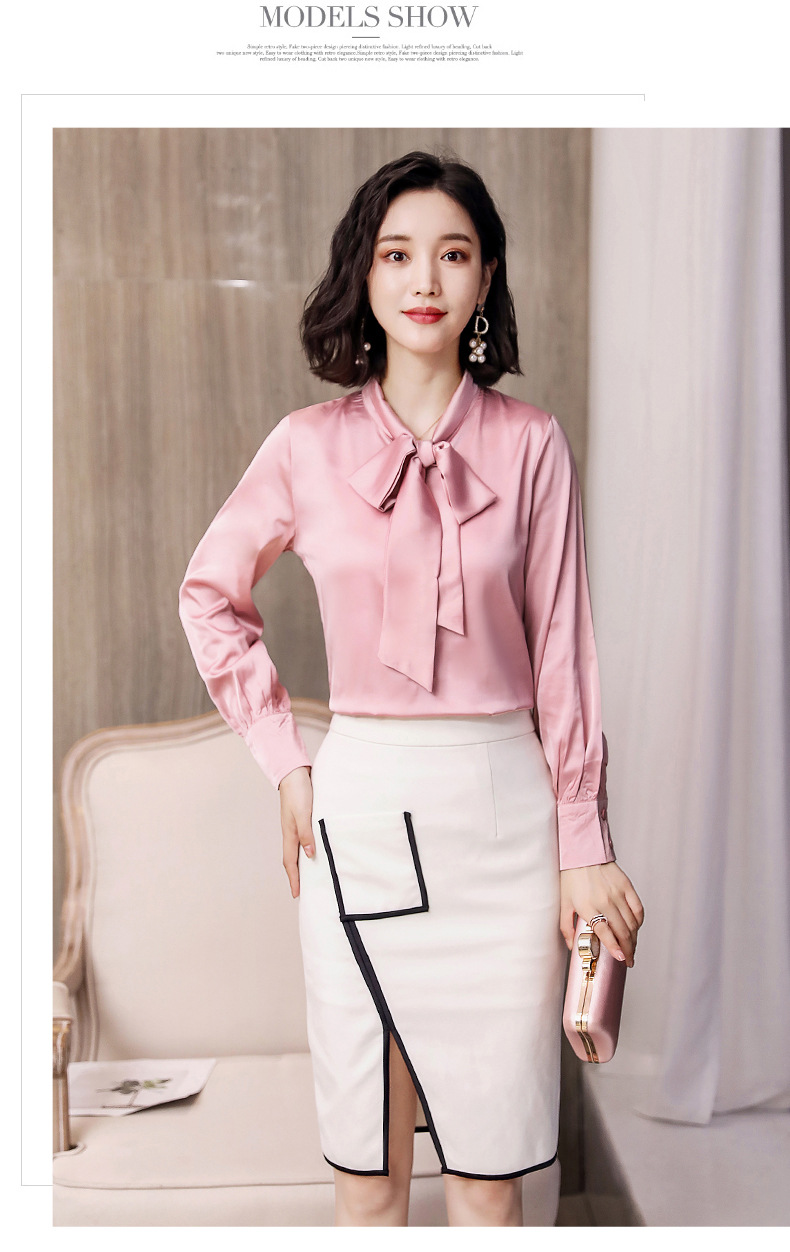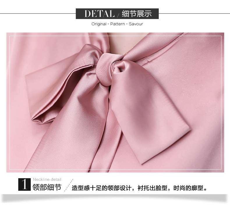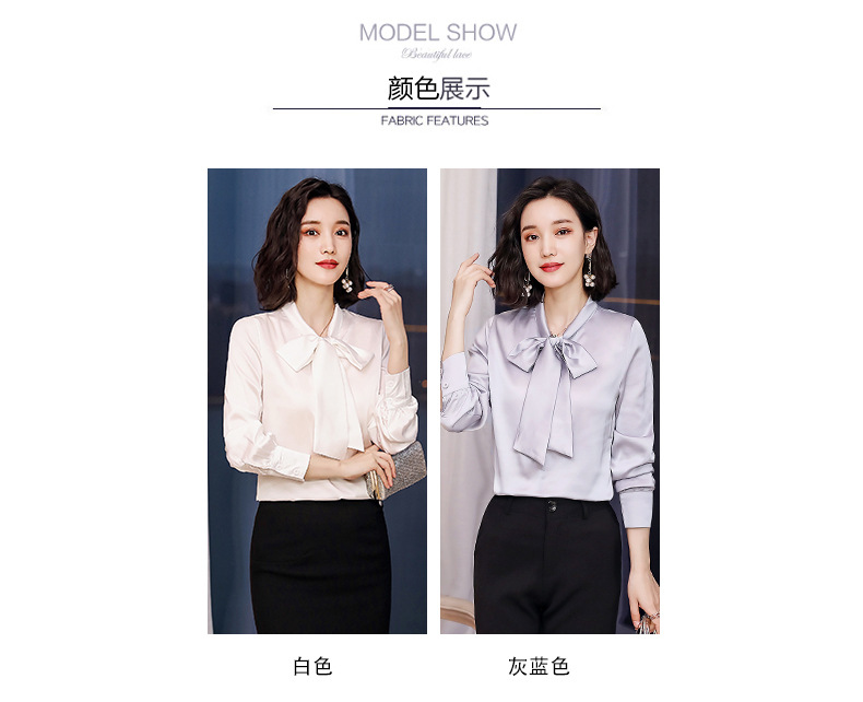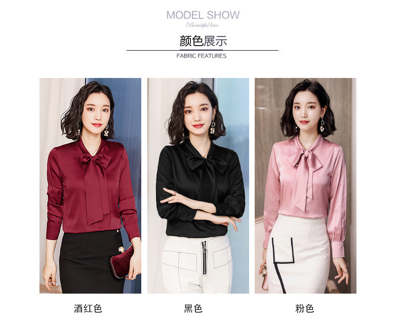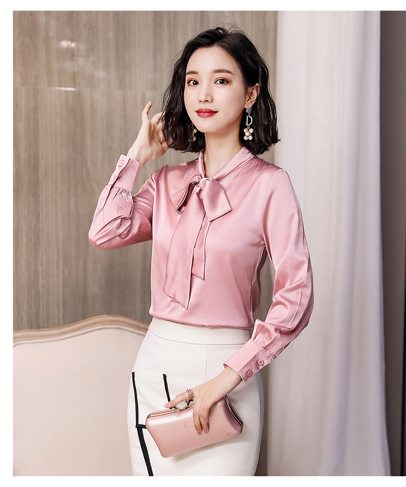 QQH-8018韩版蝴蝶结仿真丝短款宽松长袖纯色雪纺衬衫 TZW