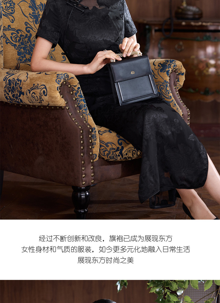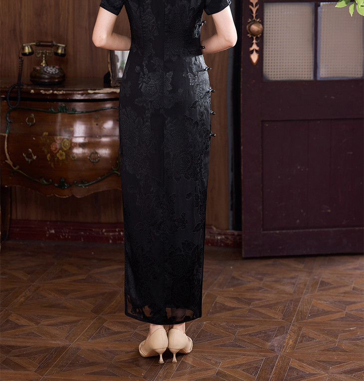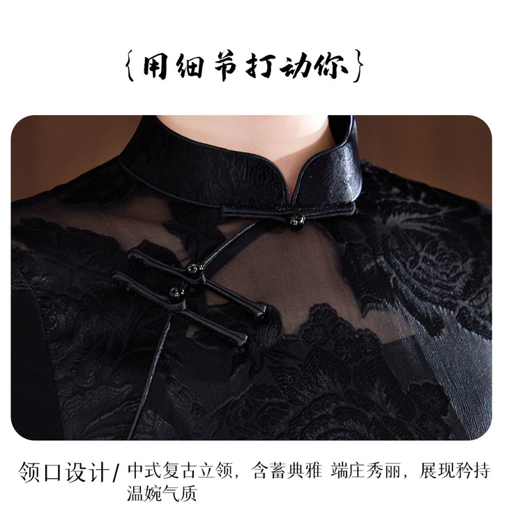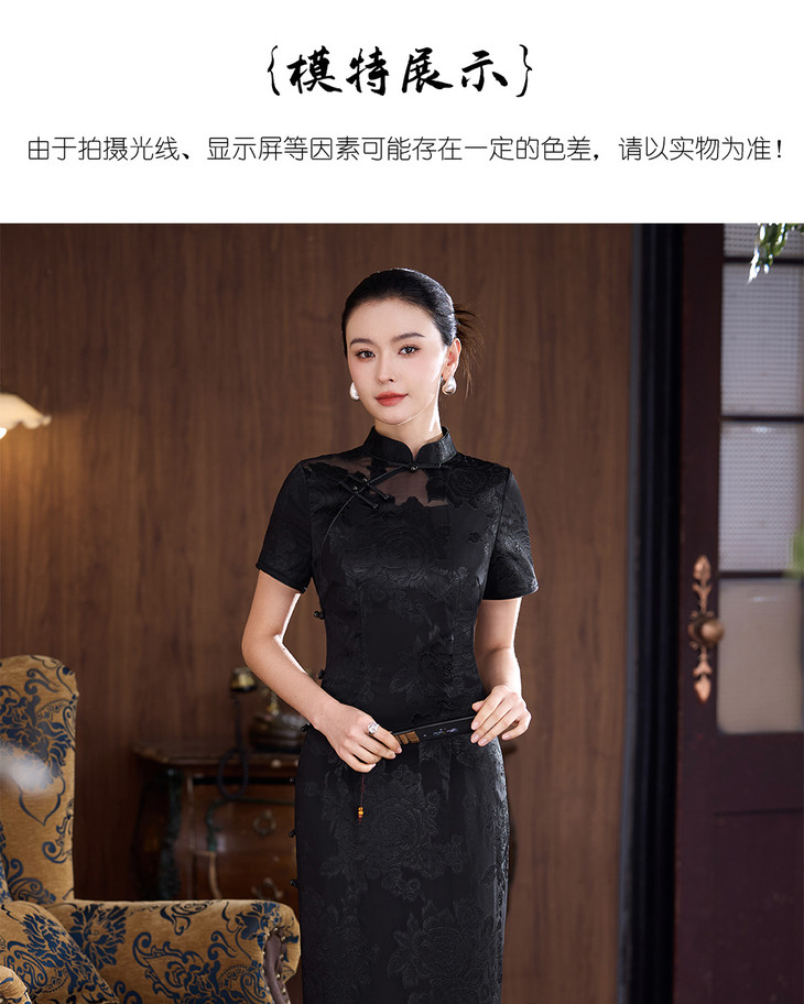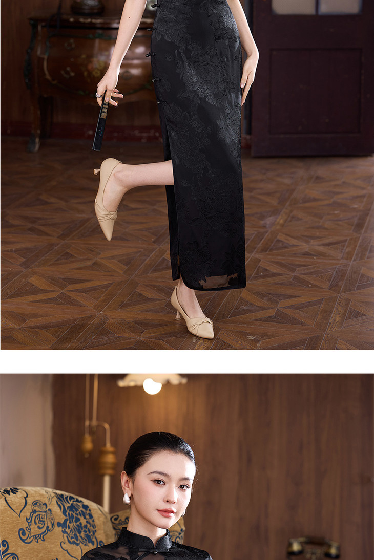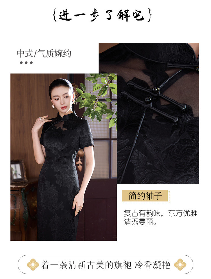 真丝旗袍剪花绡蚕丝黑色提花改良JD25068