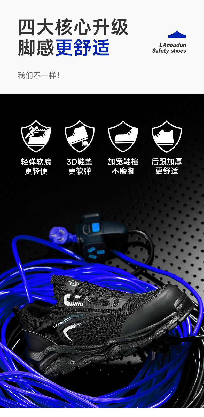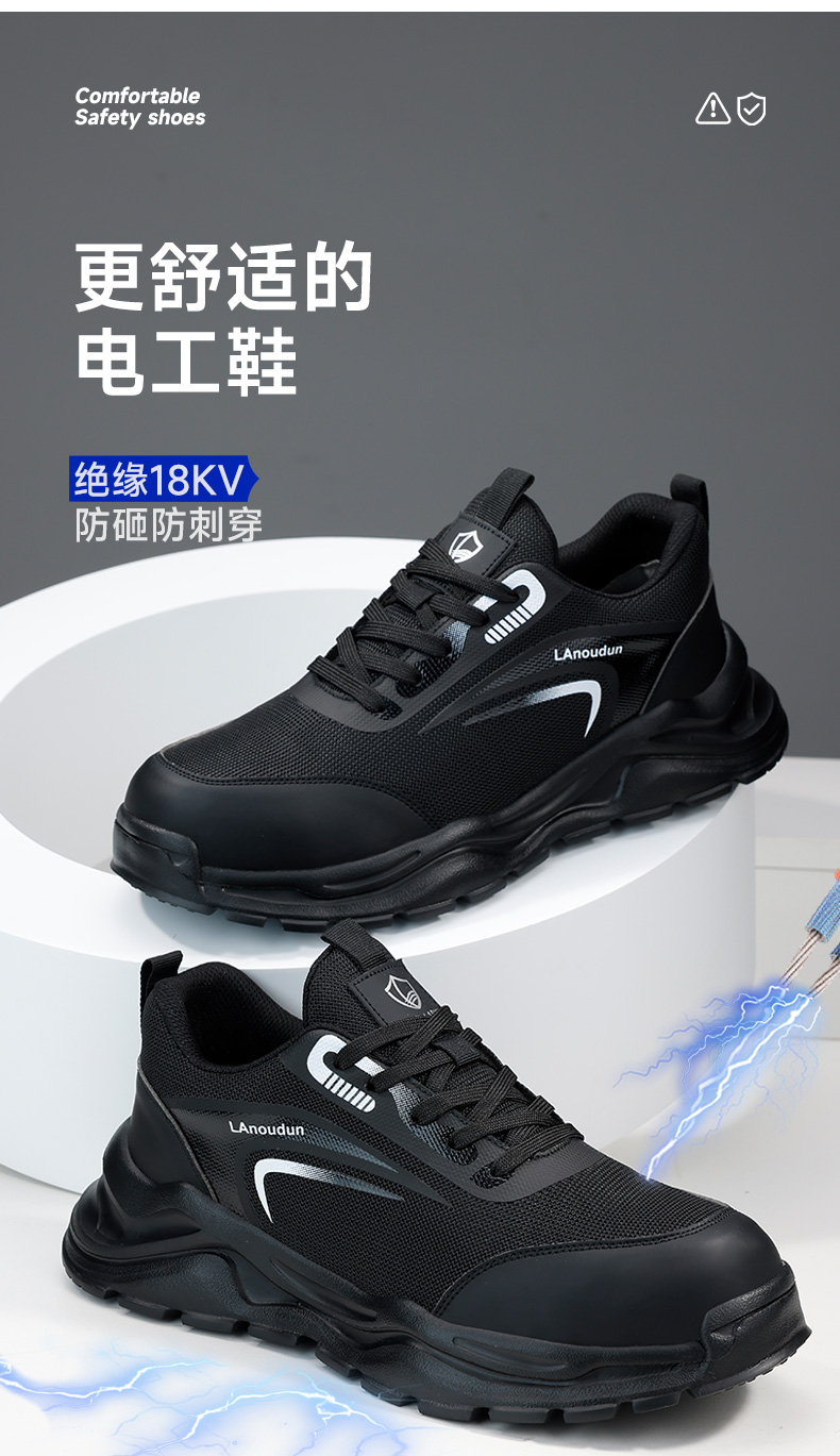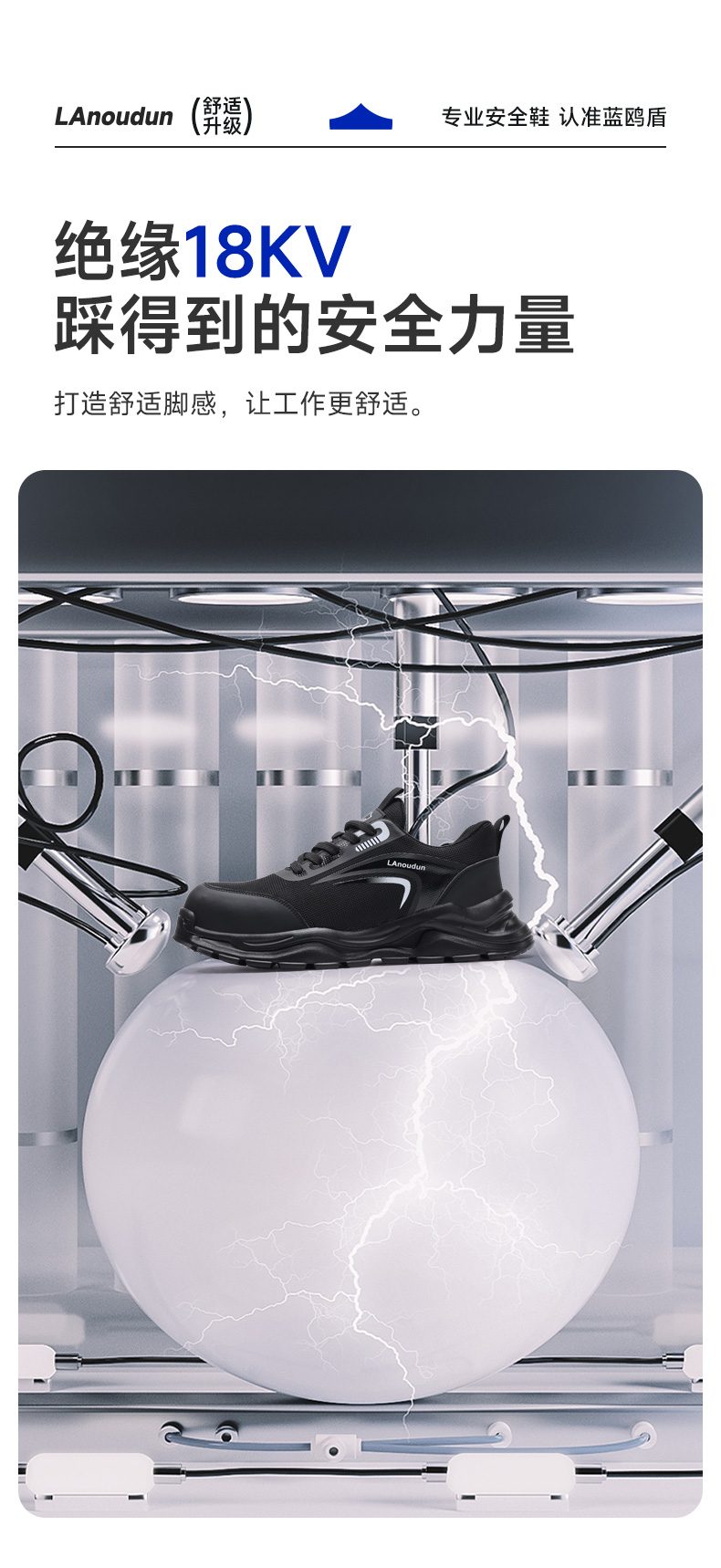 蓝鸥盾绝缘18KV欧标玻纤头达标4.0㎜凯夫拉底劳保鞋男防砸防刺橡塑底四季款轻便
