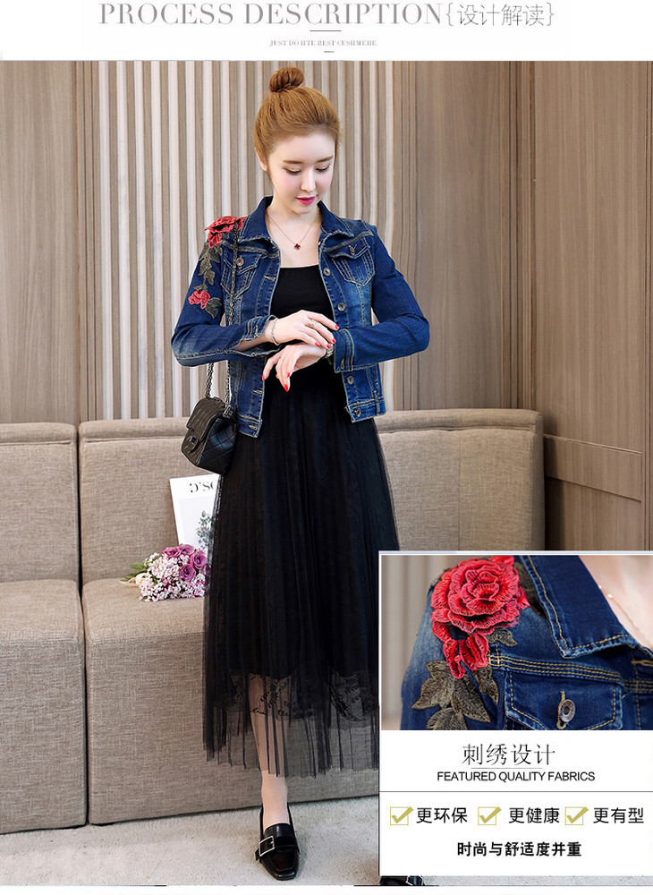 高弹力显瘦,玫瑰花刺绣牛仔外套 HT5251