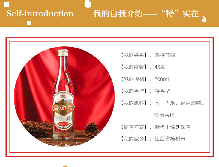 四特酒 莲四光瓶 45度 500ml 单瓶装