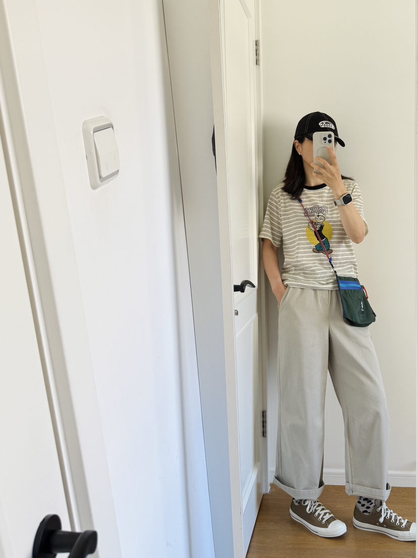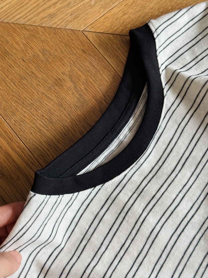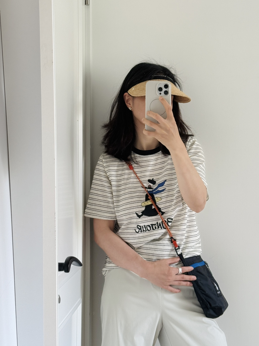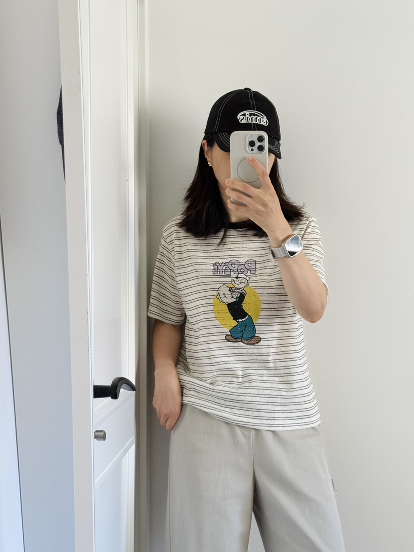 春夏标配好物,超清爽的条纹短袖T恤,不刻意的时髦,太爱! 宽松不拖沓的版型,包容性超强,颜色简单却又带点复古的条纹线条,清新的色织条纹配色超美,一眼圈粉,没有多余的点缀冗杂的设计