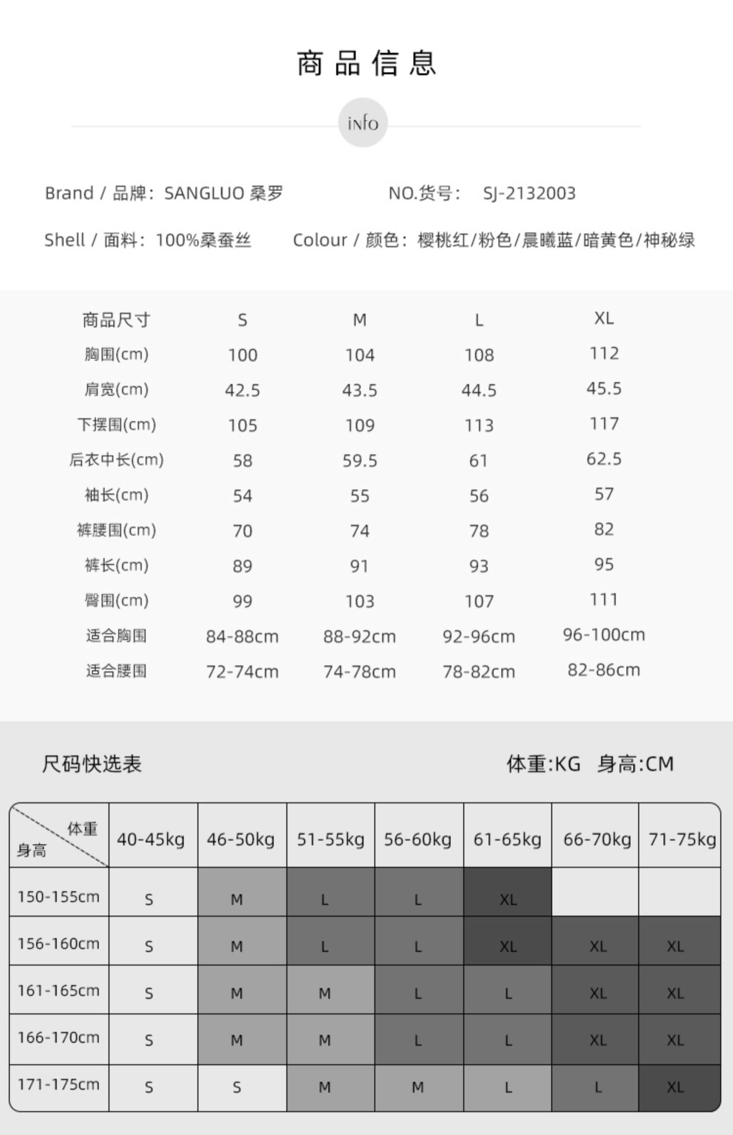 SANGLUO桑罗 黑科技玻尿酸桑蚕丝真丝睡衣套装【本商品不支持使用优惠券】