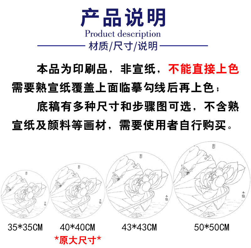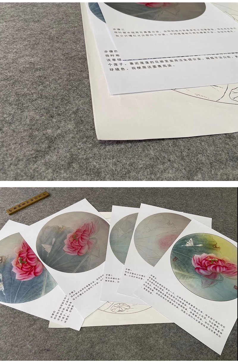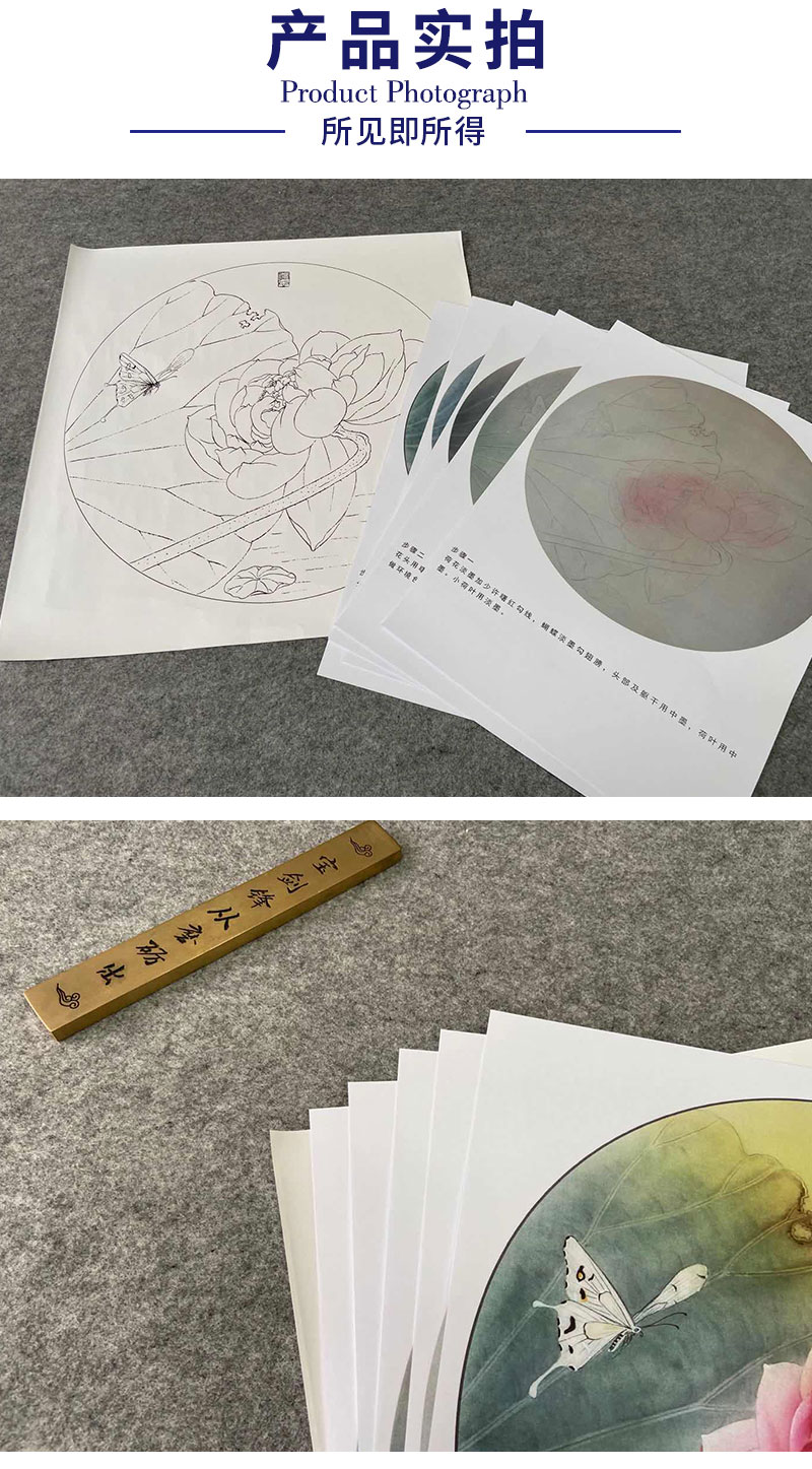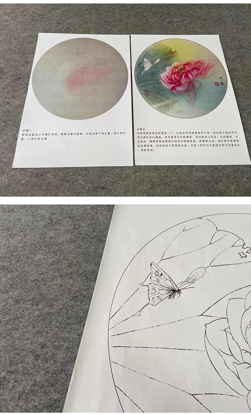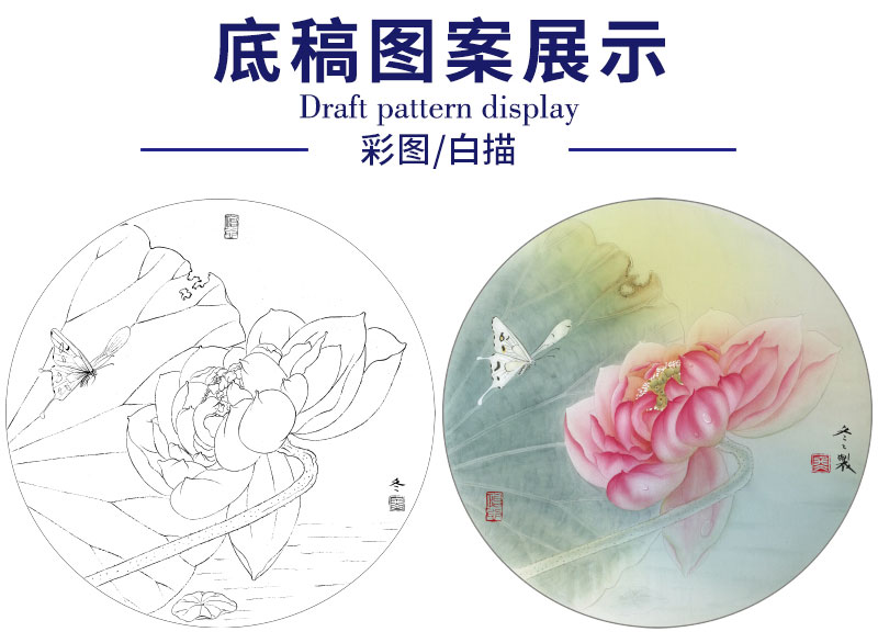 【有步骤、大彩图】杨冬冬工笔画白描底稿圆形小品《怡心》荷花蝴蝶初学者临摹花鸟线稿HD38