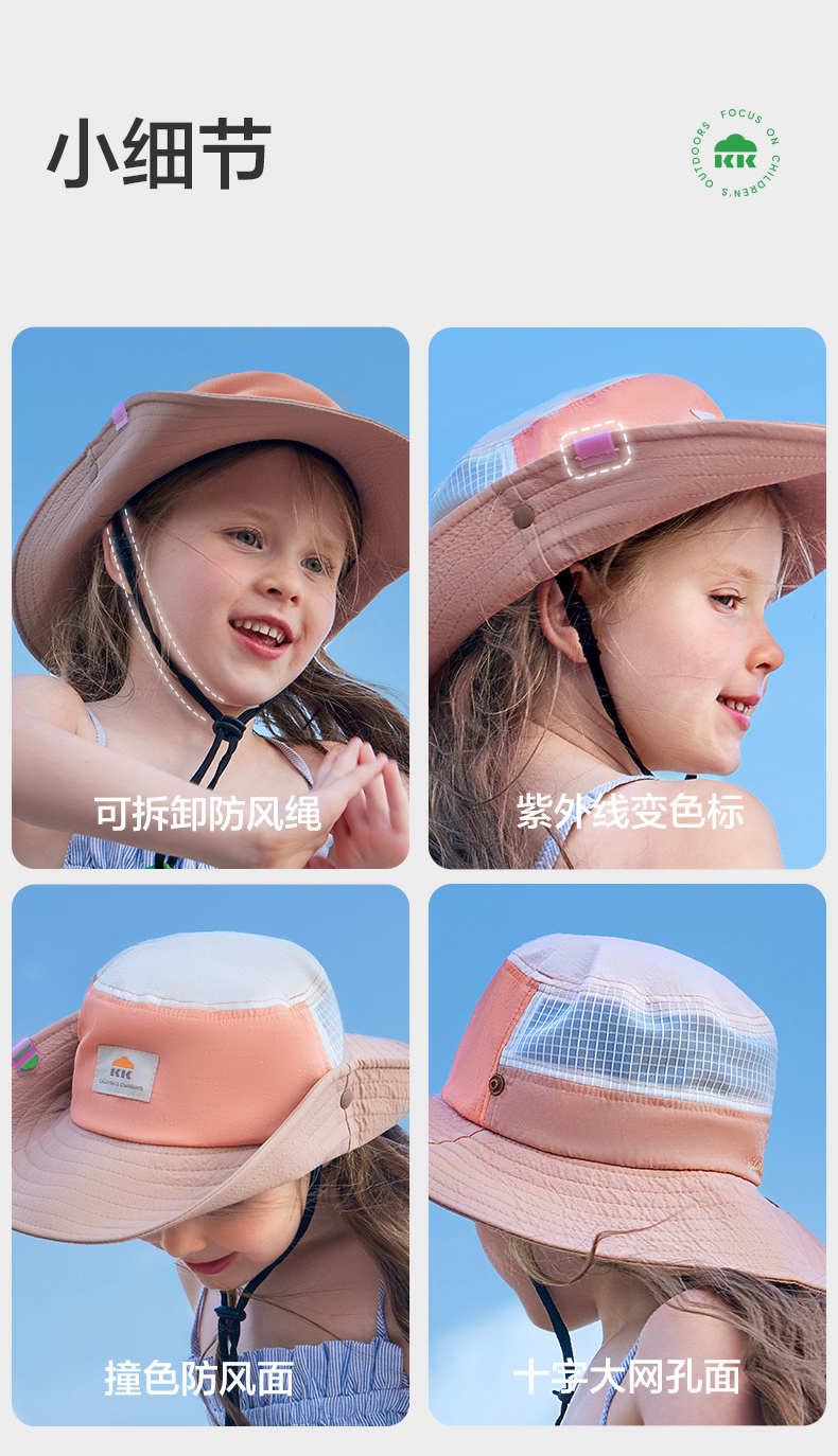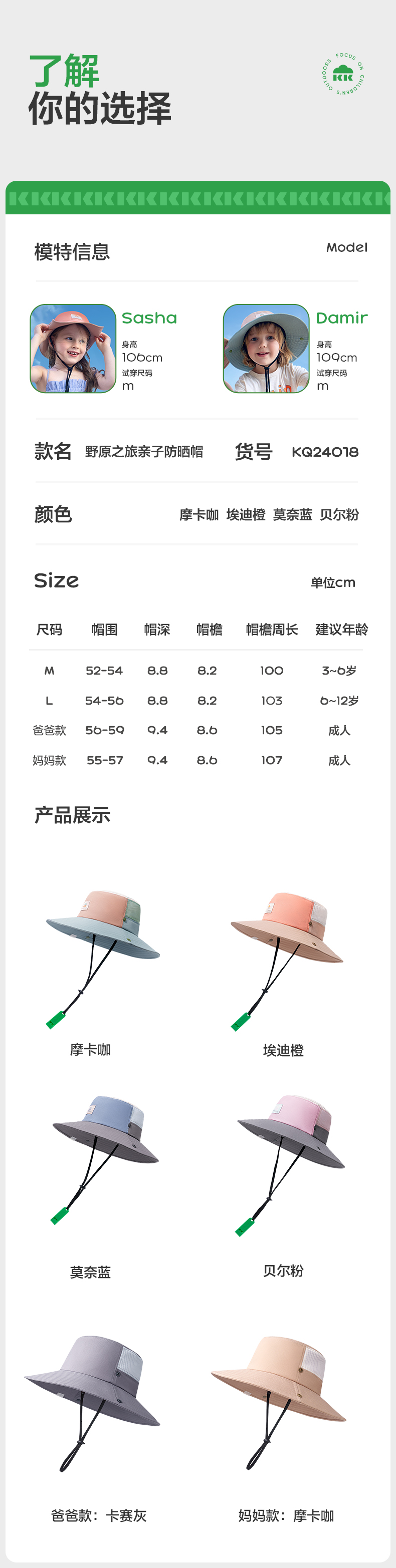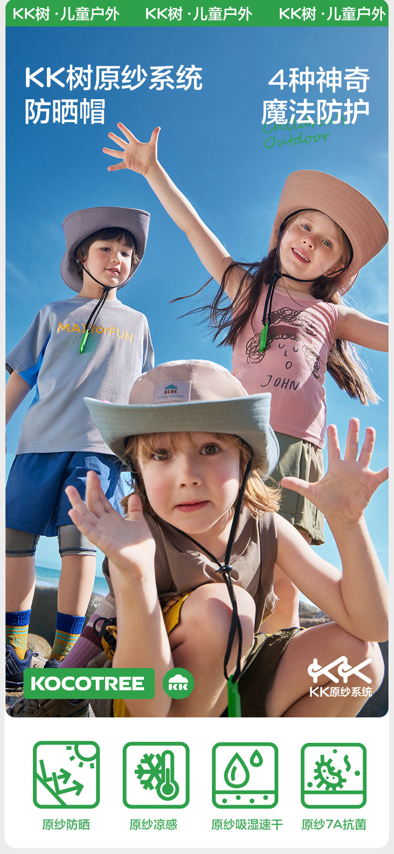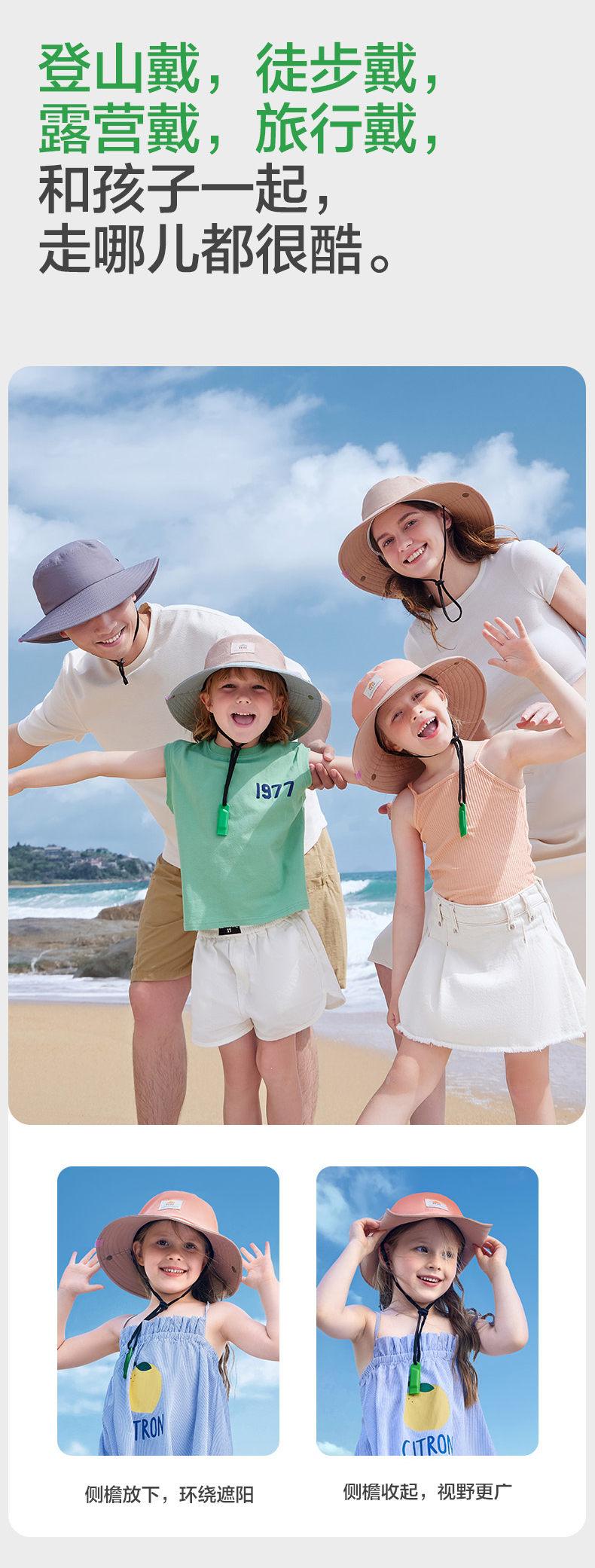 KK树亲子款防晒帽儿童遮阳帽户外登山男童女孩宝宝帽子露营渔夫帽野原之旅亲子防晒帽