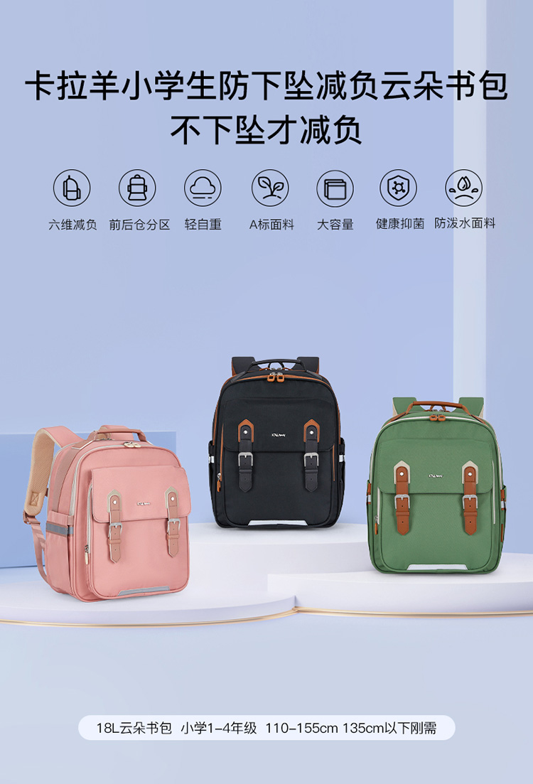 【云朵书包2.0PLUS版】卡拉羊六维防下坠小学生1-6年级18L/20L云朵书包 新班得瑞 CX2210+CX2683