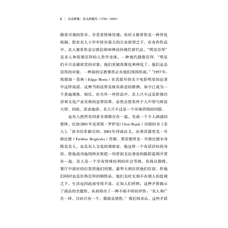 本书聚焦于法国启蒙时代的“名人”现象。作者以伏尔泰、卢梭、富兰克林等多位历史人物的例子详细阐释了在全新的“媒体化交往”中孕育出来的“名人现象”的特征以及表现形式,深刻揭示出“名人现象”之后,是一个与传统交往社会完全割裂的大众文化、大众消费为主的新型社会,在这个新型社会中,大众的需求与好奇构建了另一个与以往熟知的激进的批评性的公共领域所不同的社会交往层面。