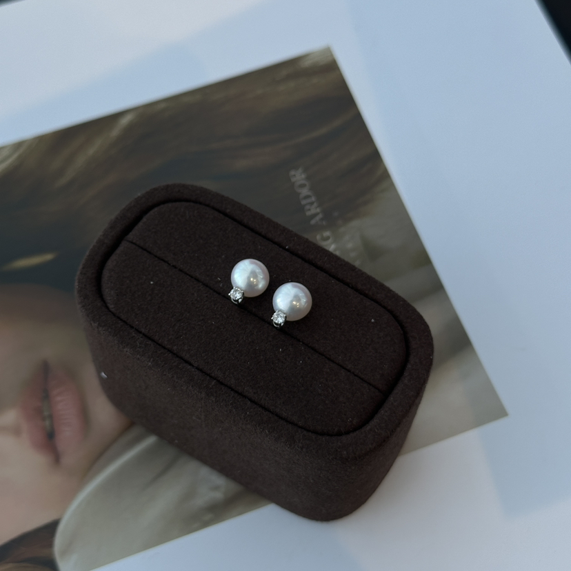有一批新货,之前没有出过戴妃款耳钉的团购,这次珠光简直了,非常漂亮,有冷光感,7-8mm淡水,上耳就像爆亮的小澳白,太喜欢。配件也很精美哦,是18k金进口超闪锆石,厚金。
