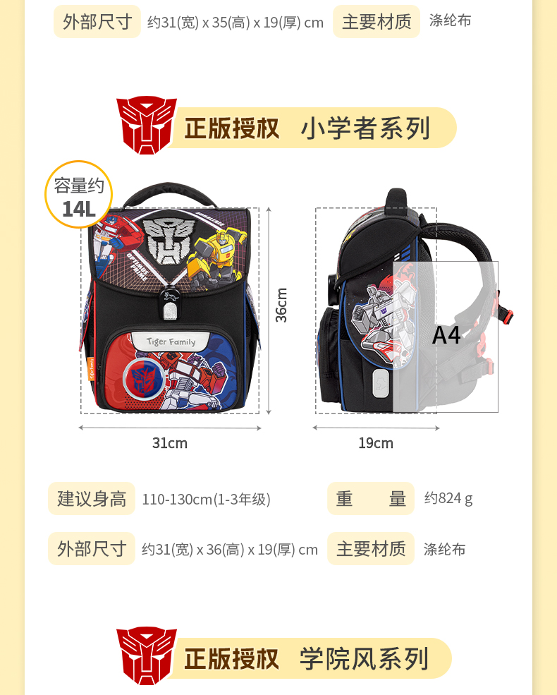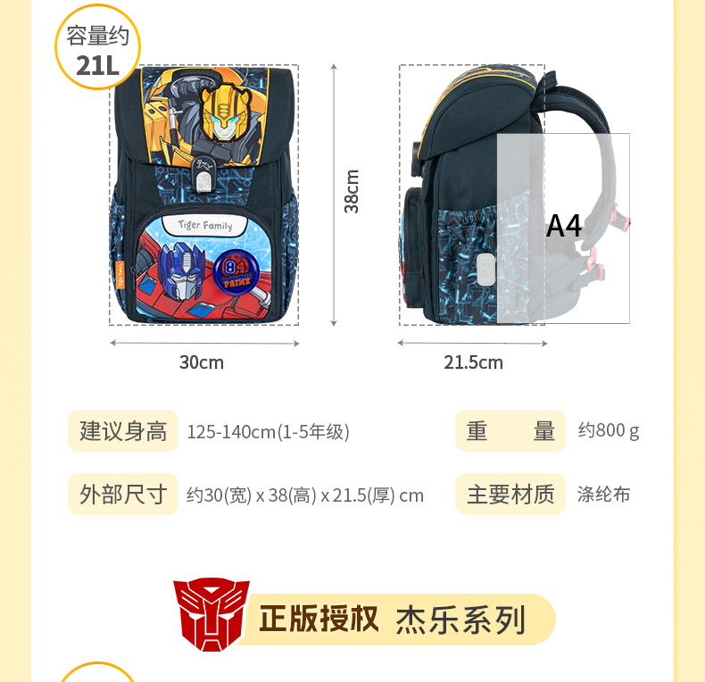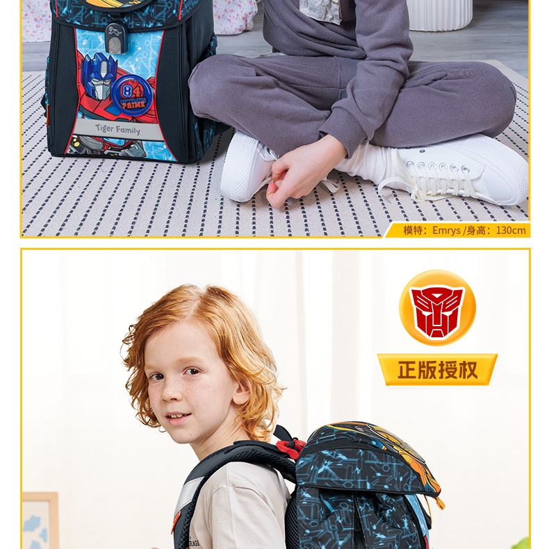 tigerfamily虎米 1-5年级孩之宝变形金刚联名男女书包儿童小学生护脊双肩背包