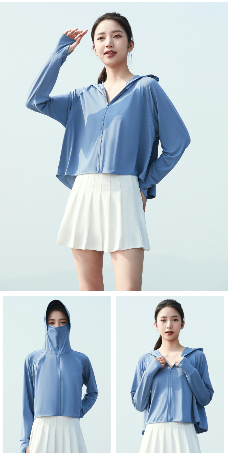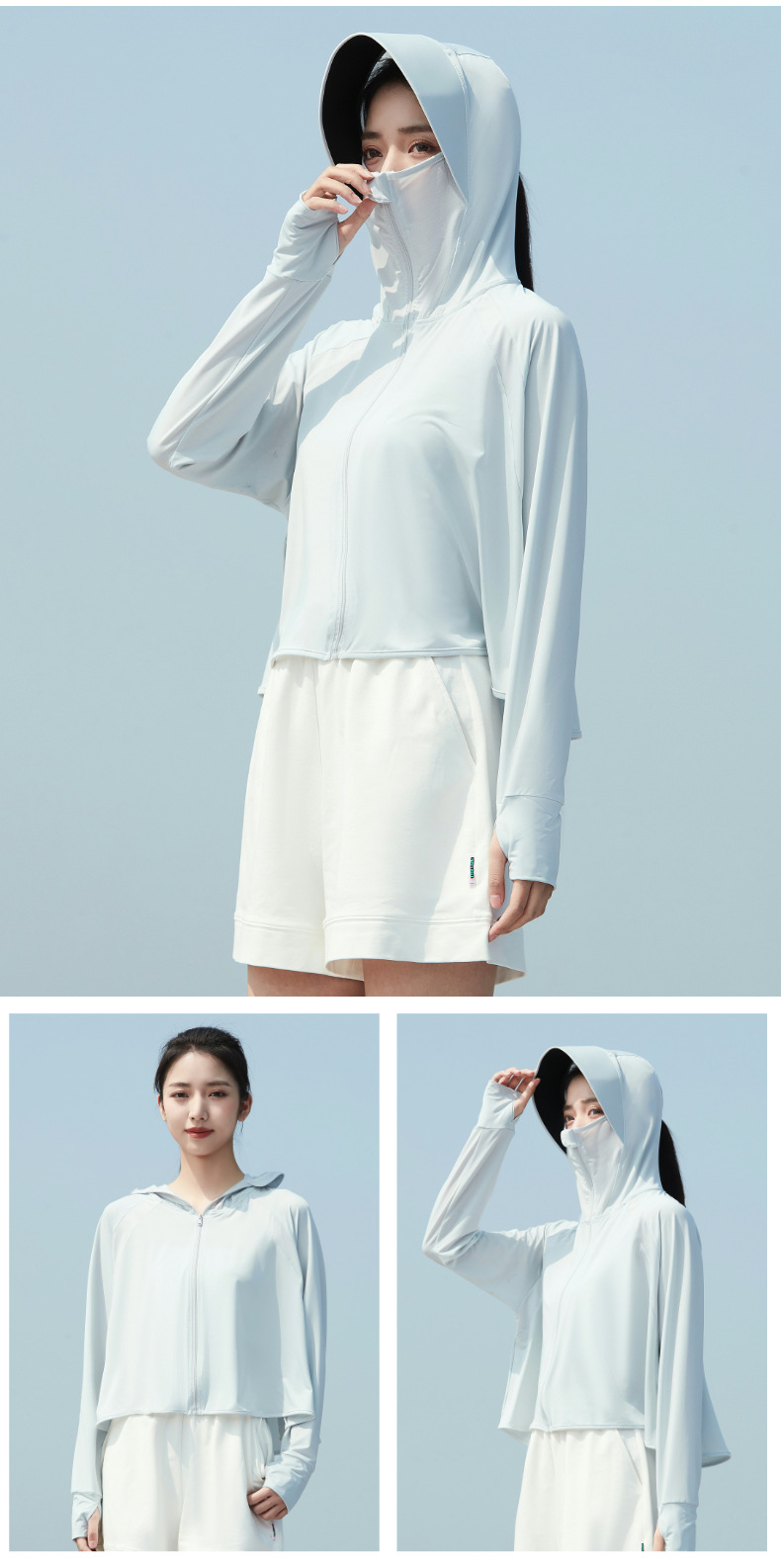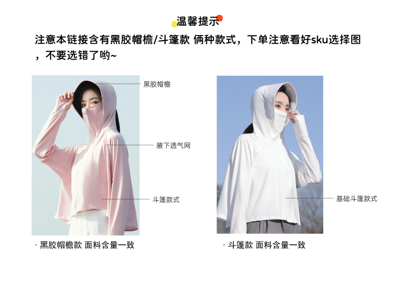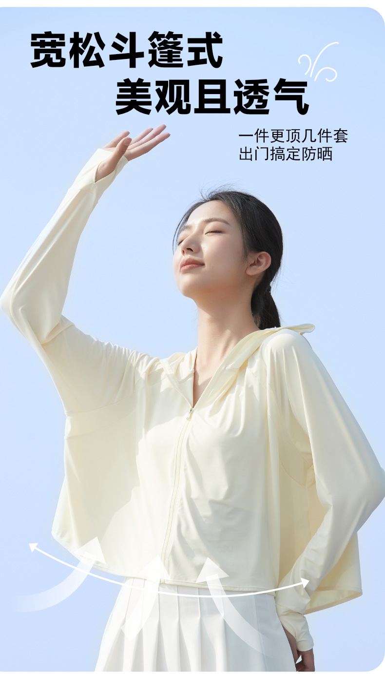 【冰凉轻薄,透气防晒~】黑胶帽檐防晒衣 女士冰丝连帽 透气外套 防紫外线 防晒服-QQ