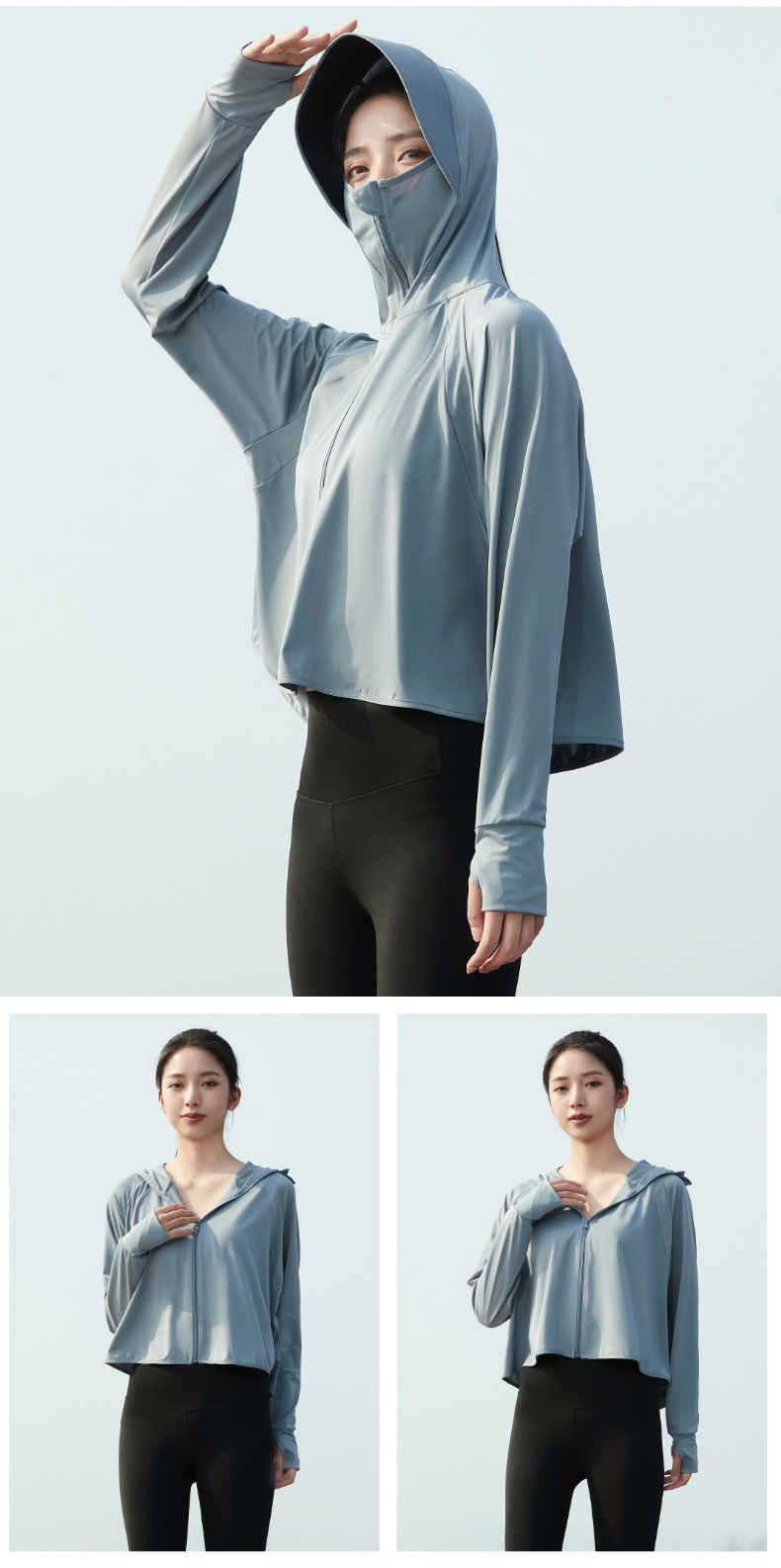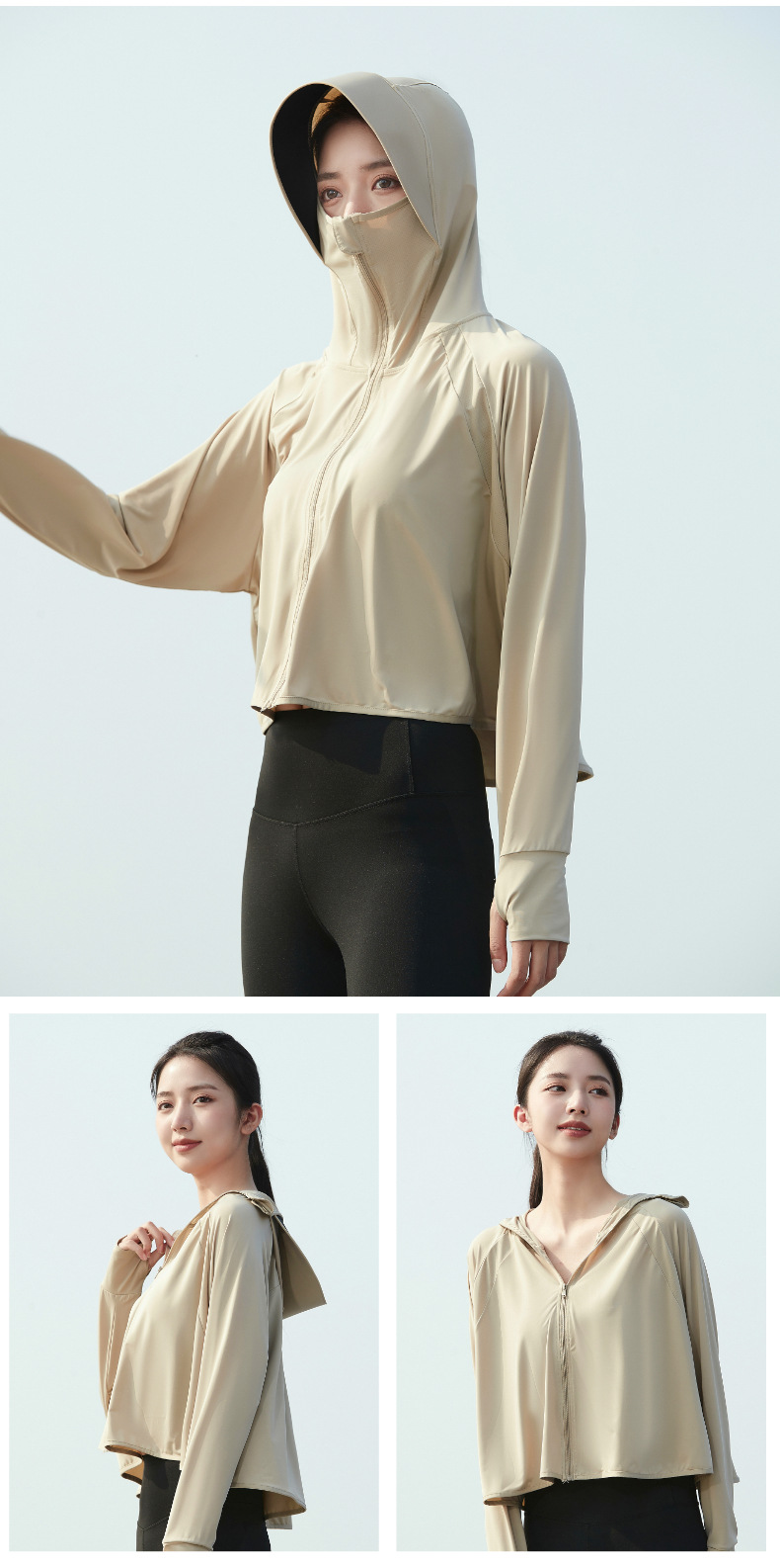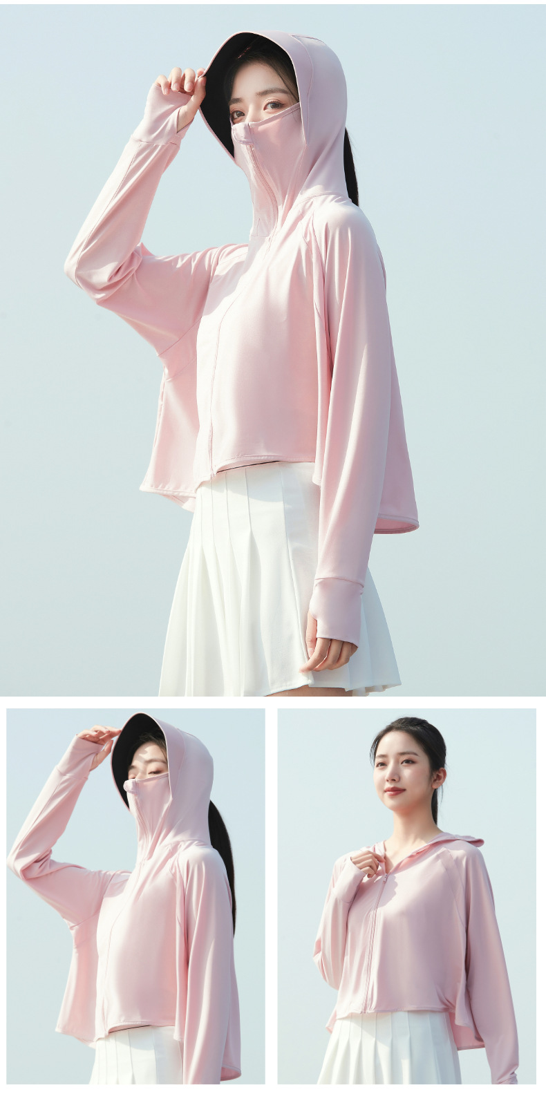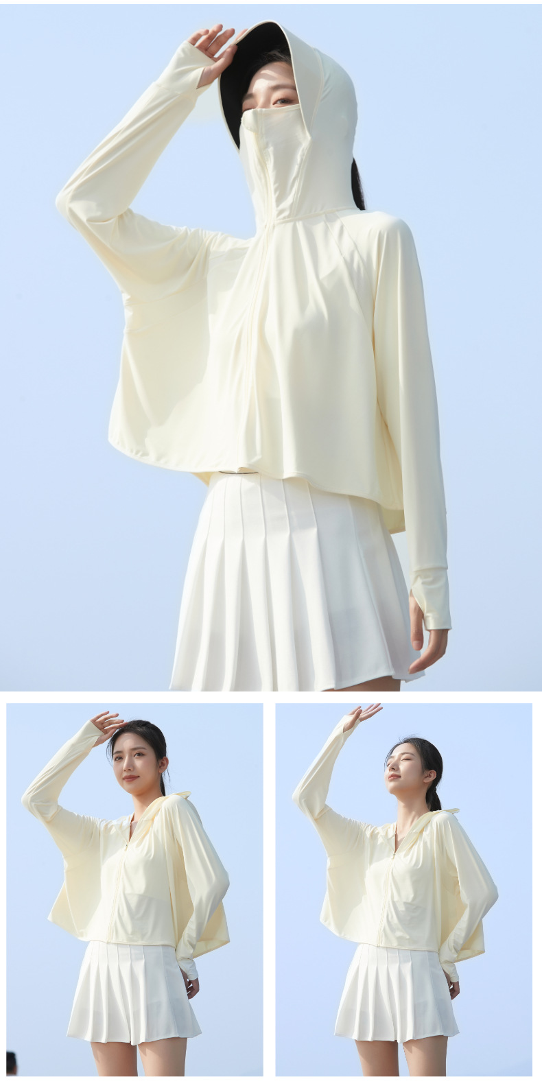 【冰凉轻薄,透气防晒~】黑胶帽檐防晒衣 女士冰丝连帽 透气外套 防紫外线 防晒服-QQ