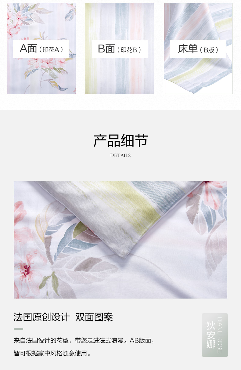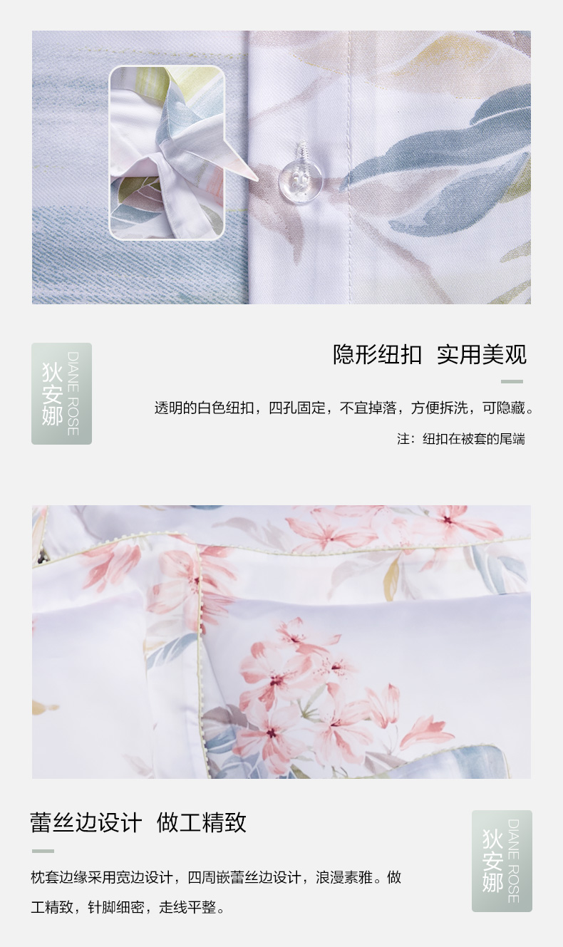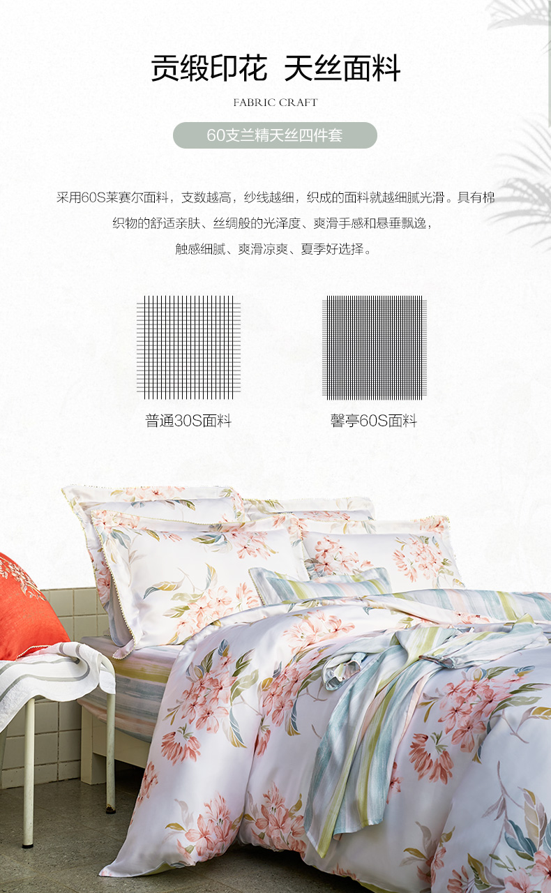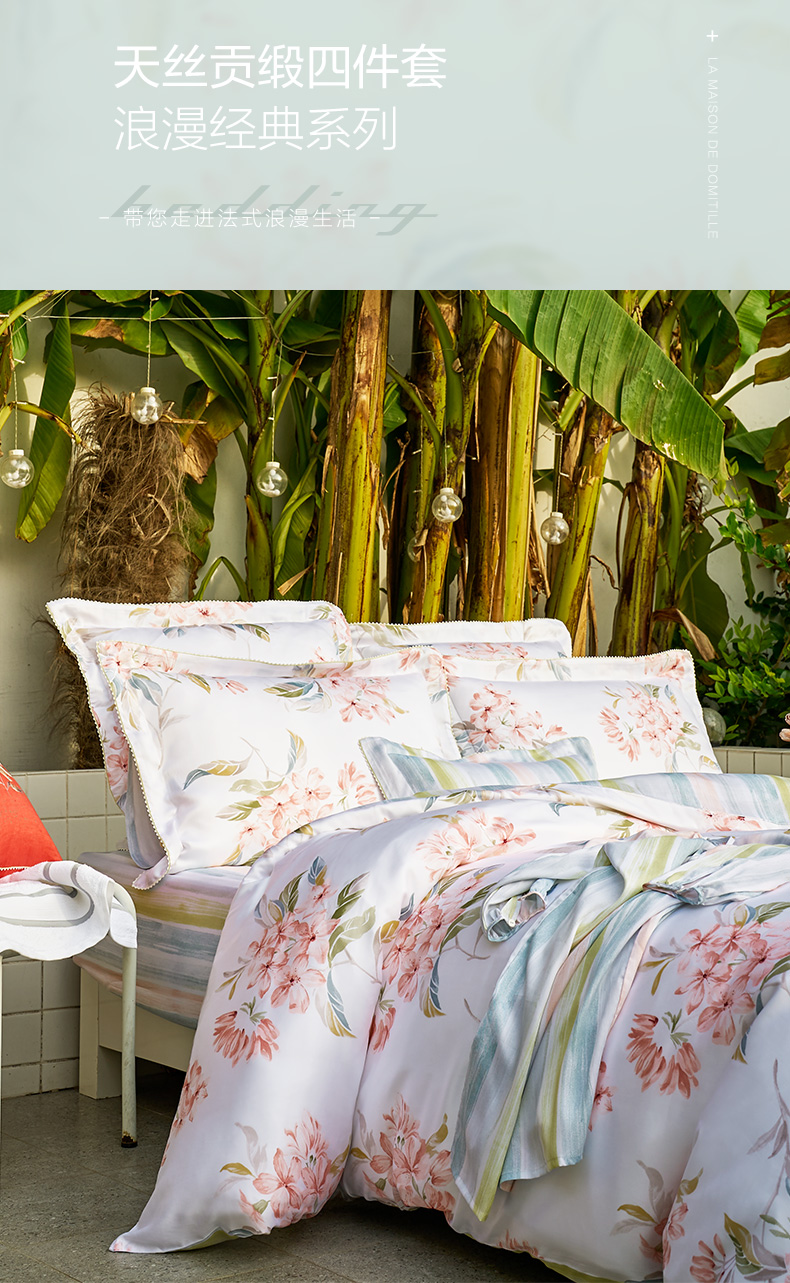 馨亭 新品玫瑰印花双面兰精天丝四件套莱赛尔亲肤丝滑少女心狄安娜
