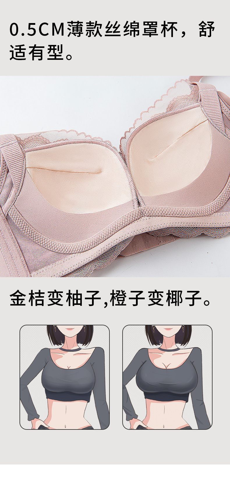 TG-TG02S207 真丝调整型内衣 薄款蕾丝性感无钢圈桑蚕丝文胸收副乳