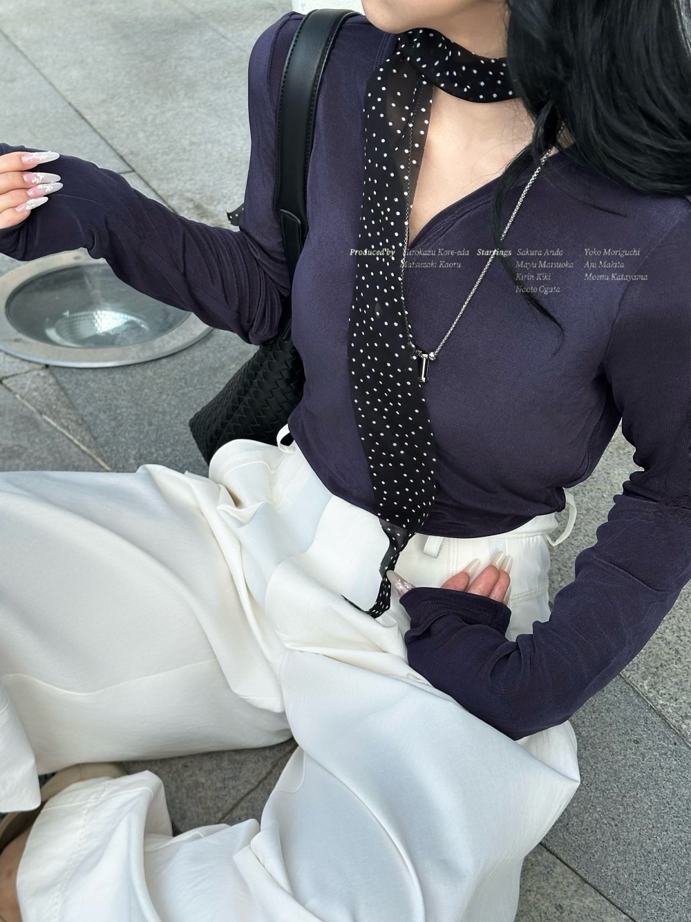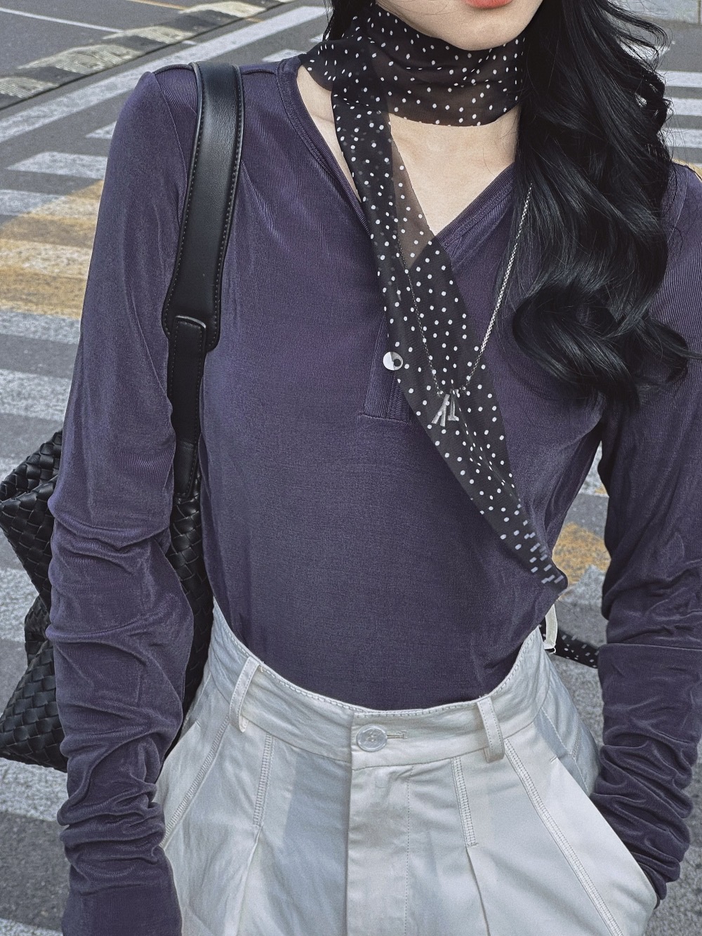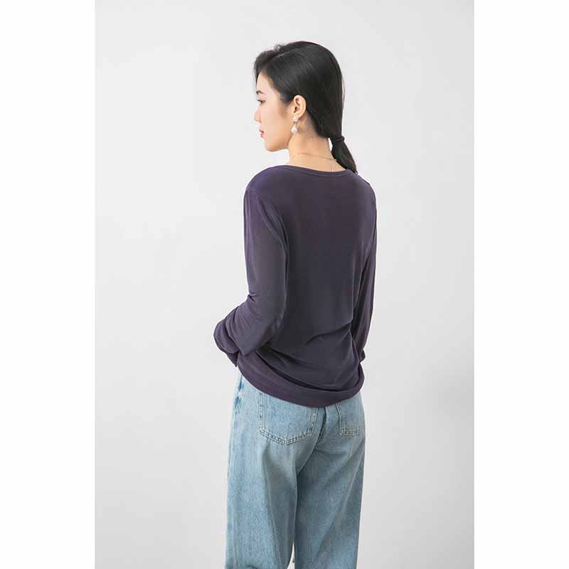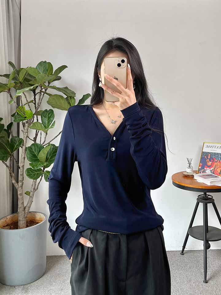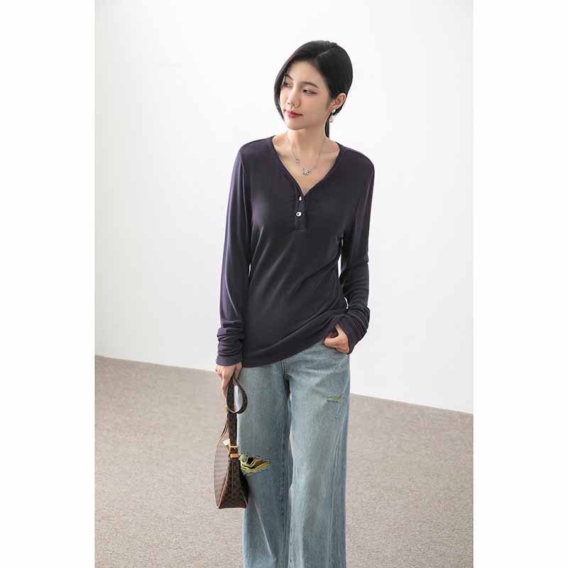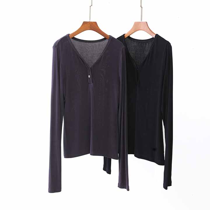 顺丰包邮洛诗琳90838超舒适气质V领纯色醋酸长袖T恤上衣10281