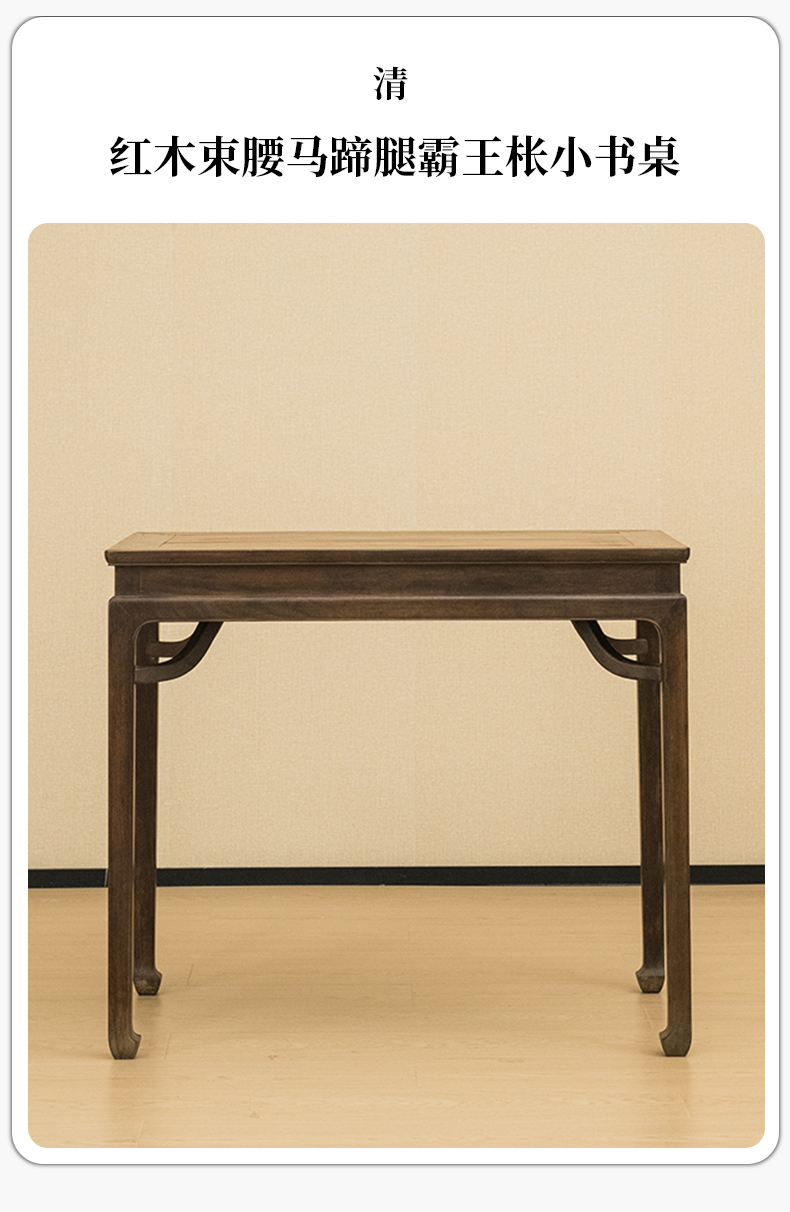 清 红木束腰马蹄腿霸王枨小书桌
