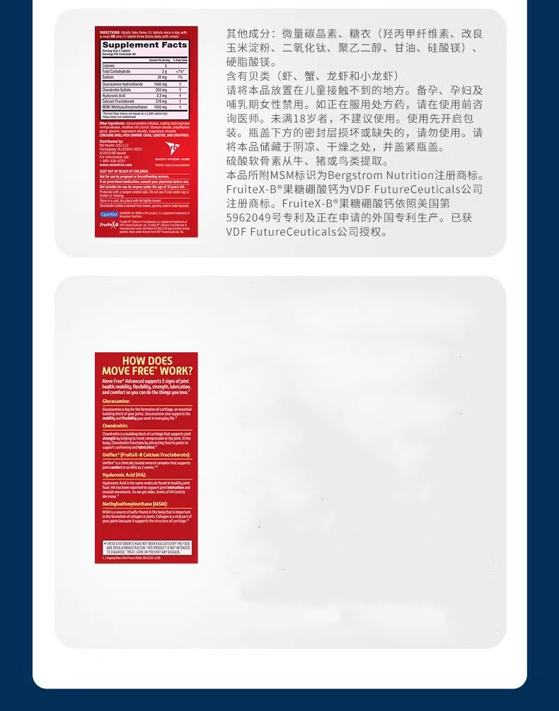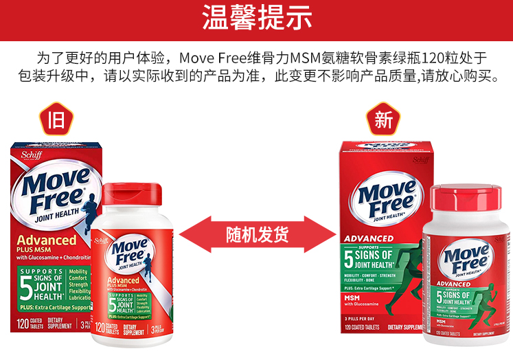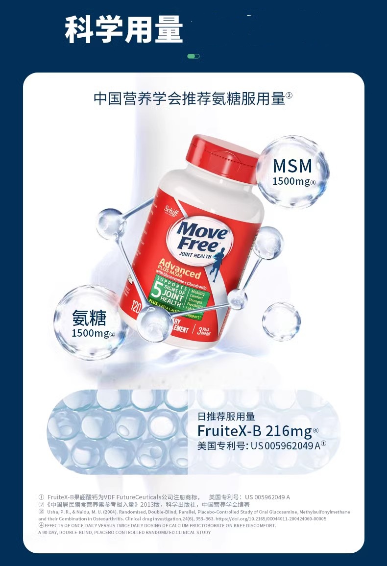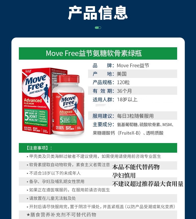 【跨境】美国Move Free益节氨糖钙片绿瓶 120粒/瓶 (27.5) 中老年