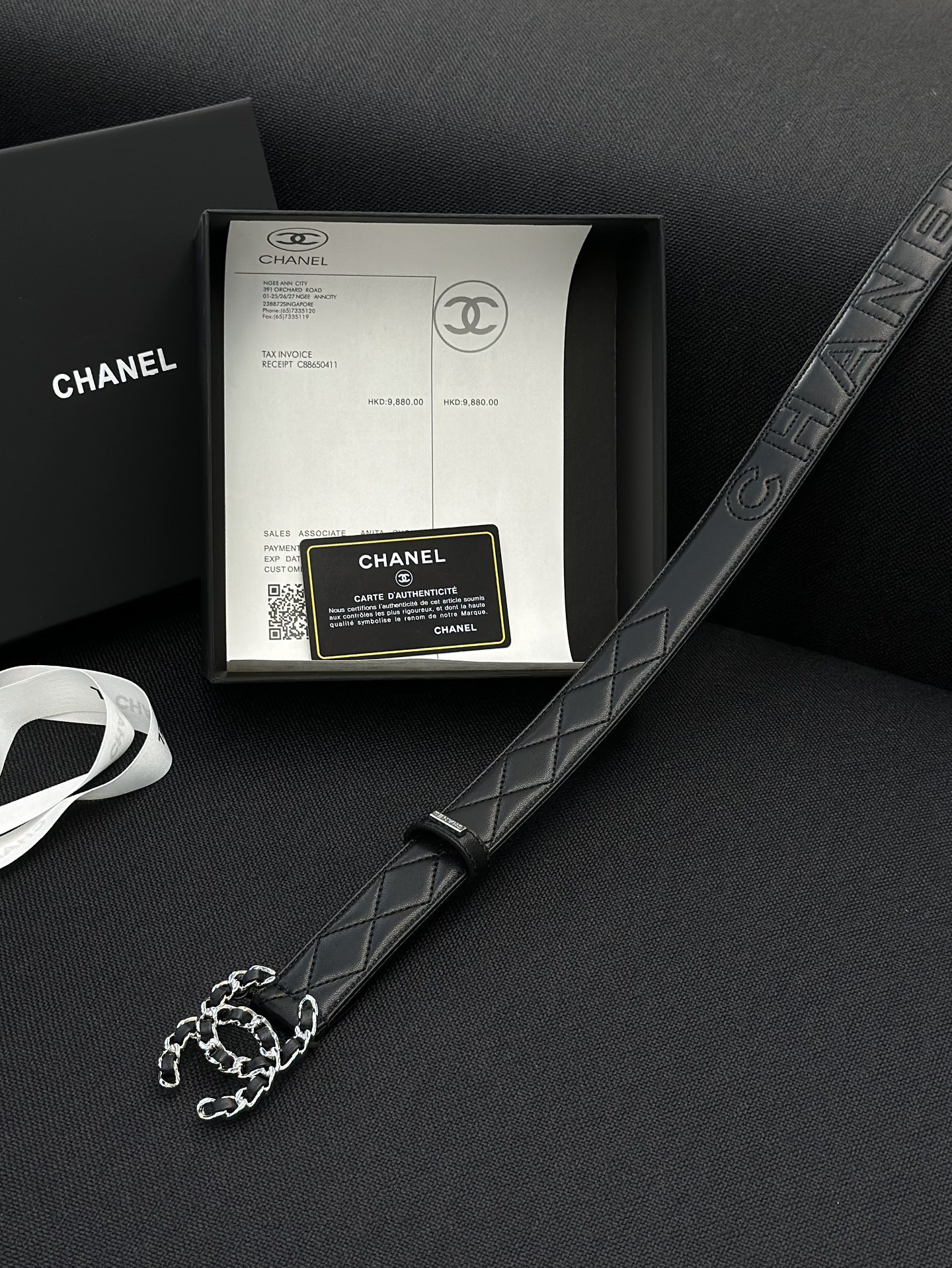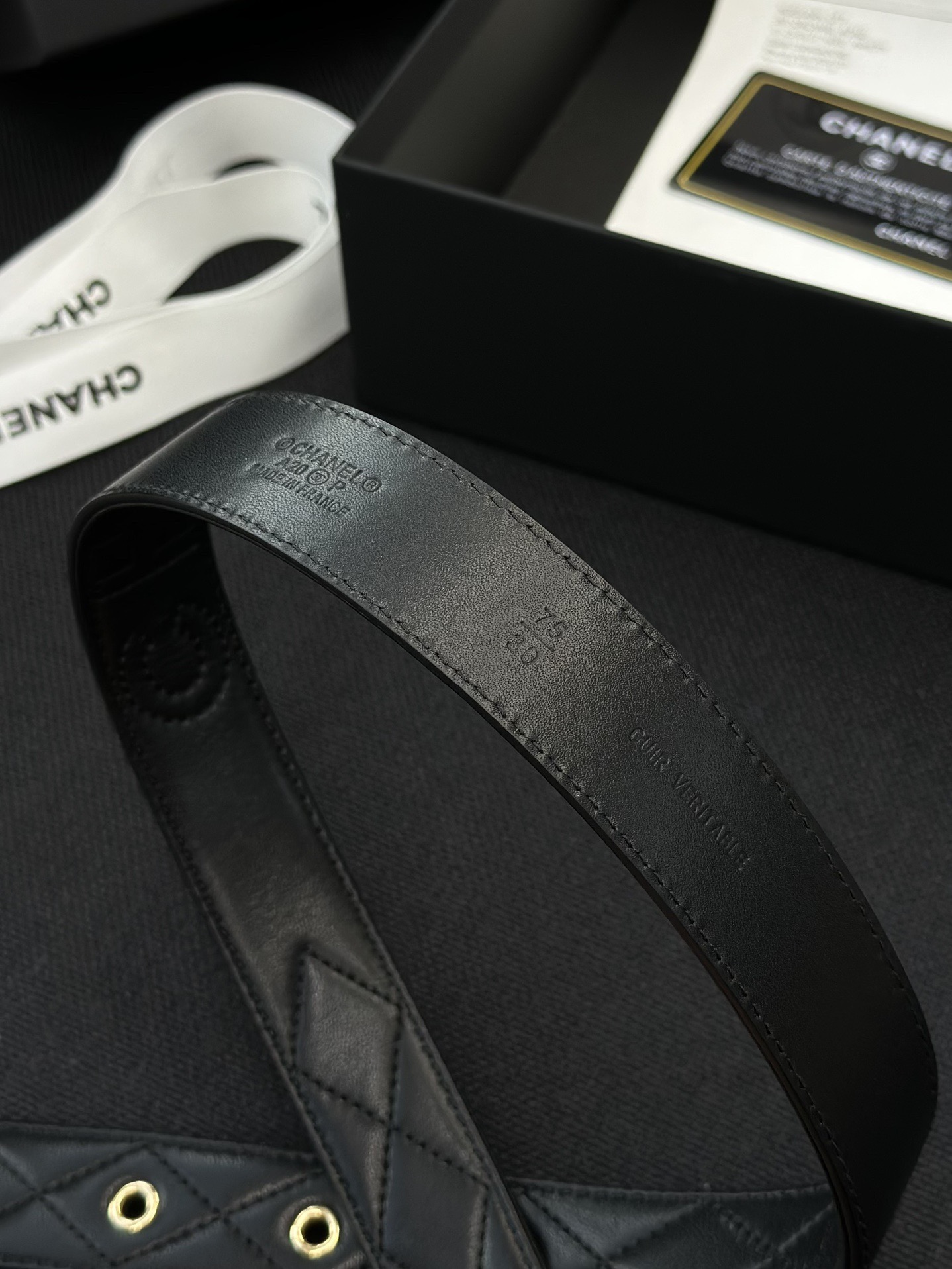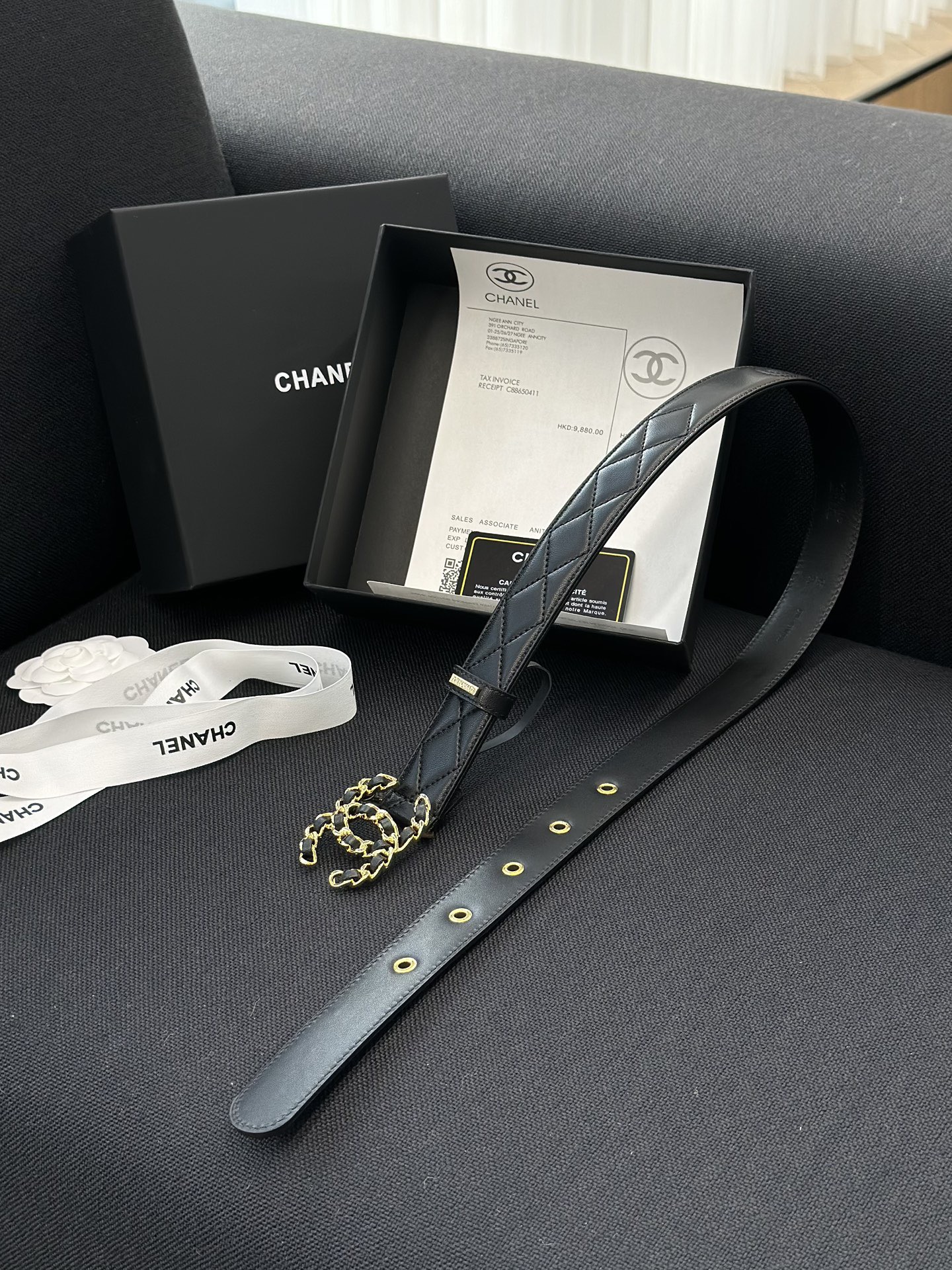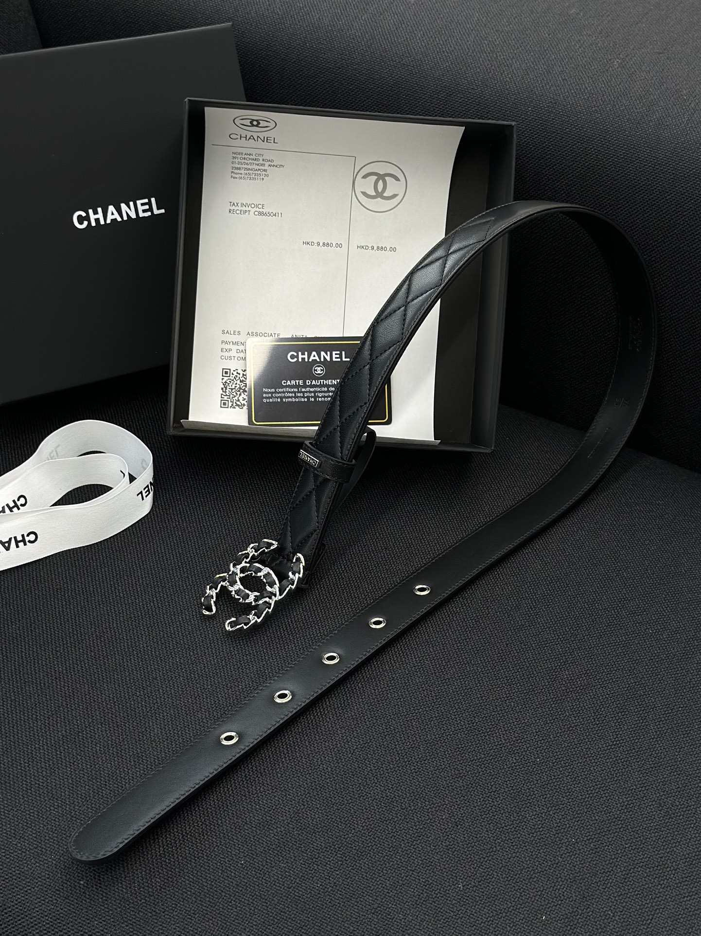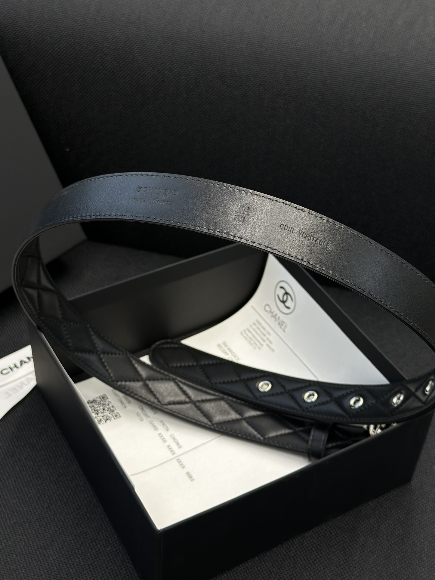 专柜款!头层小牛皮,CHANE1女士新款黑金皮穿链菱格字母腰带!时髦超百搭