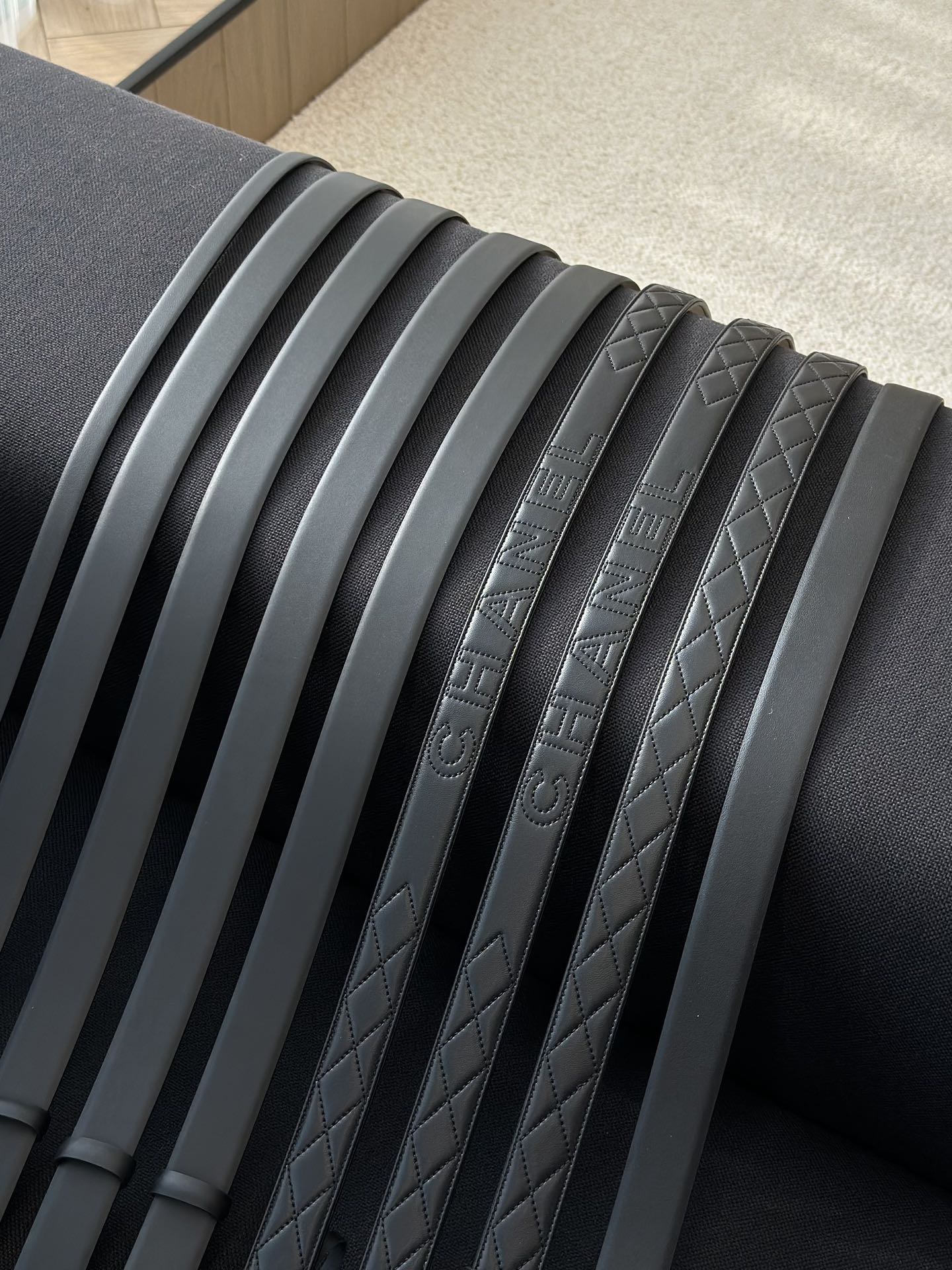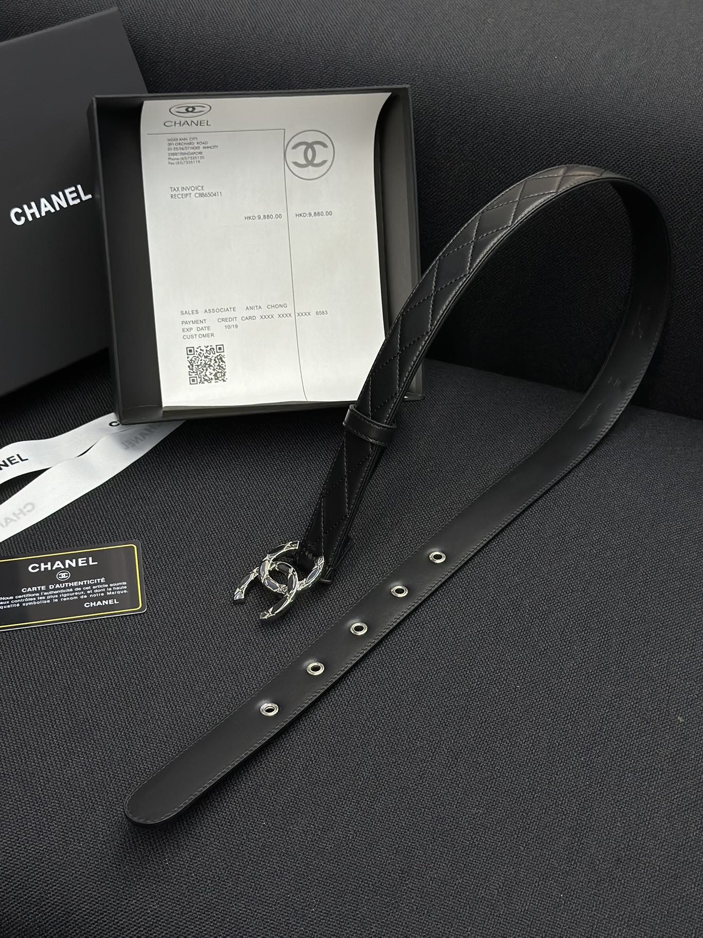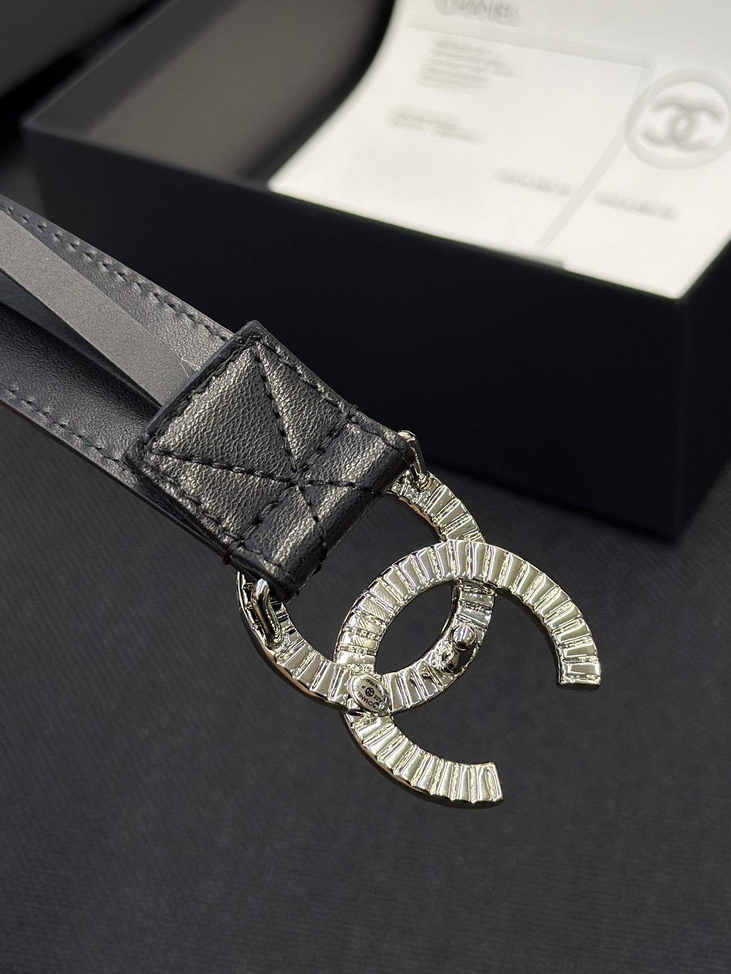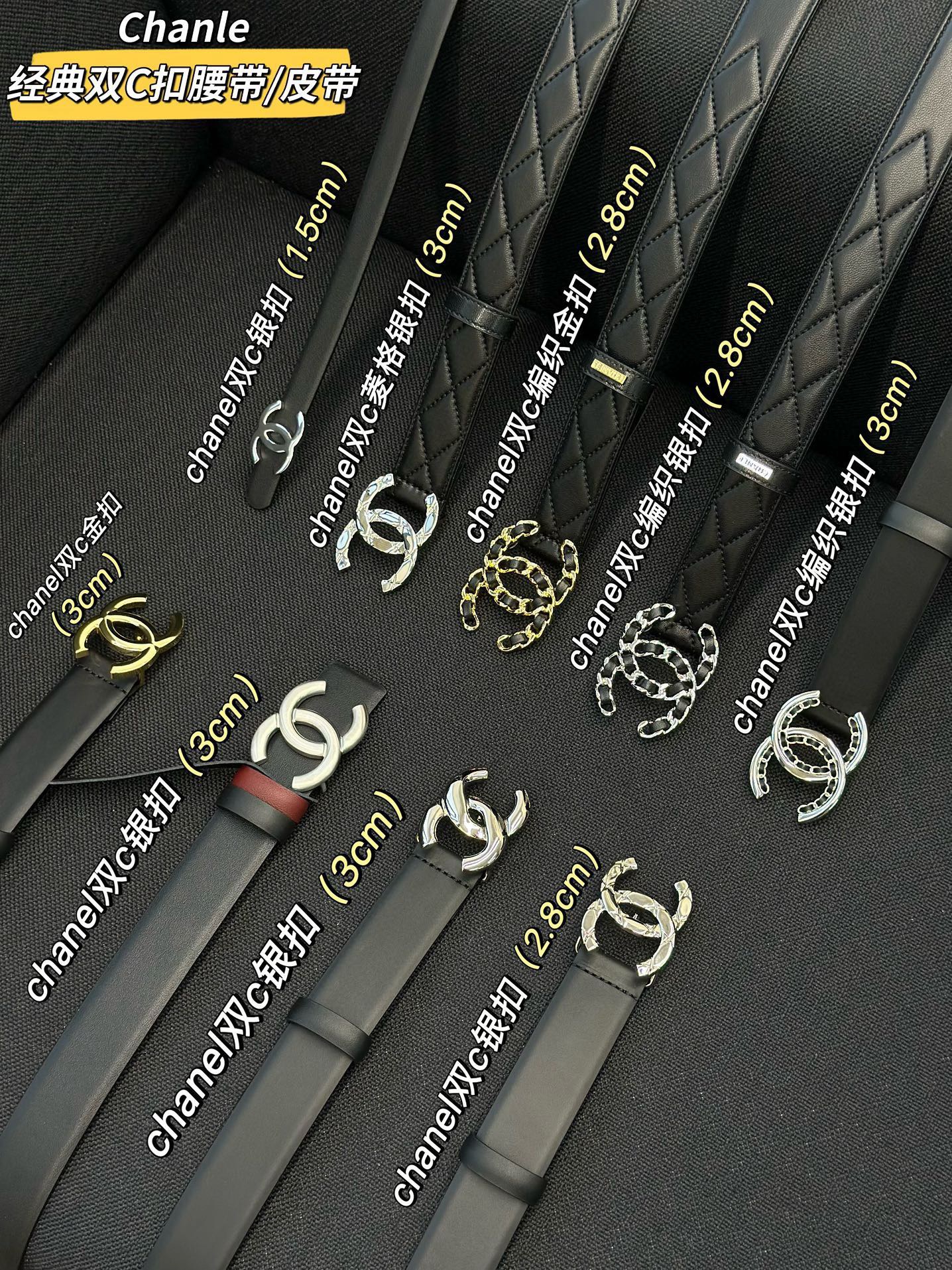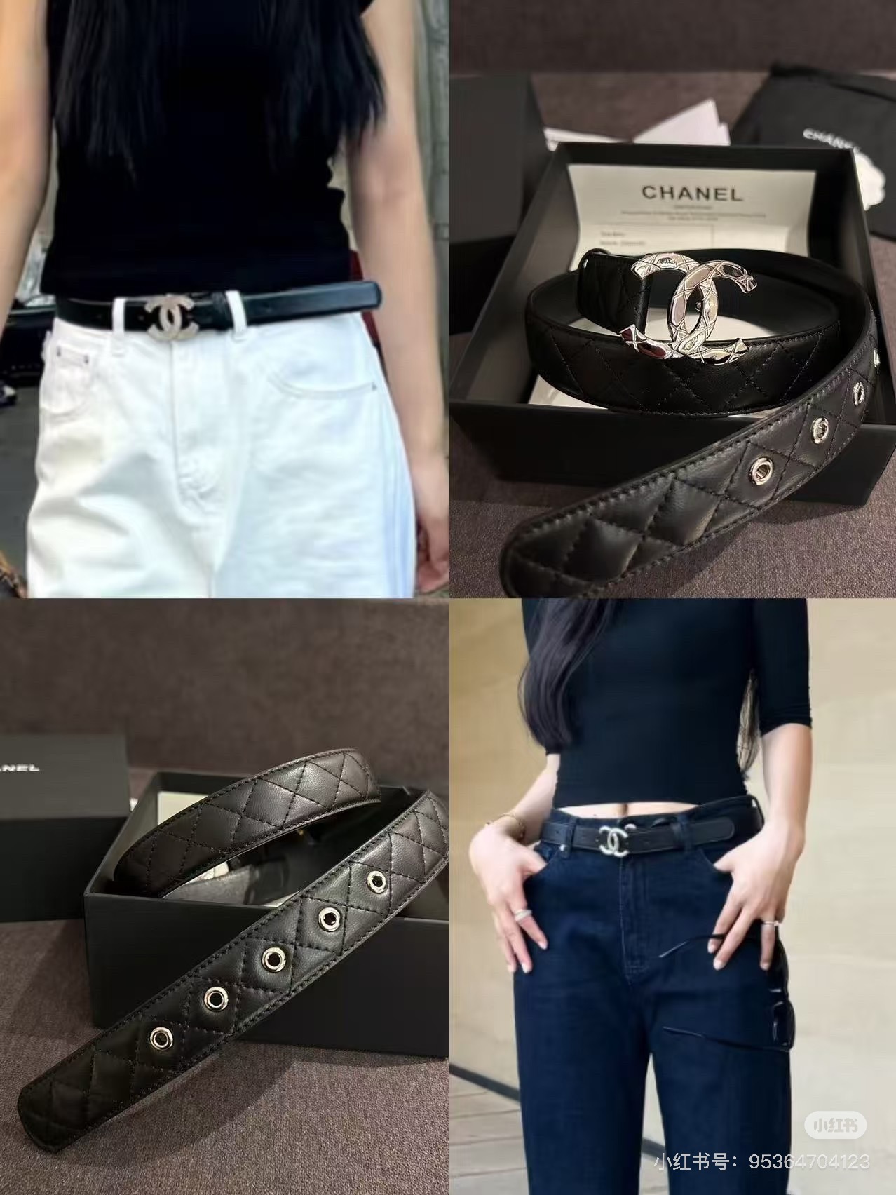 专柜款!头层小牛皮,CHANE1女士新款黑金皮穿链菱格字母腰带!时髦超百搭