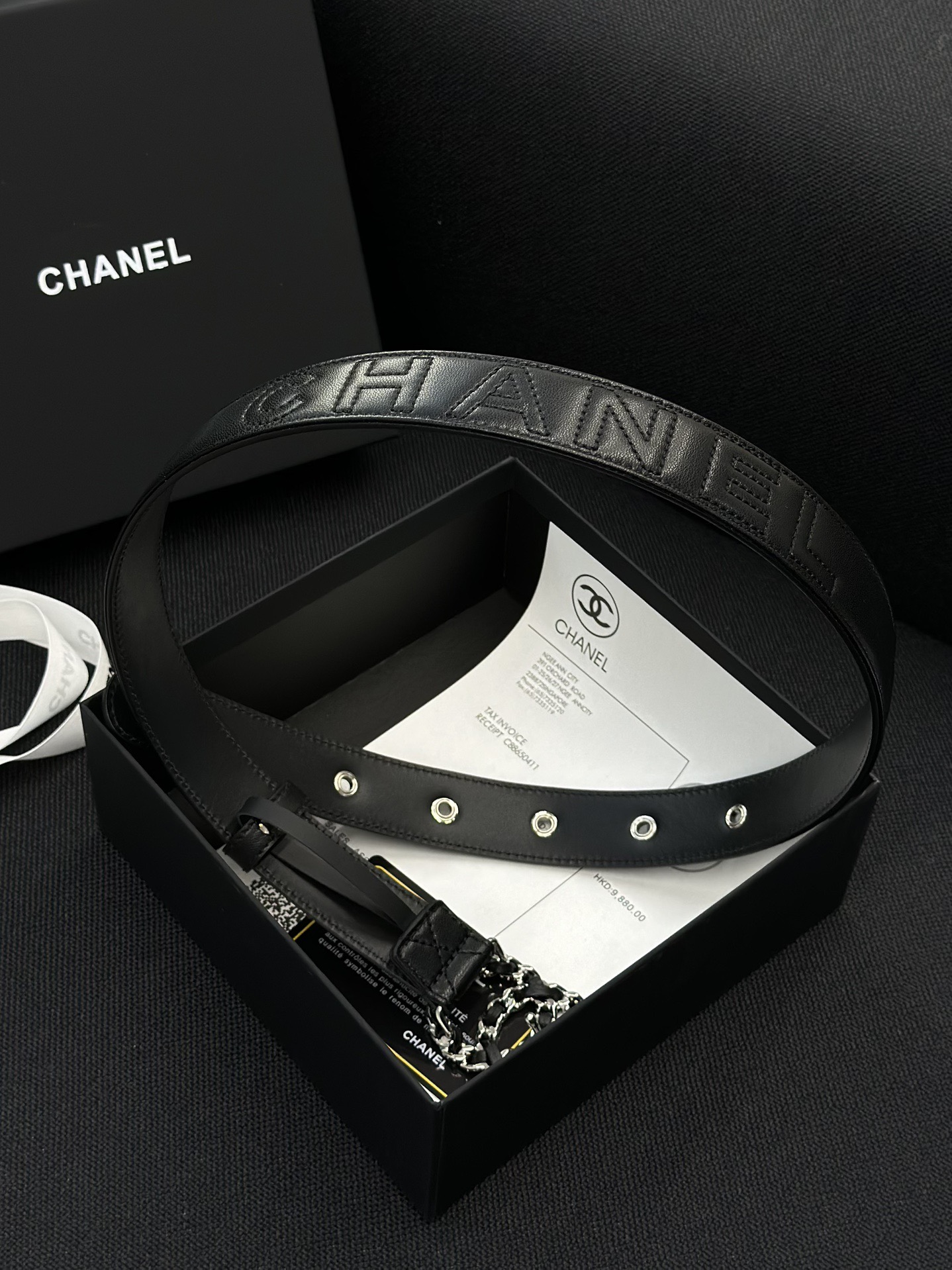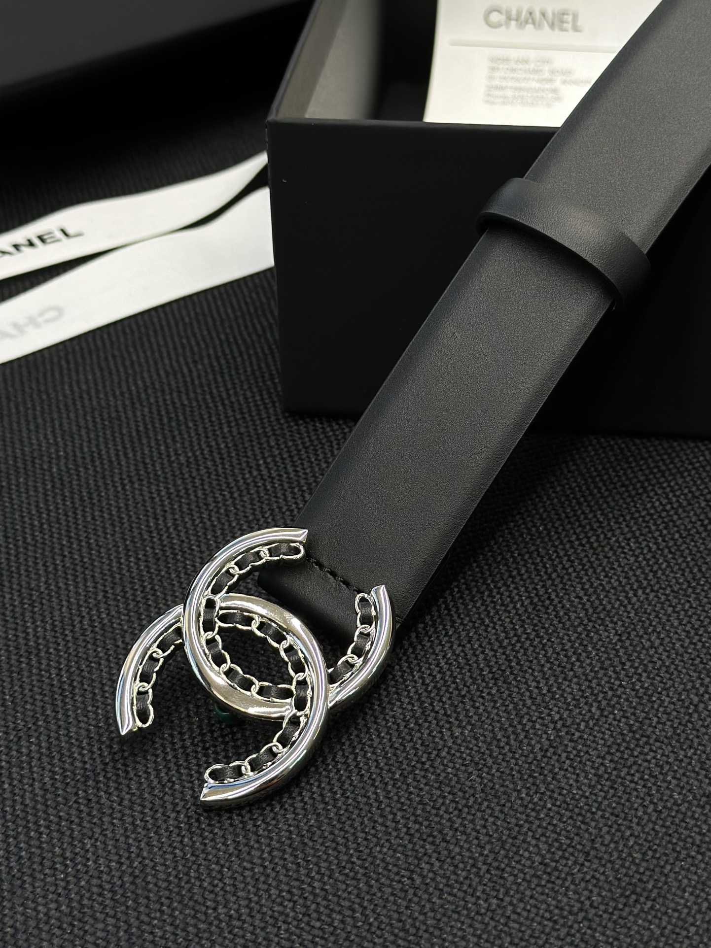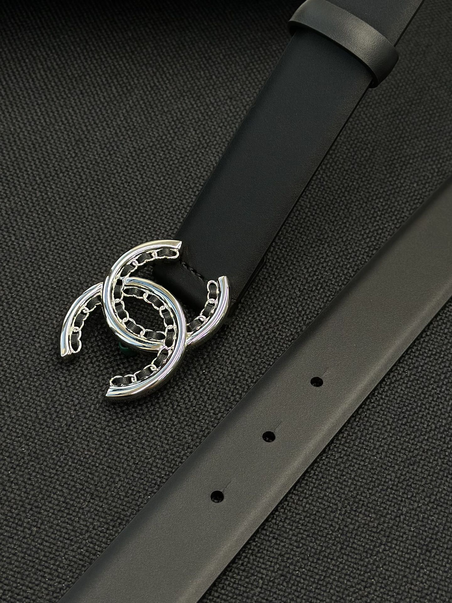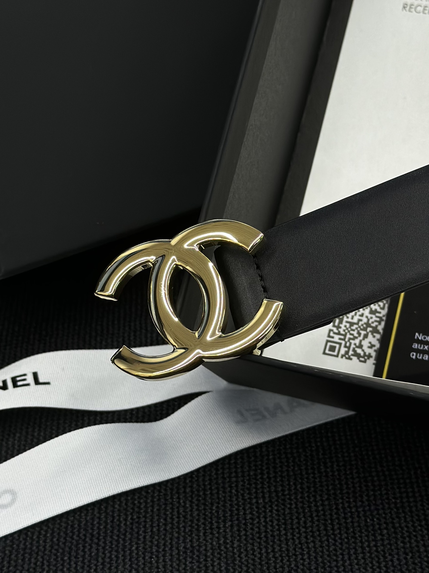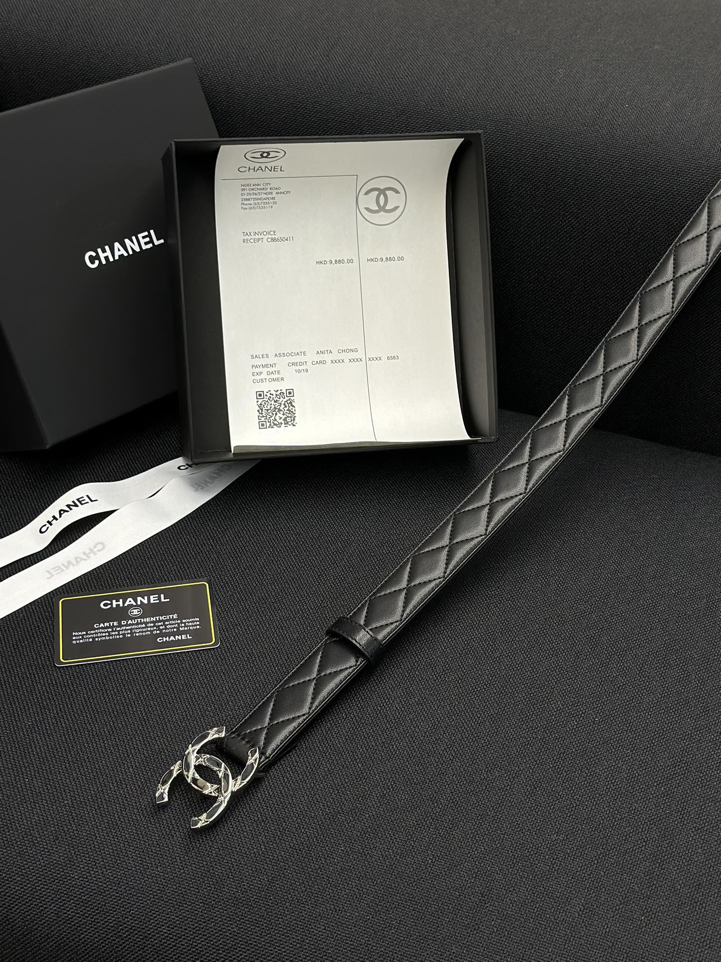 专柜款!头层小牛皮,CHANE1女士新款黑金皮穿链菱格字母腰带!时髦超百搭
