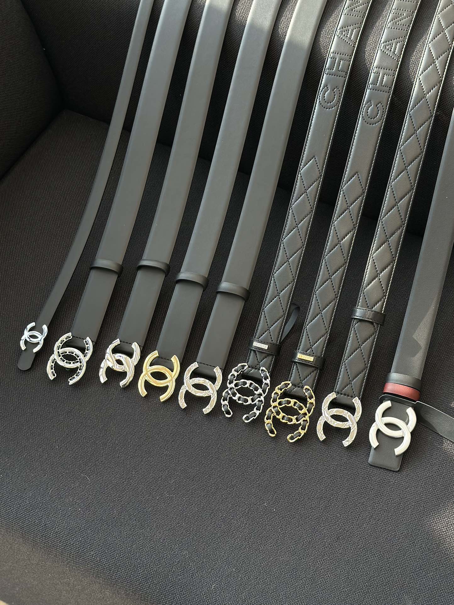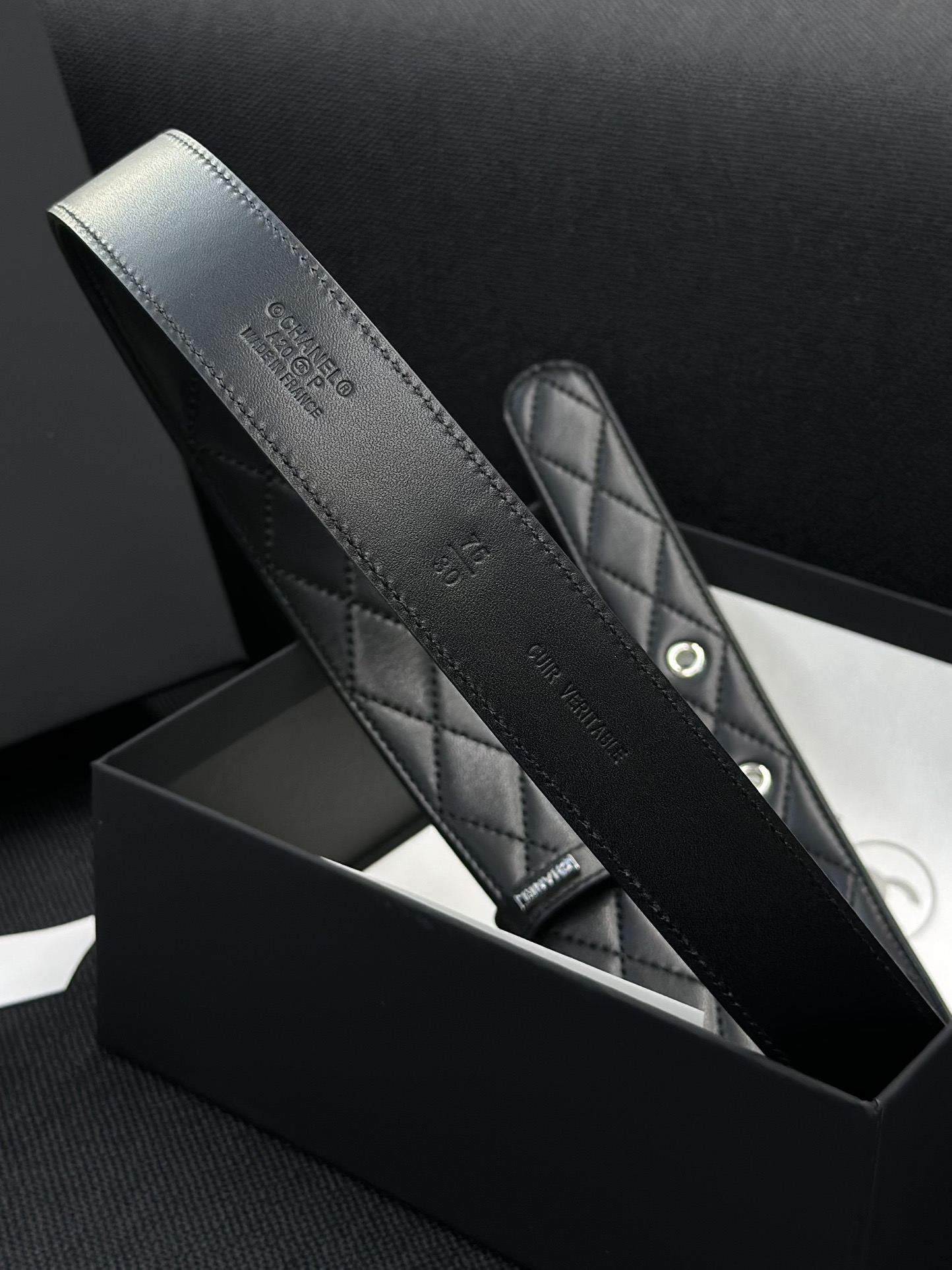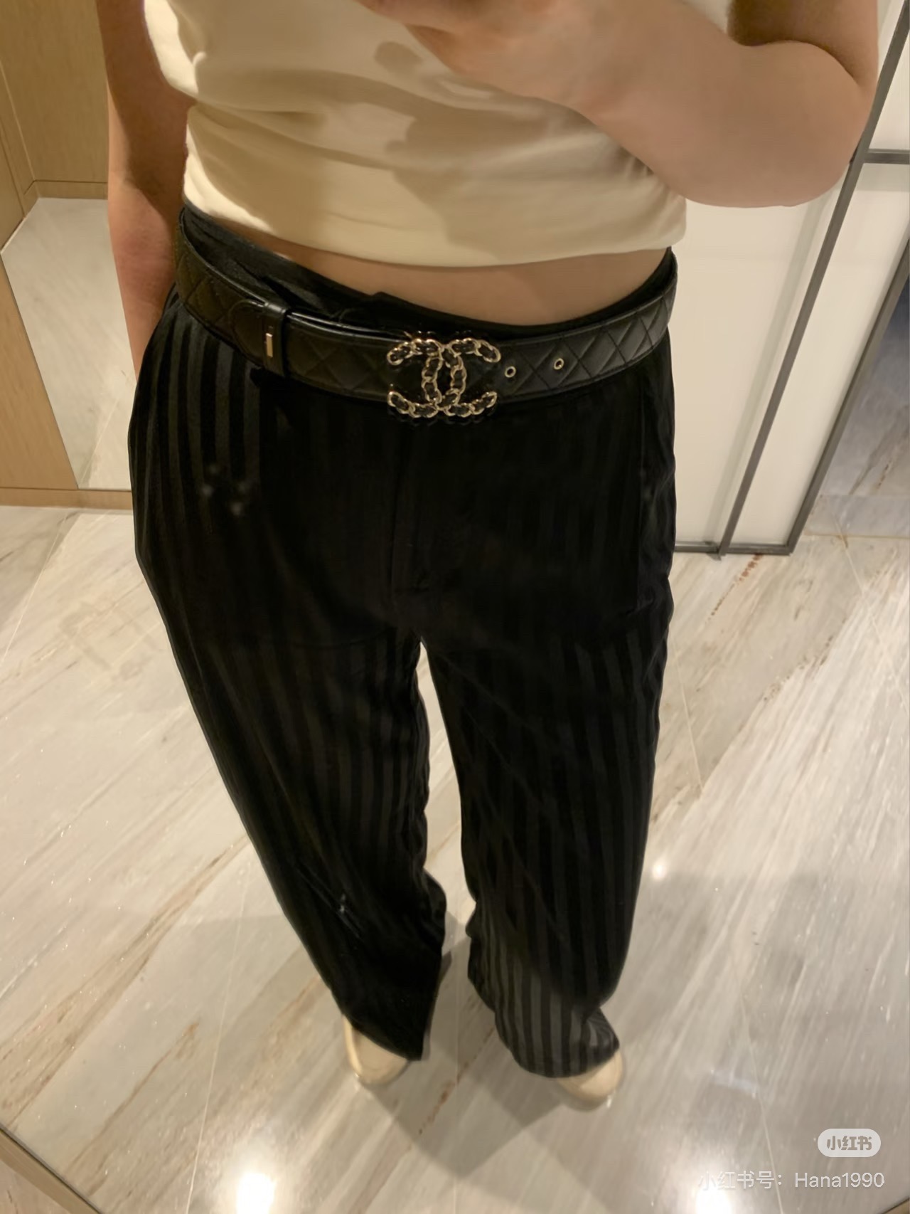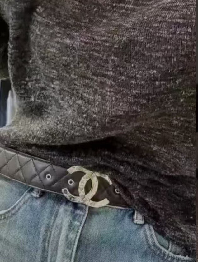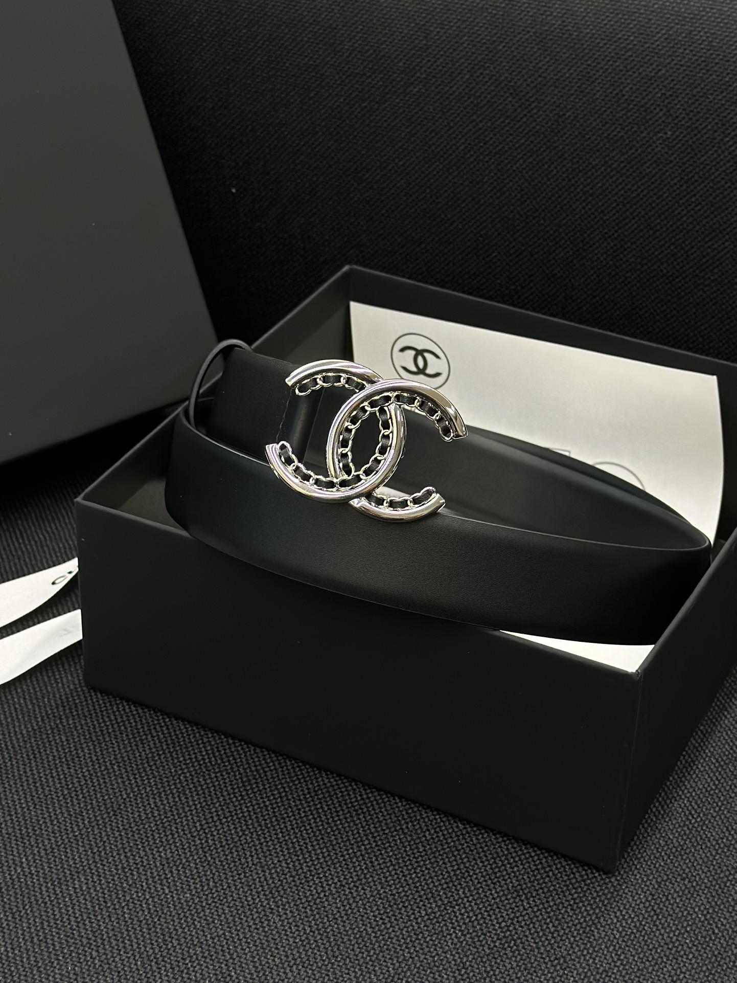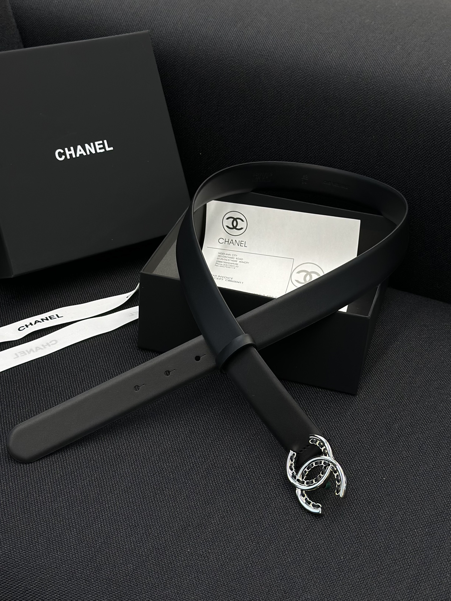 专柜款!头层小牛皮,CHANE1女士新款黑金皮穿链菱格字母腰带!时髦超百搭