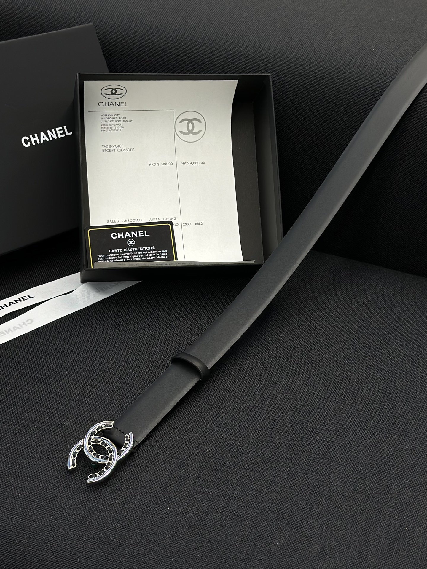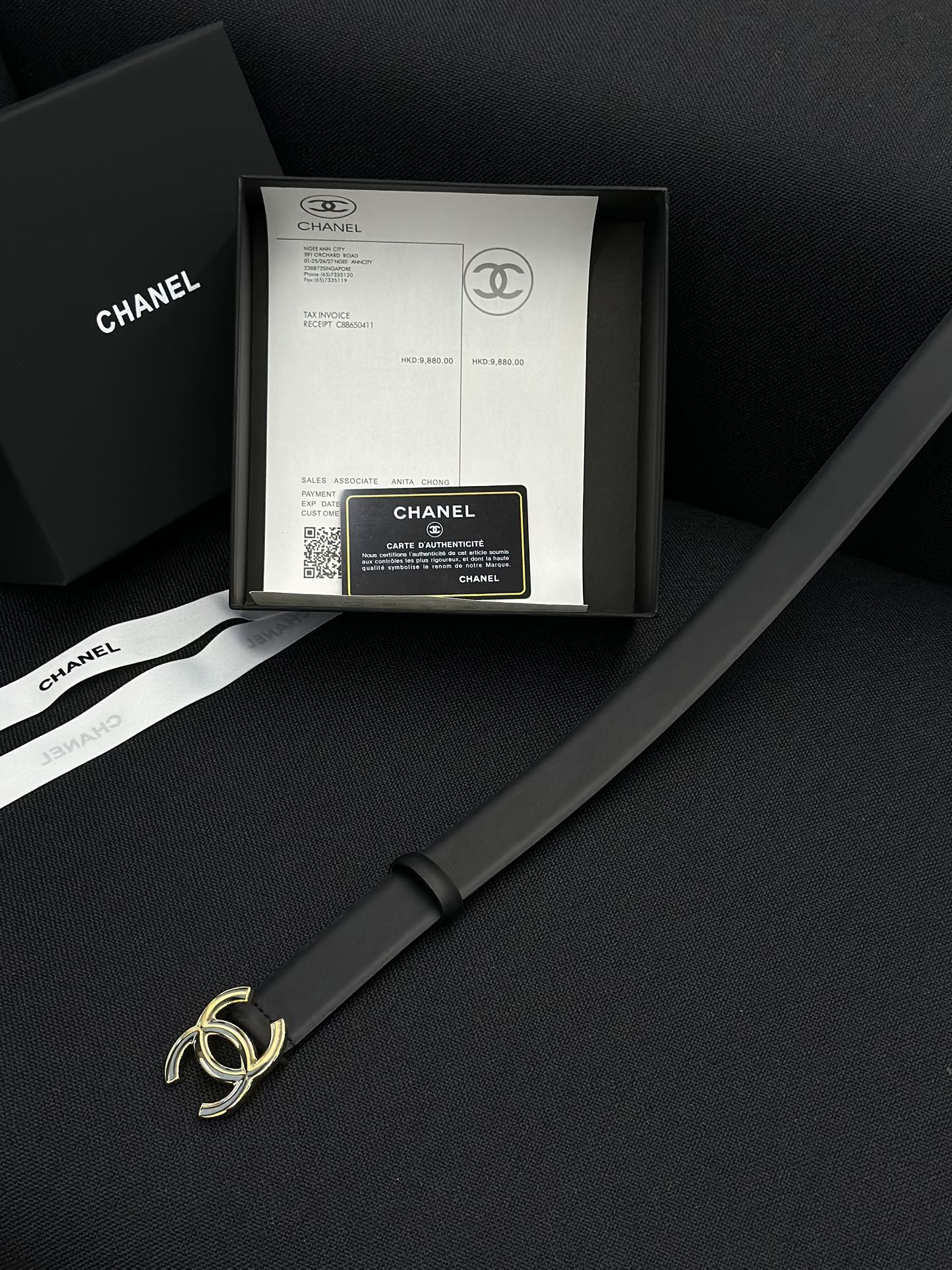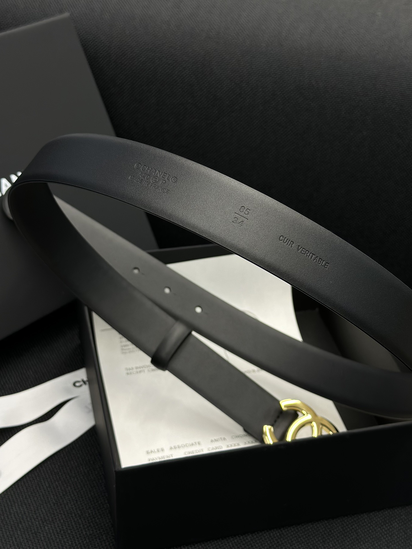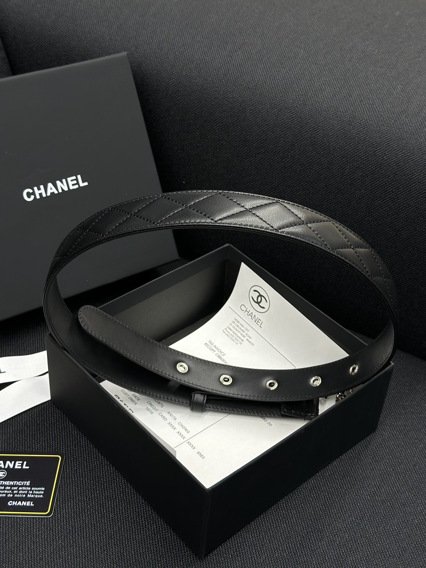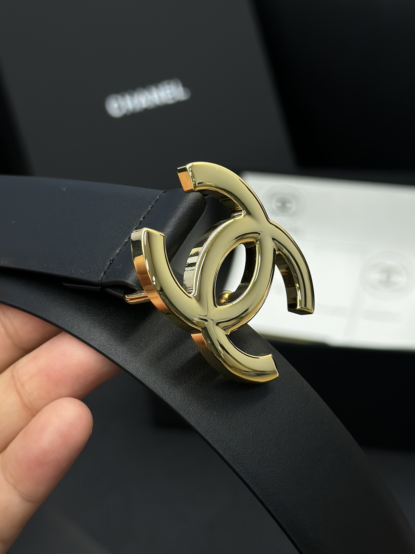 专柜款!头层小牛皮,CHANE1女士新款黑金皮穿链菱格字母腰带!时髦超百搭