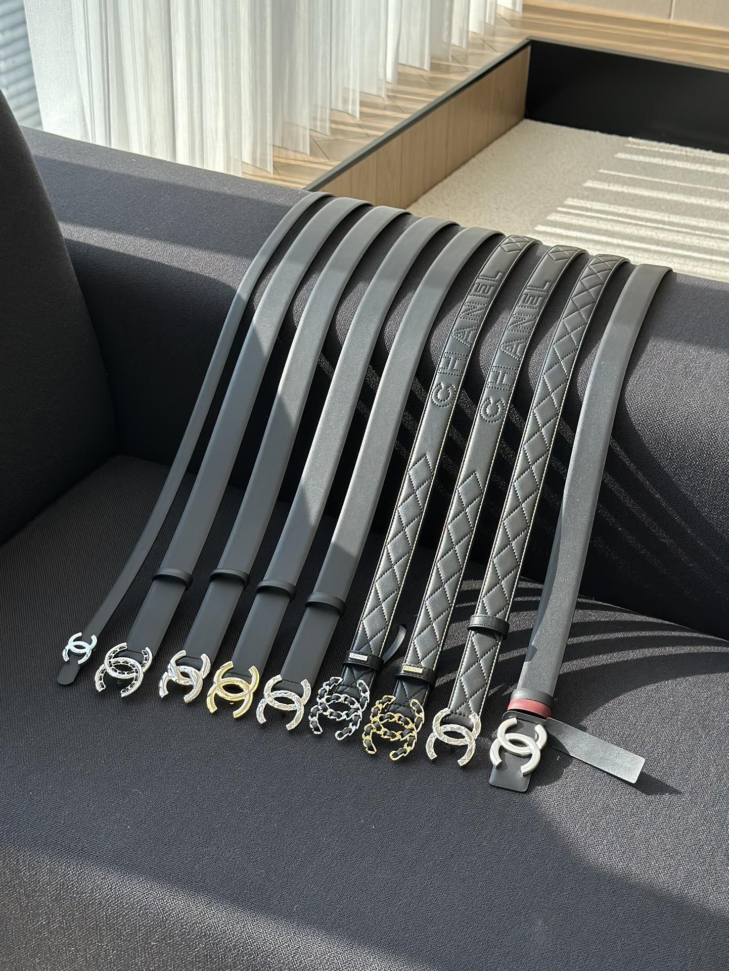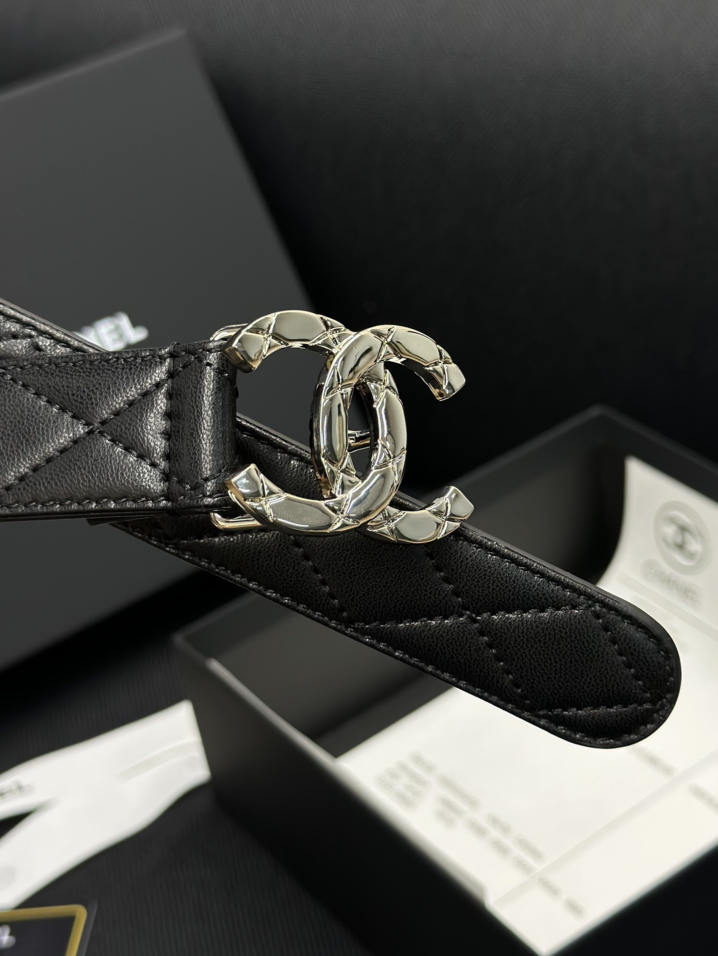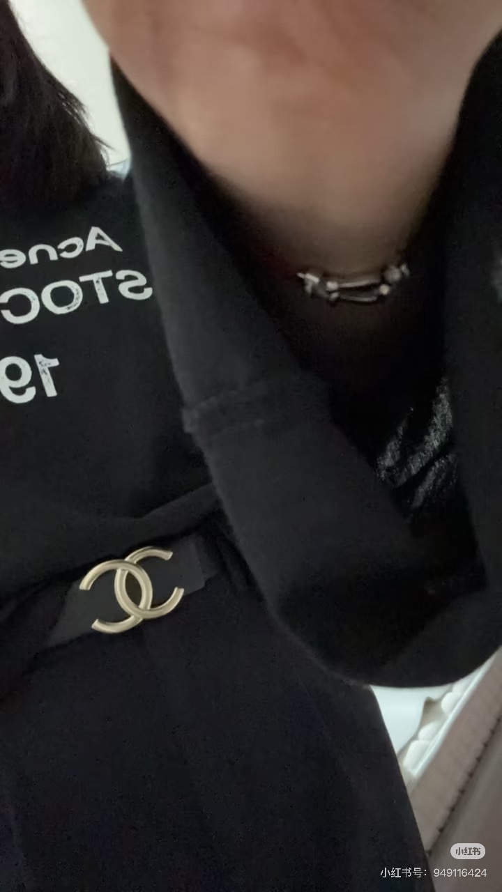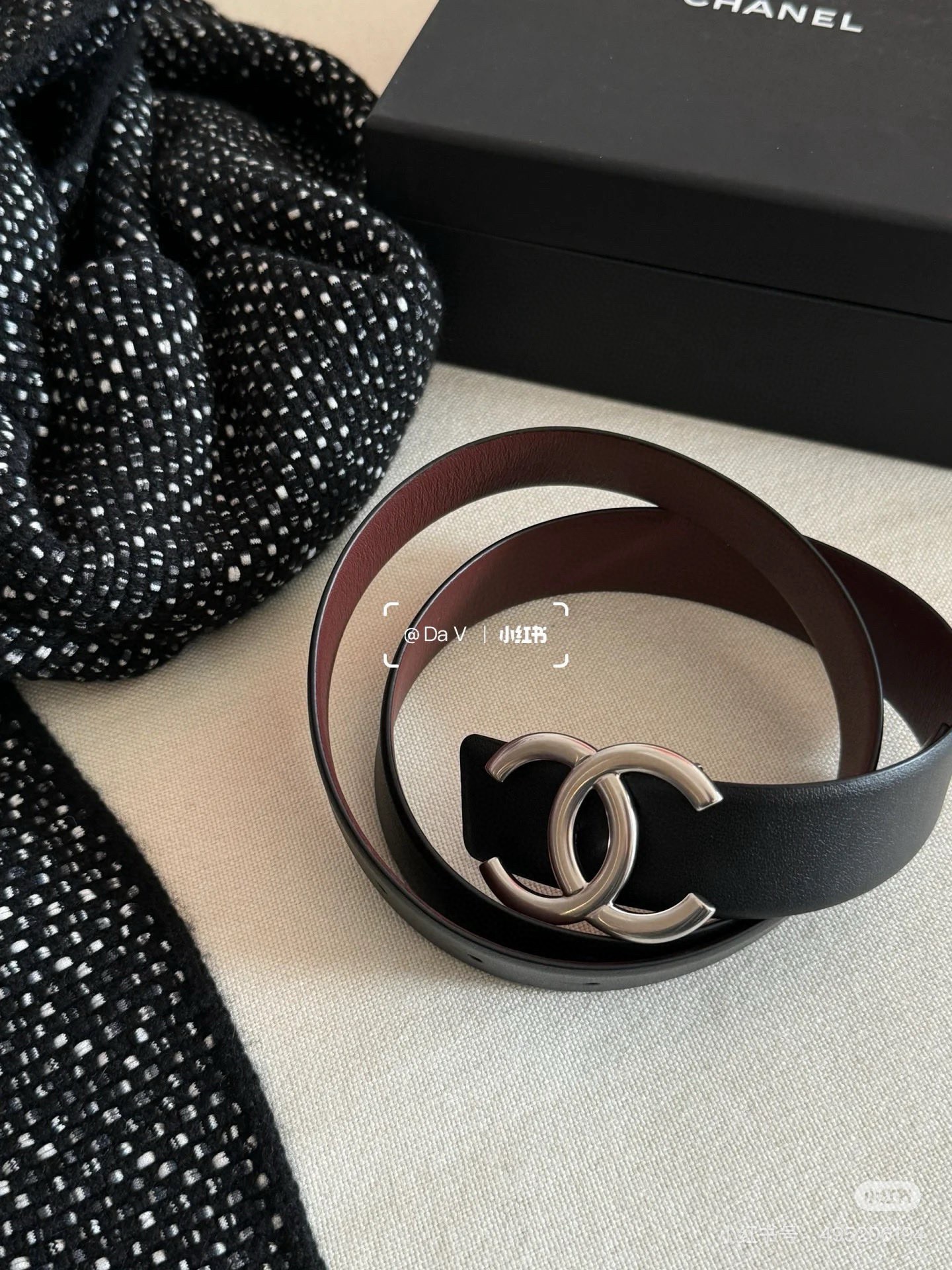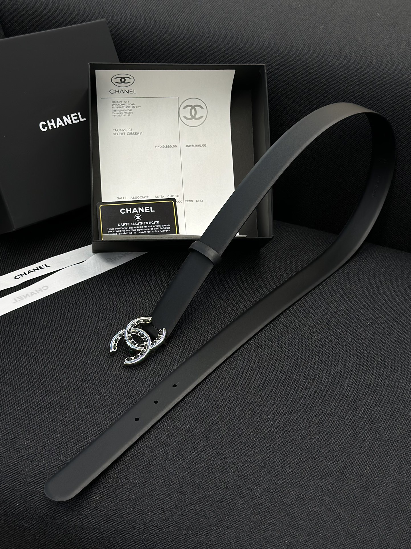 专柜款!头层小牛皮,CHANE1女士新款黑金皮穿链菱格字母腰带!时髦超百搭
