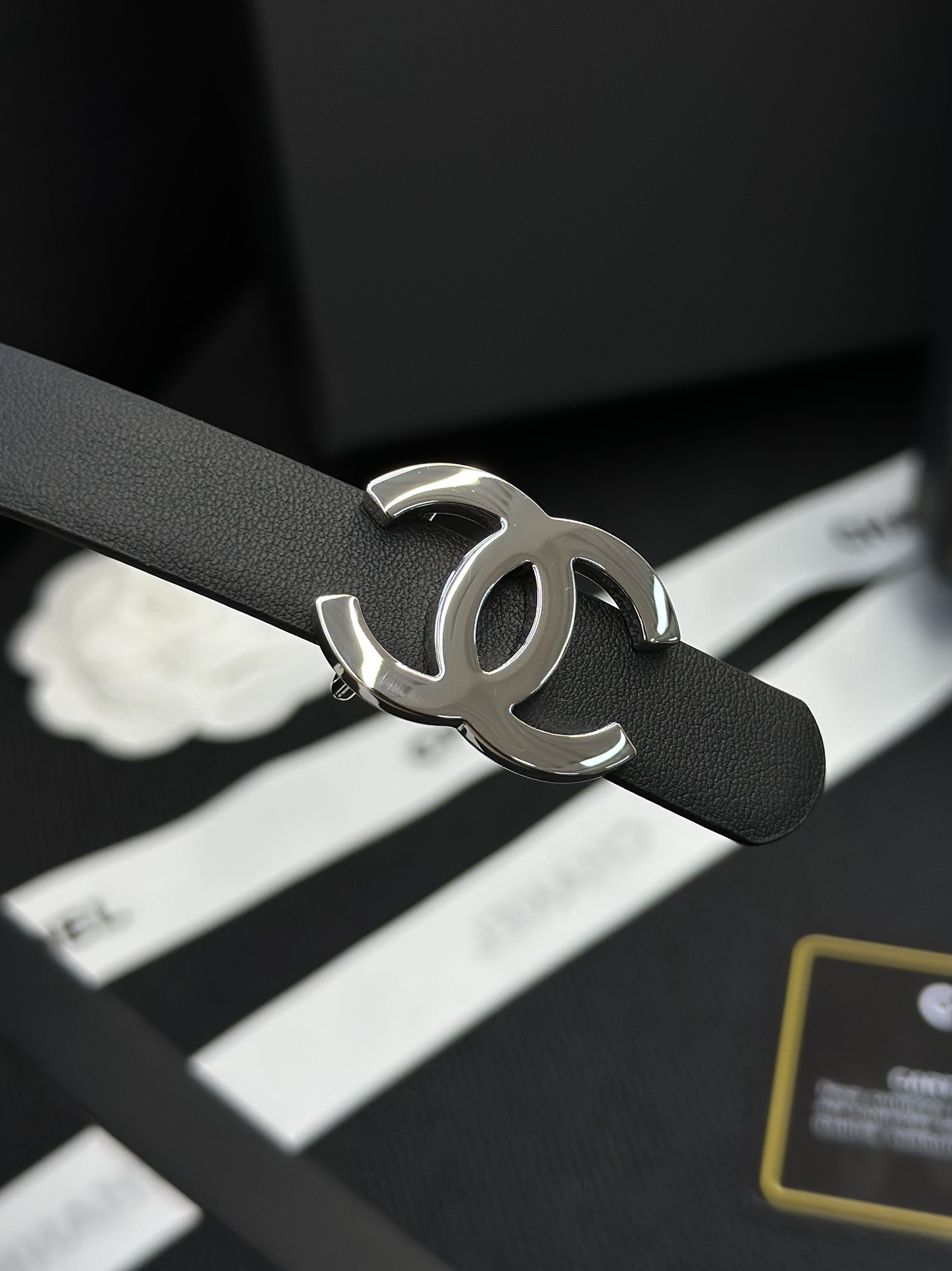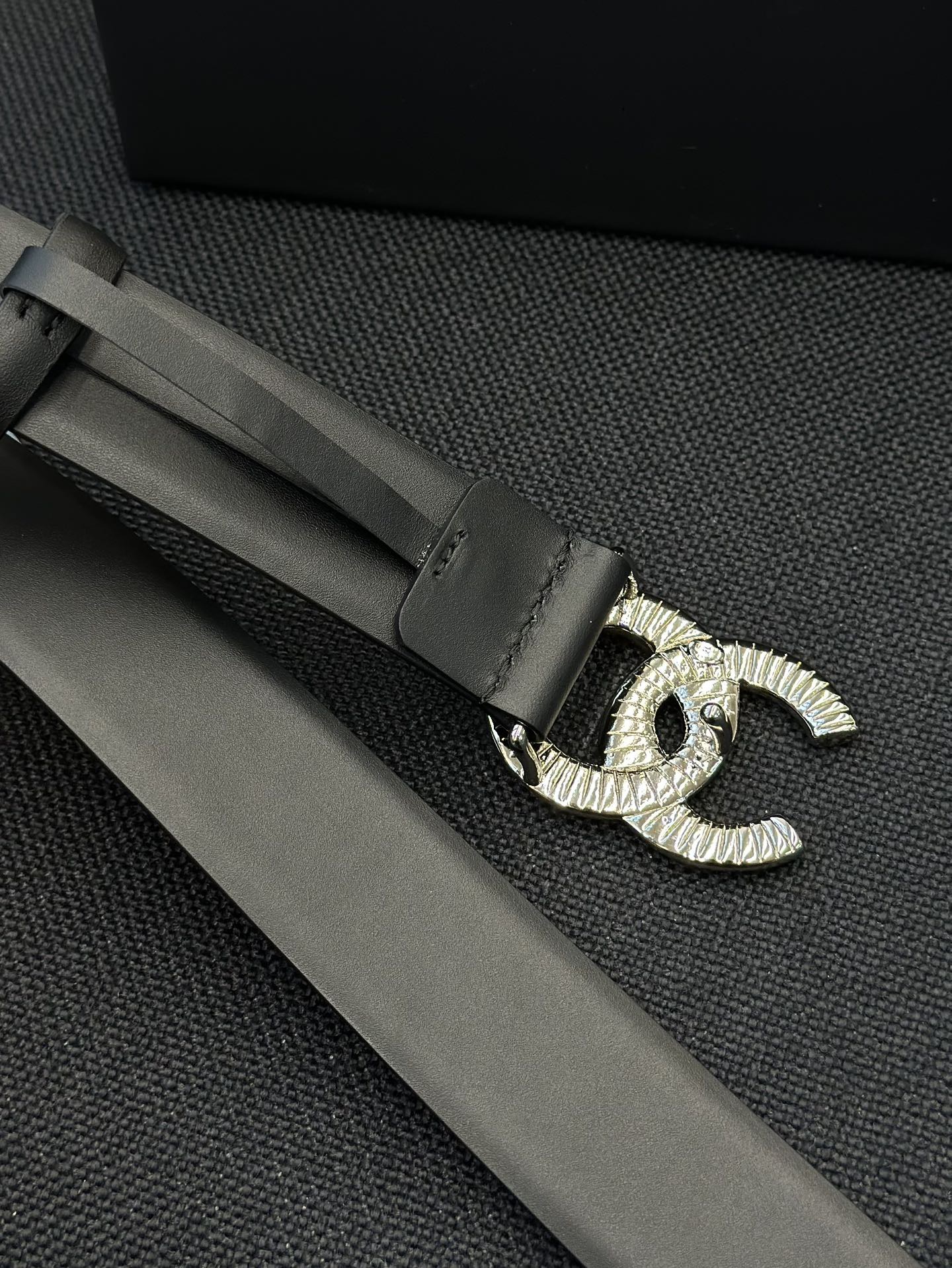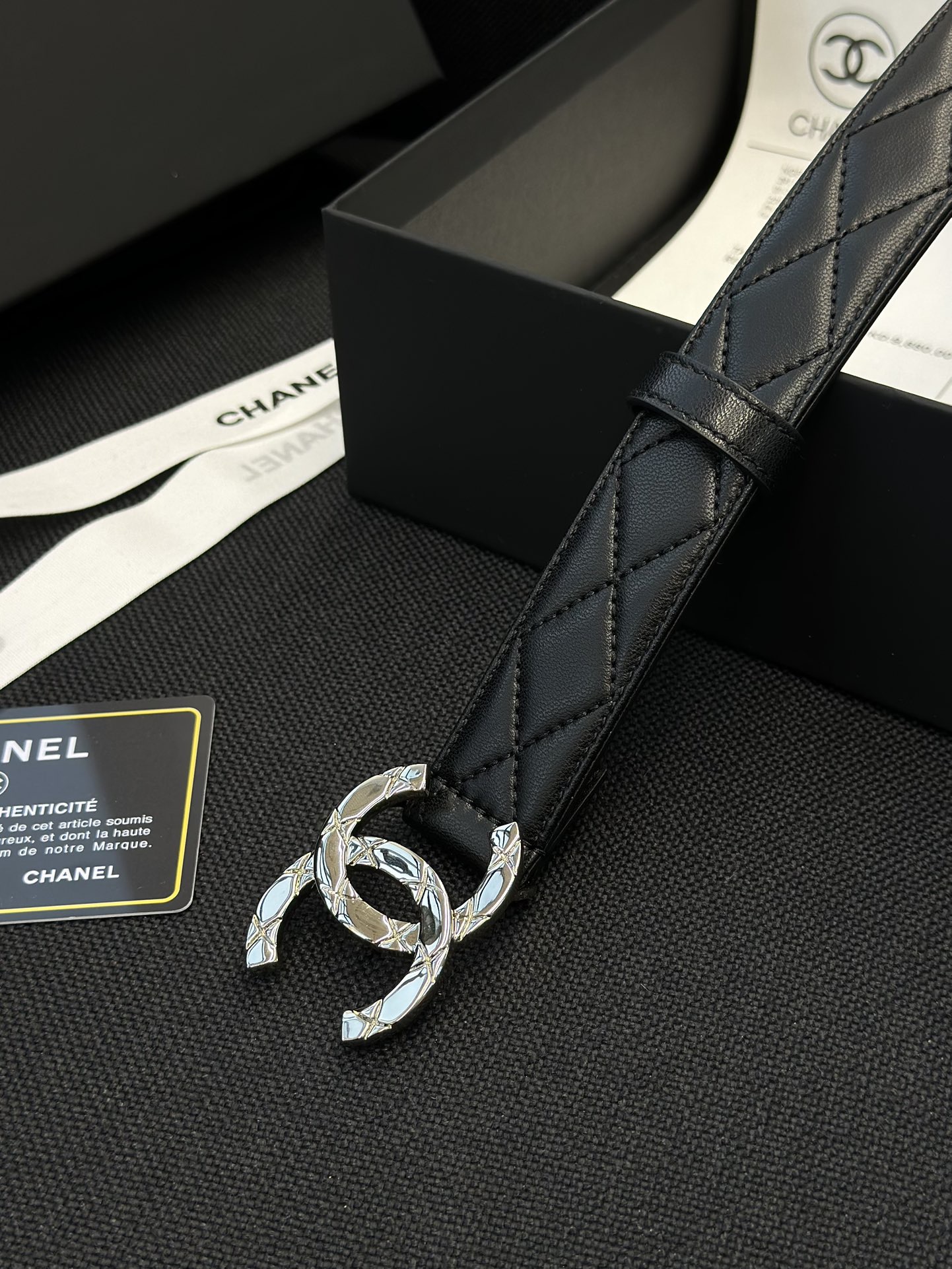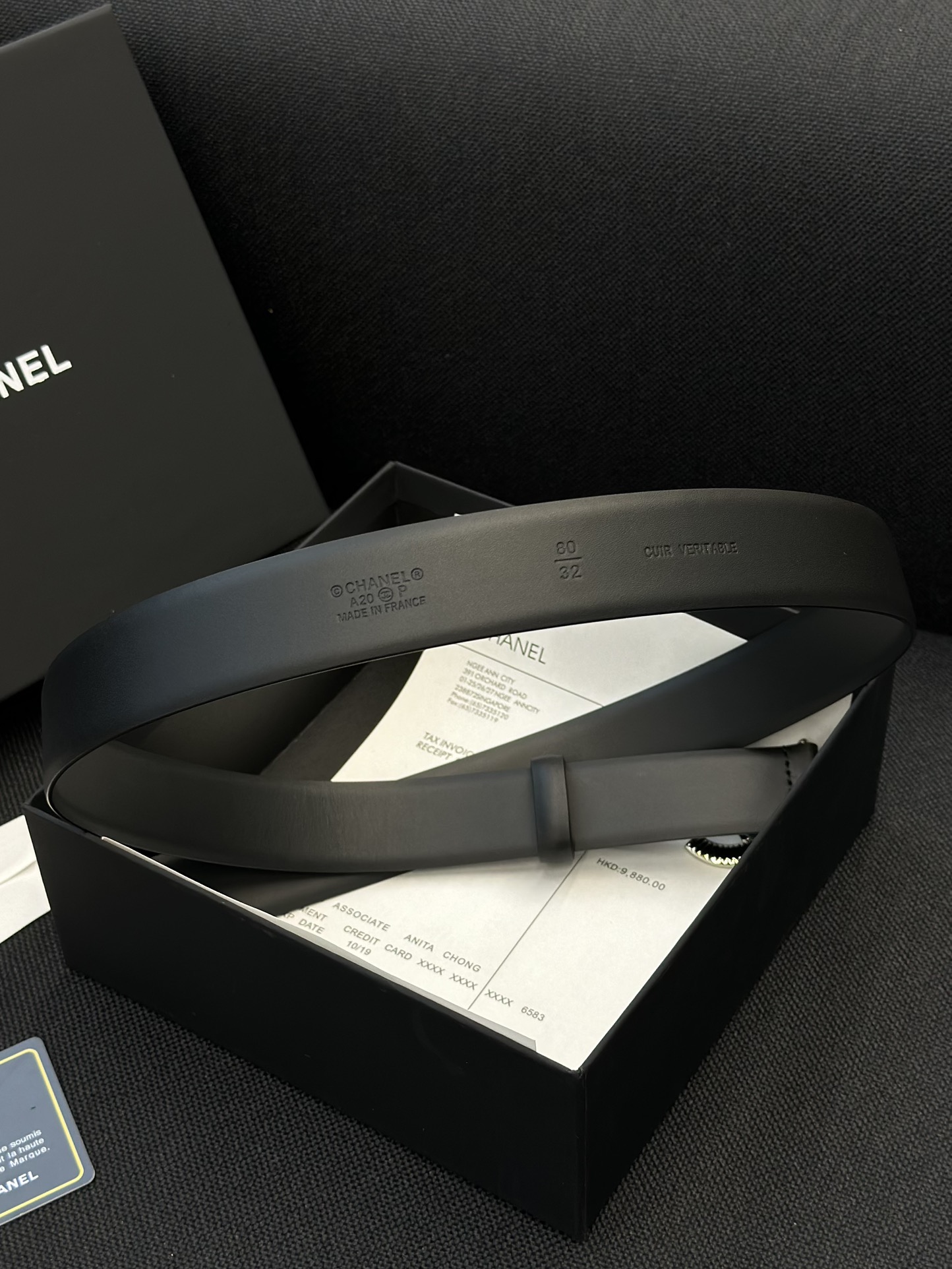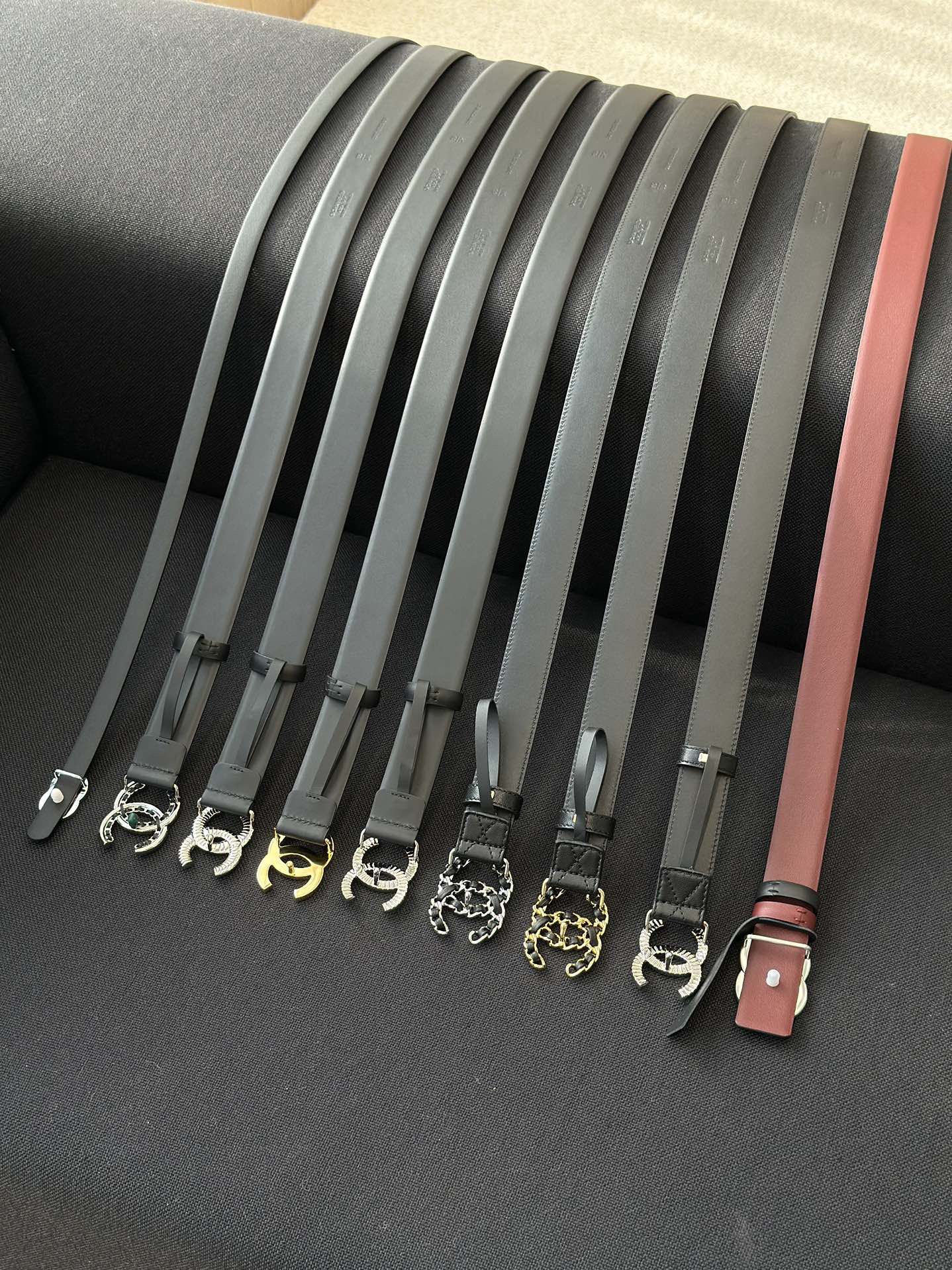 专柜款!头层小牛皮,CHANE1女士新款黑金皮穿链菱格字母腰带!时髦超百搭