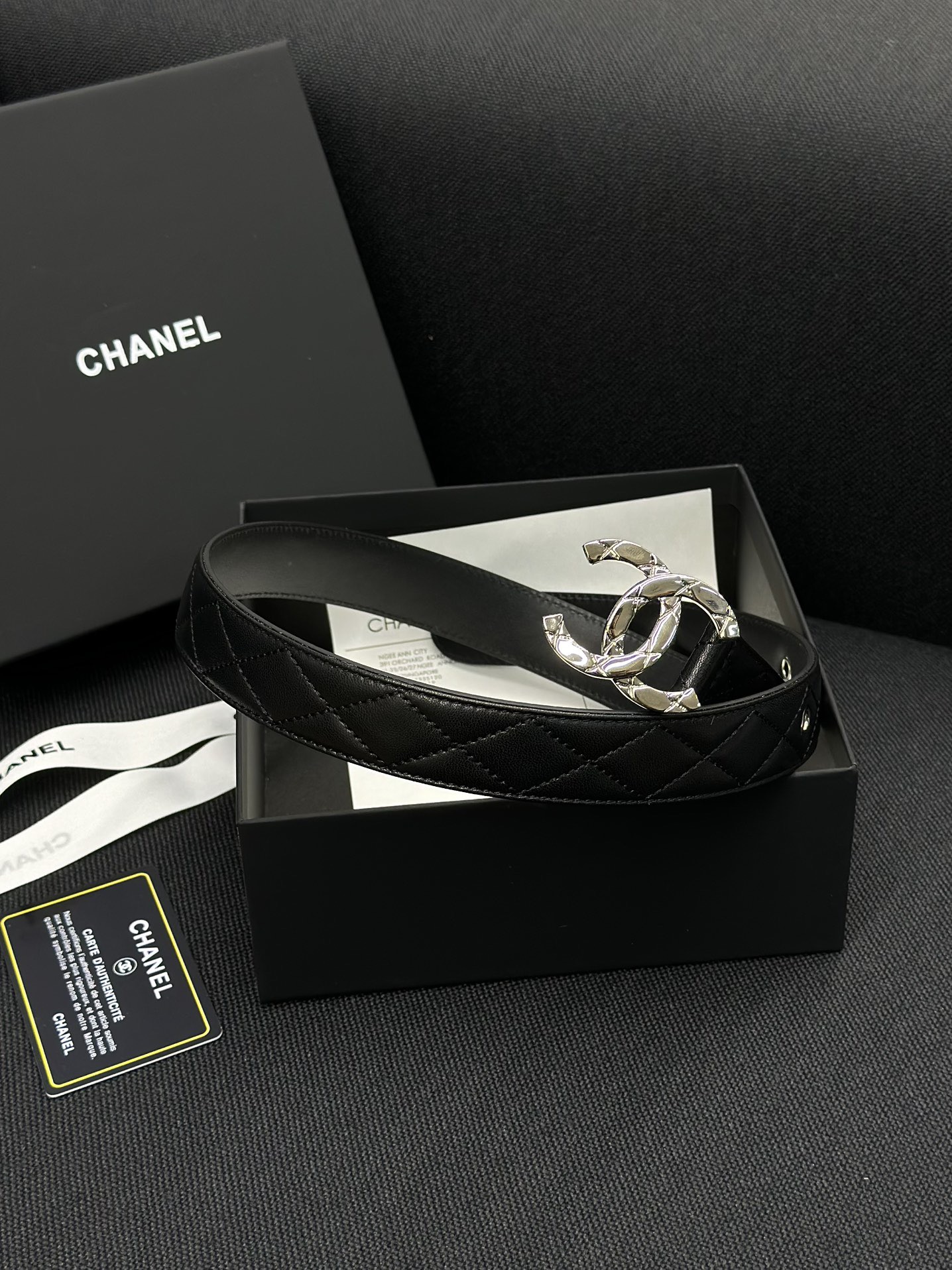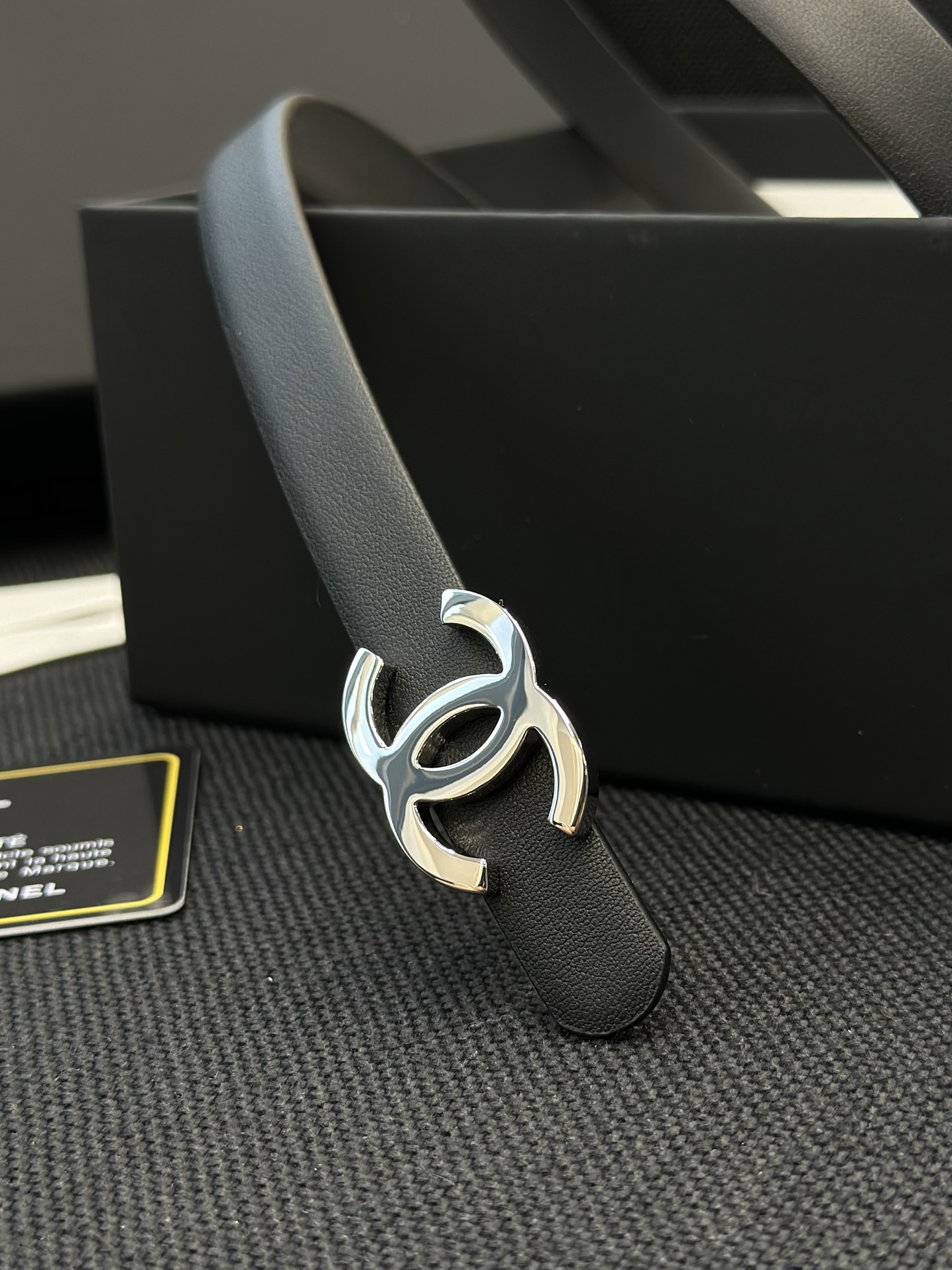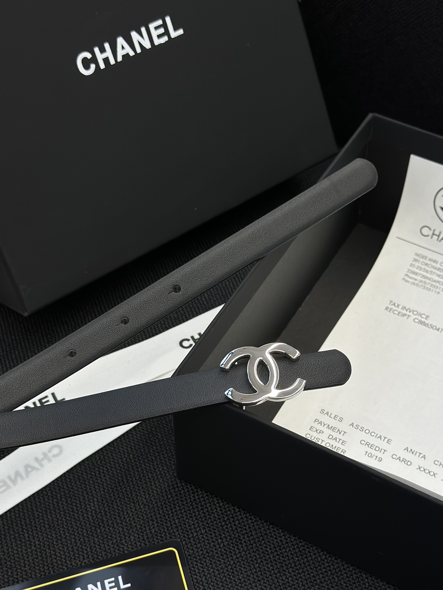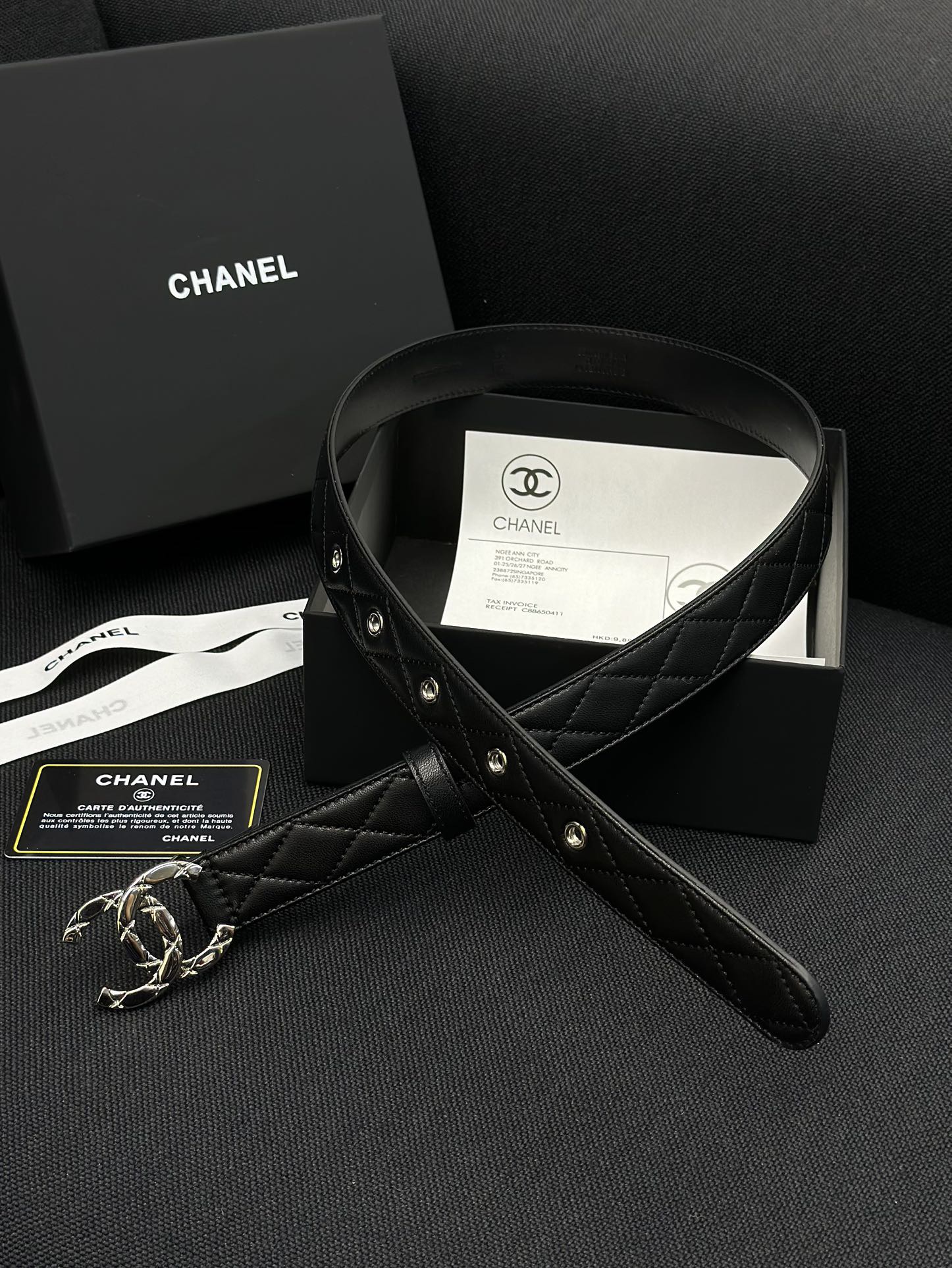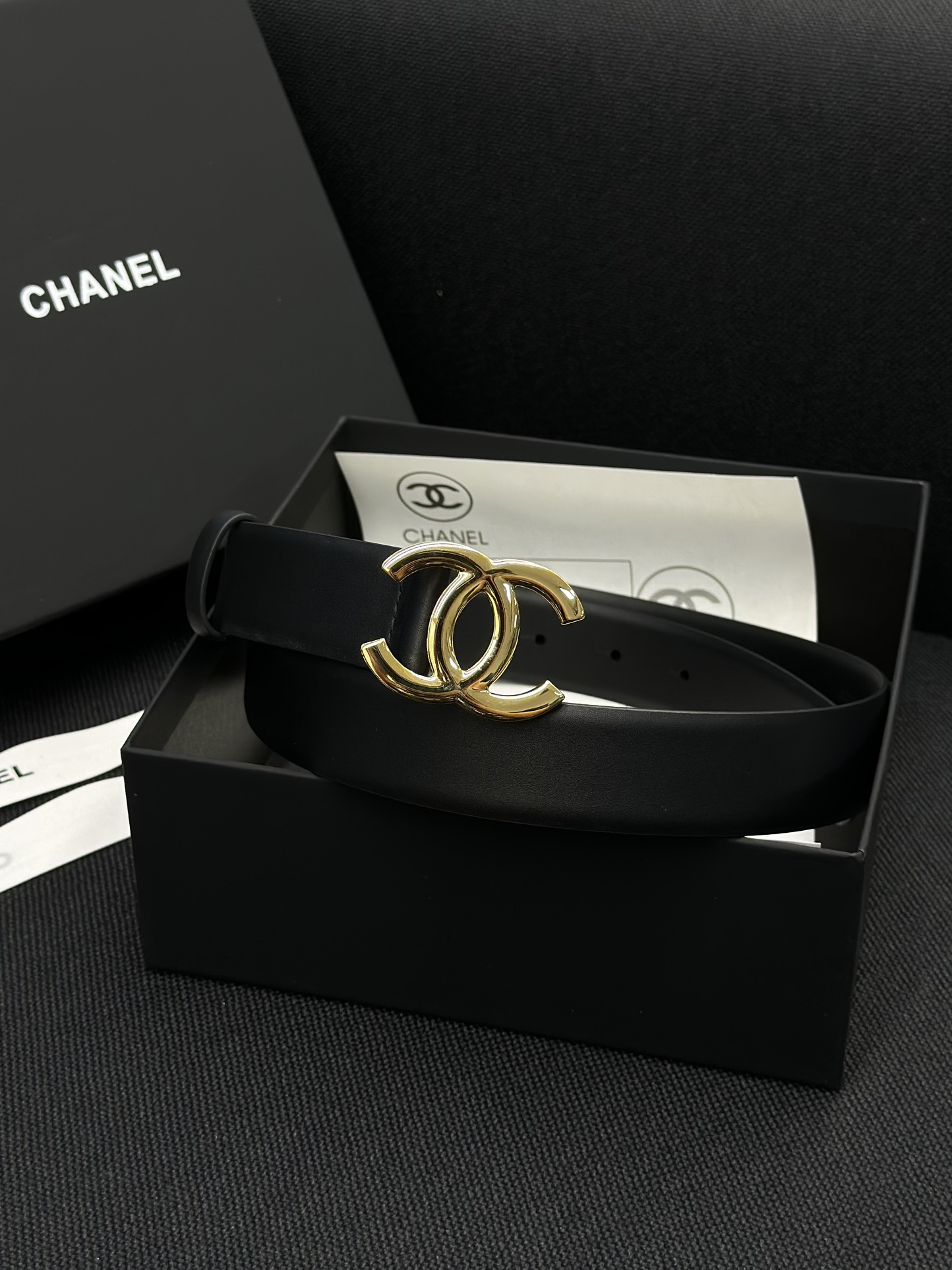 专柜款!头层小牛皮,CHANE1女士新款黑金皮穿链菱格字母腰带!时髦超百搭