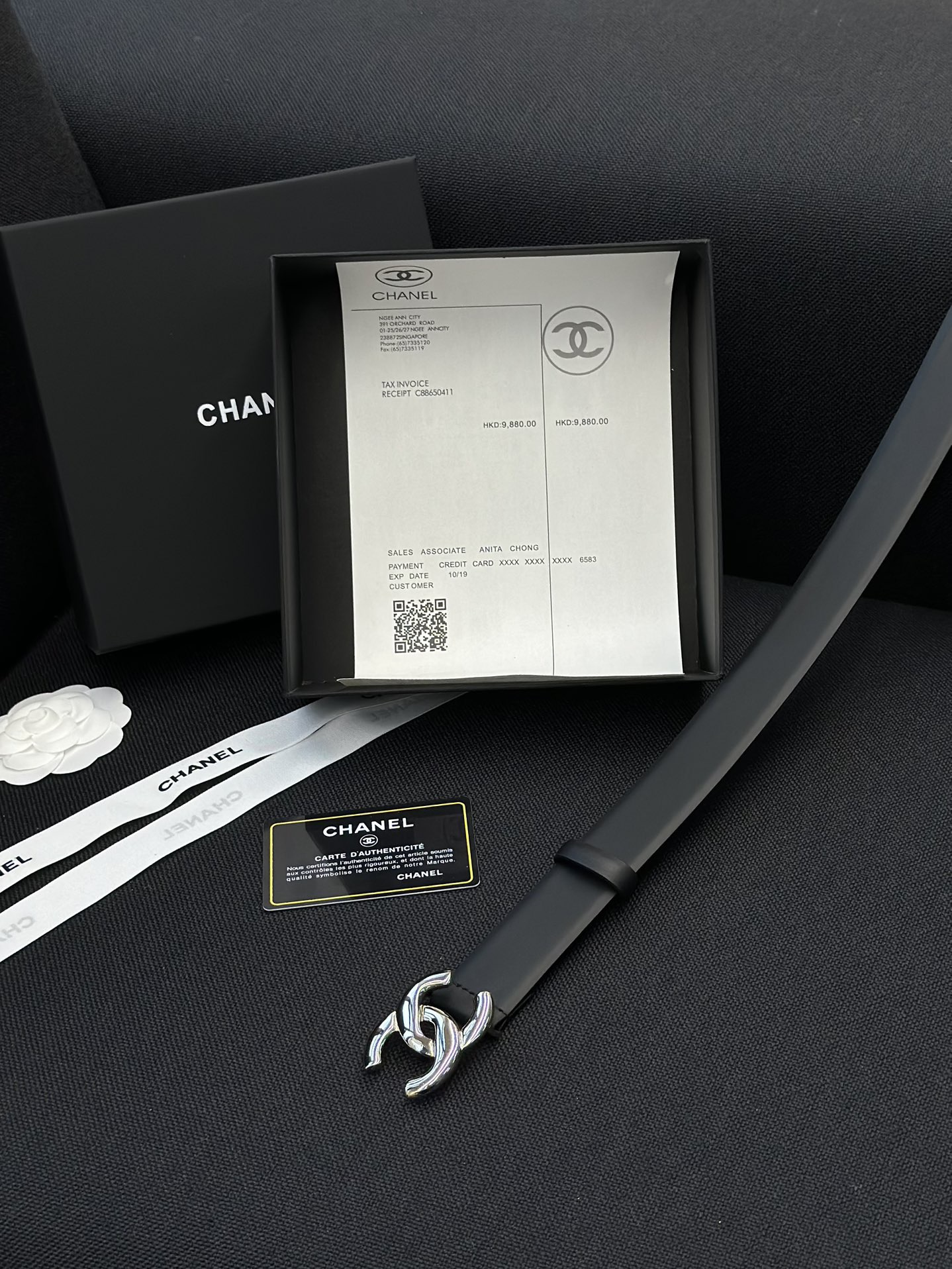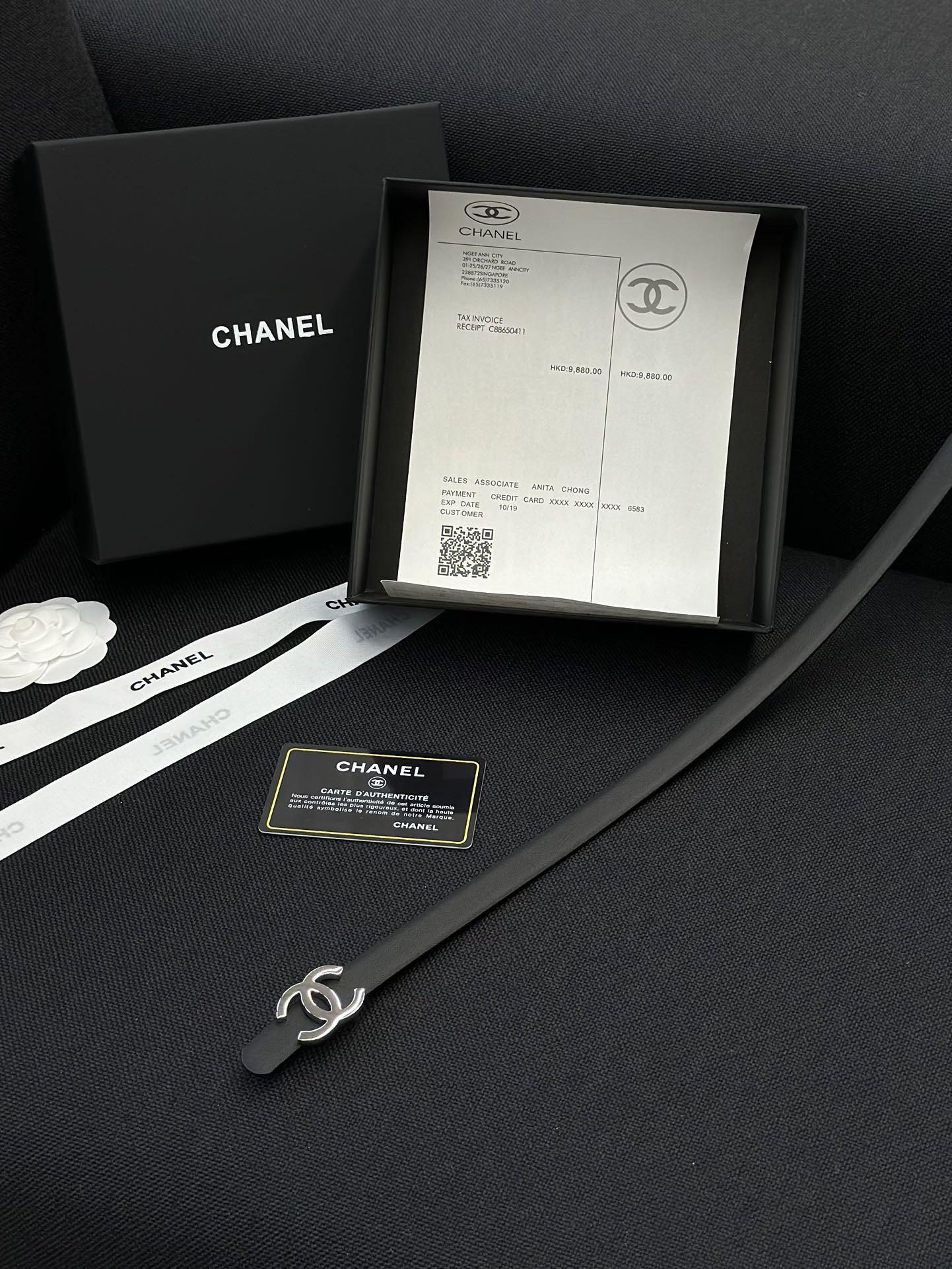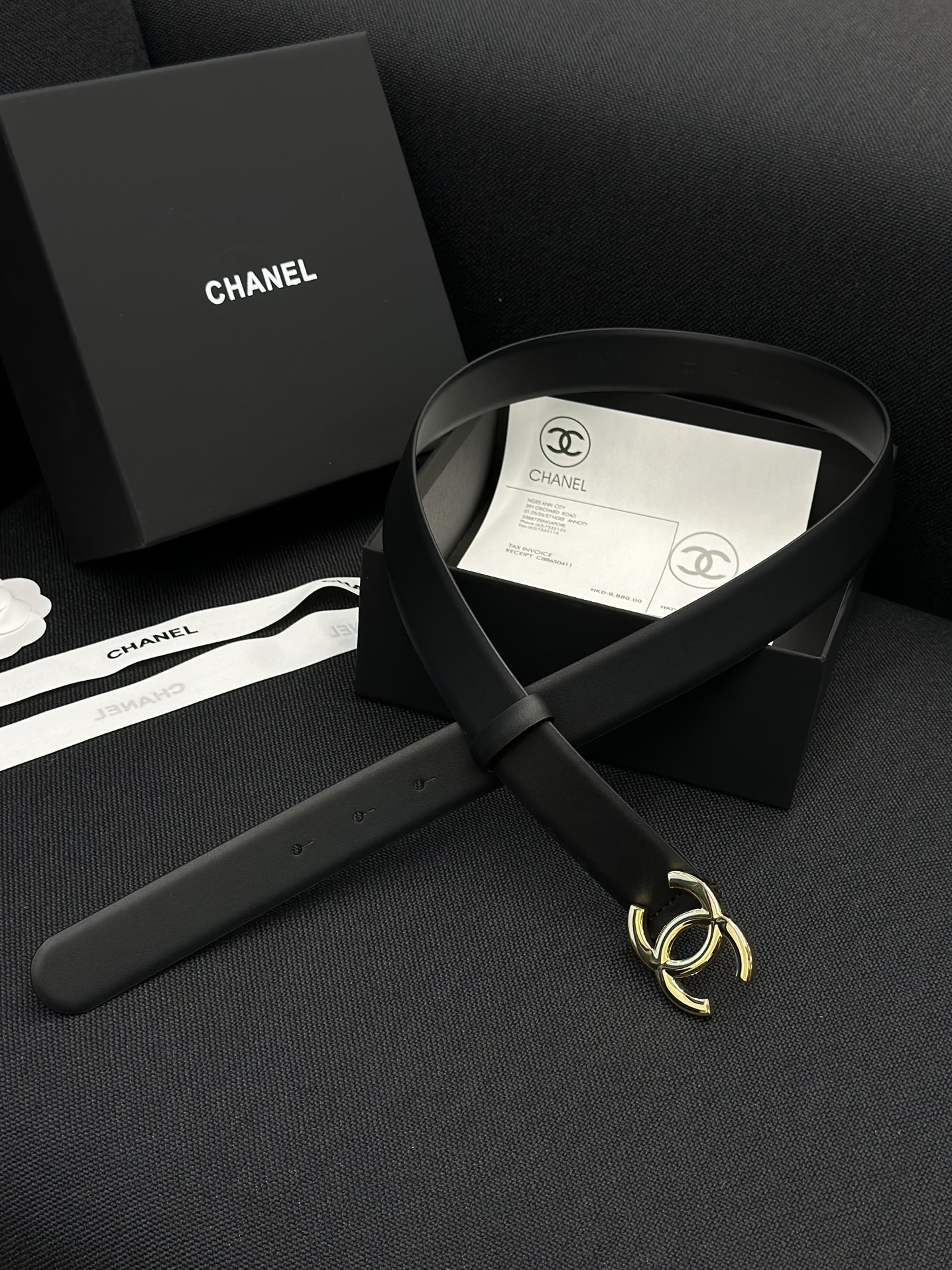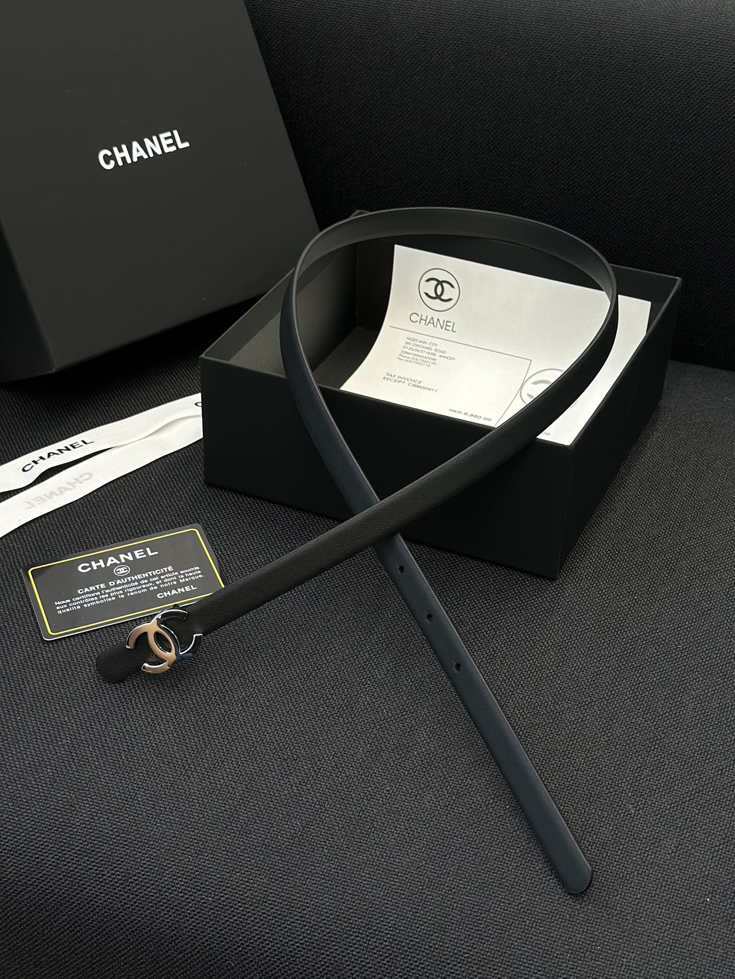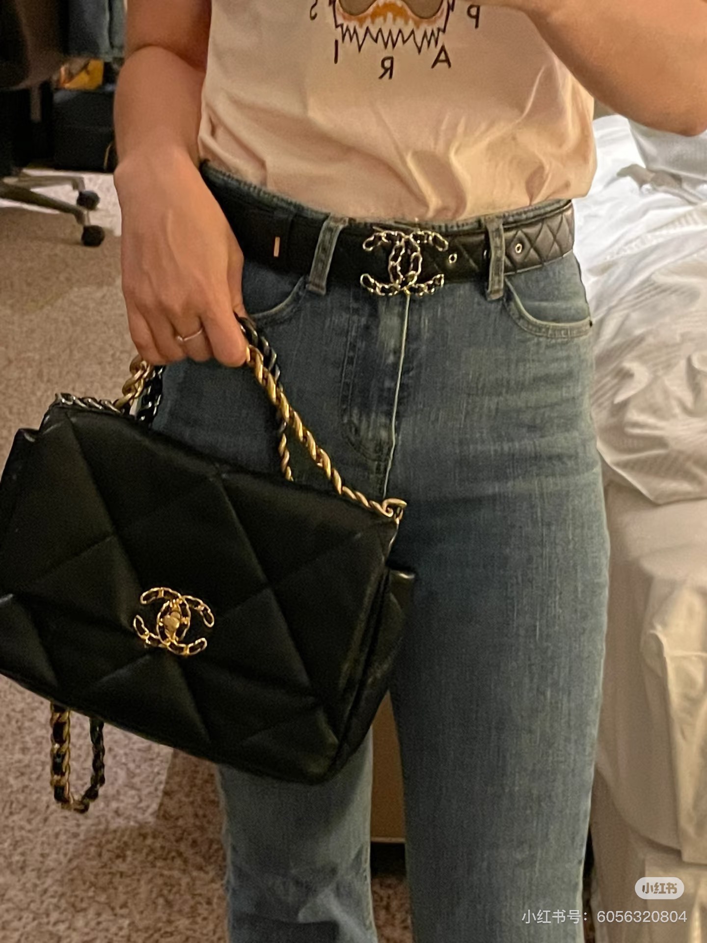 专柜款!头层小牛皮,CHANE1女士新款黑金皮穿链菱格字母腰带!时髦超百搭