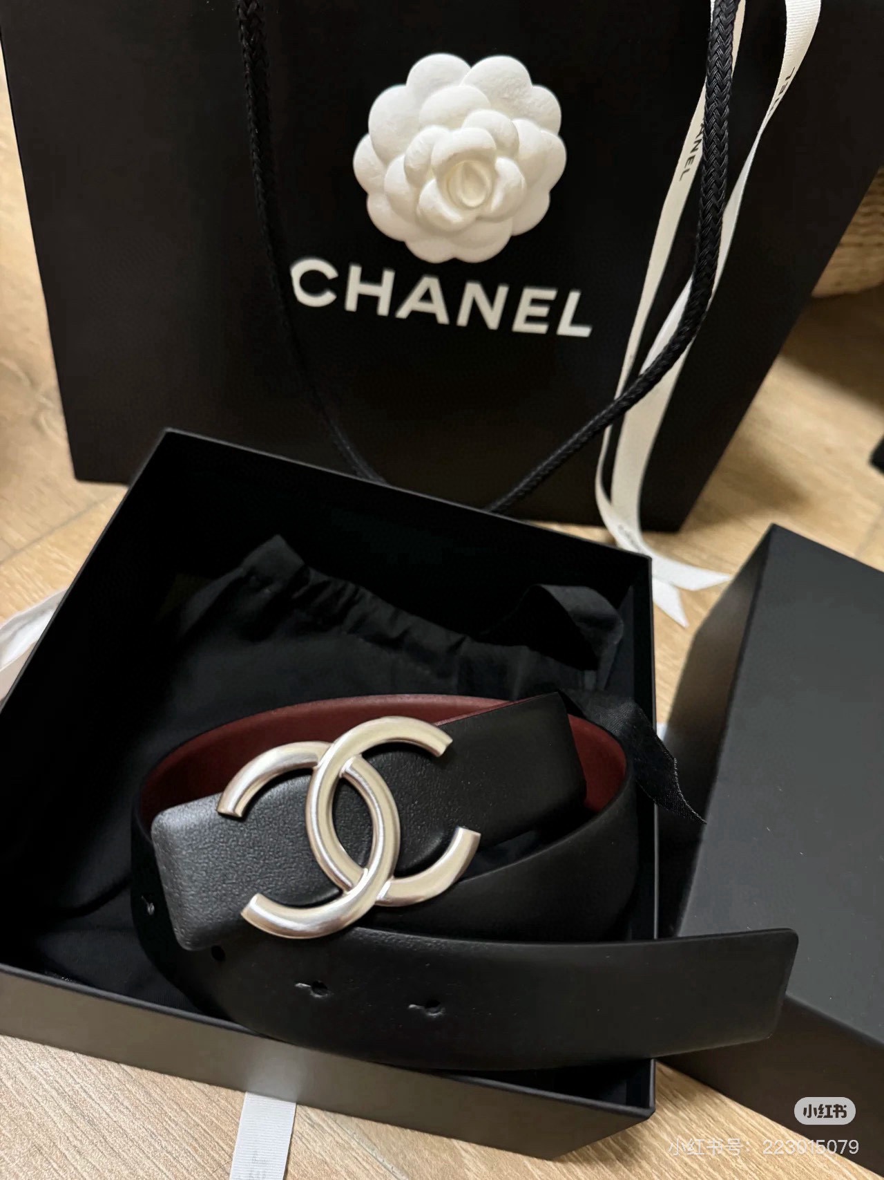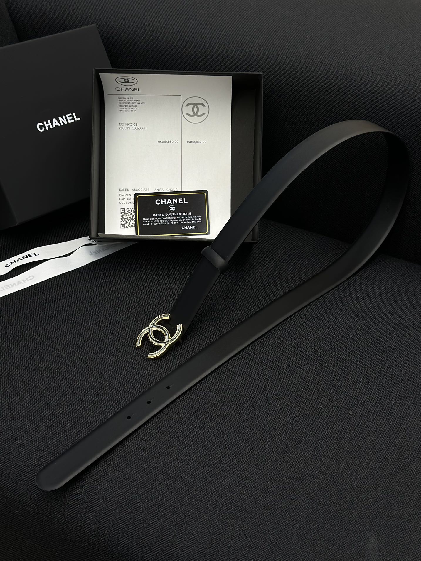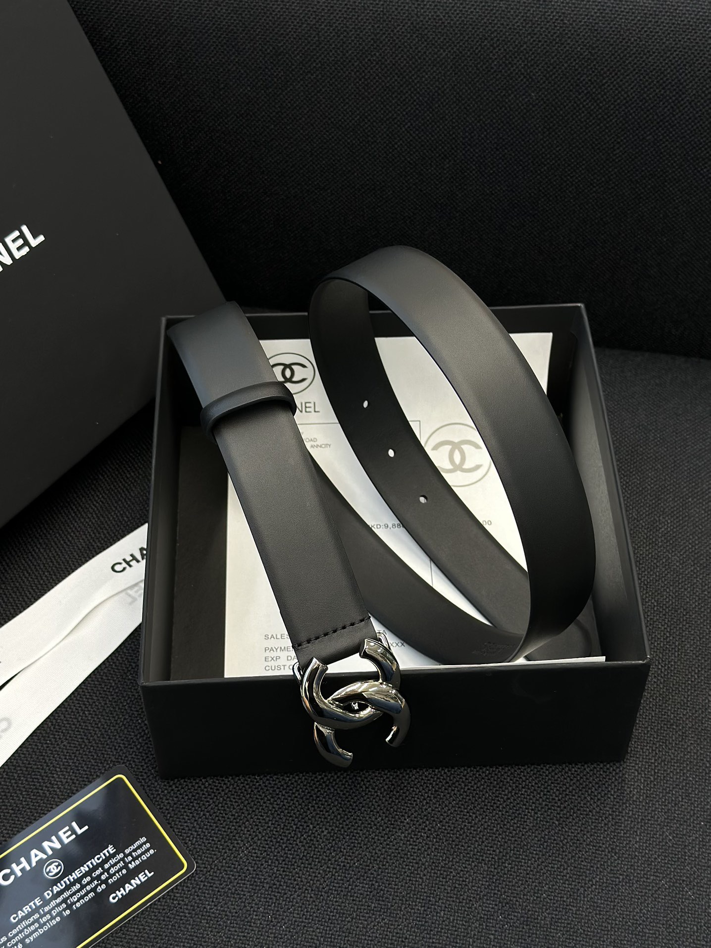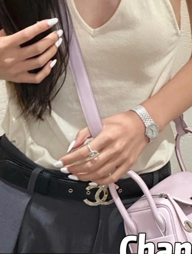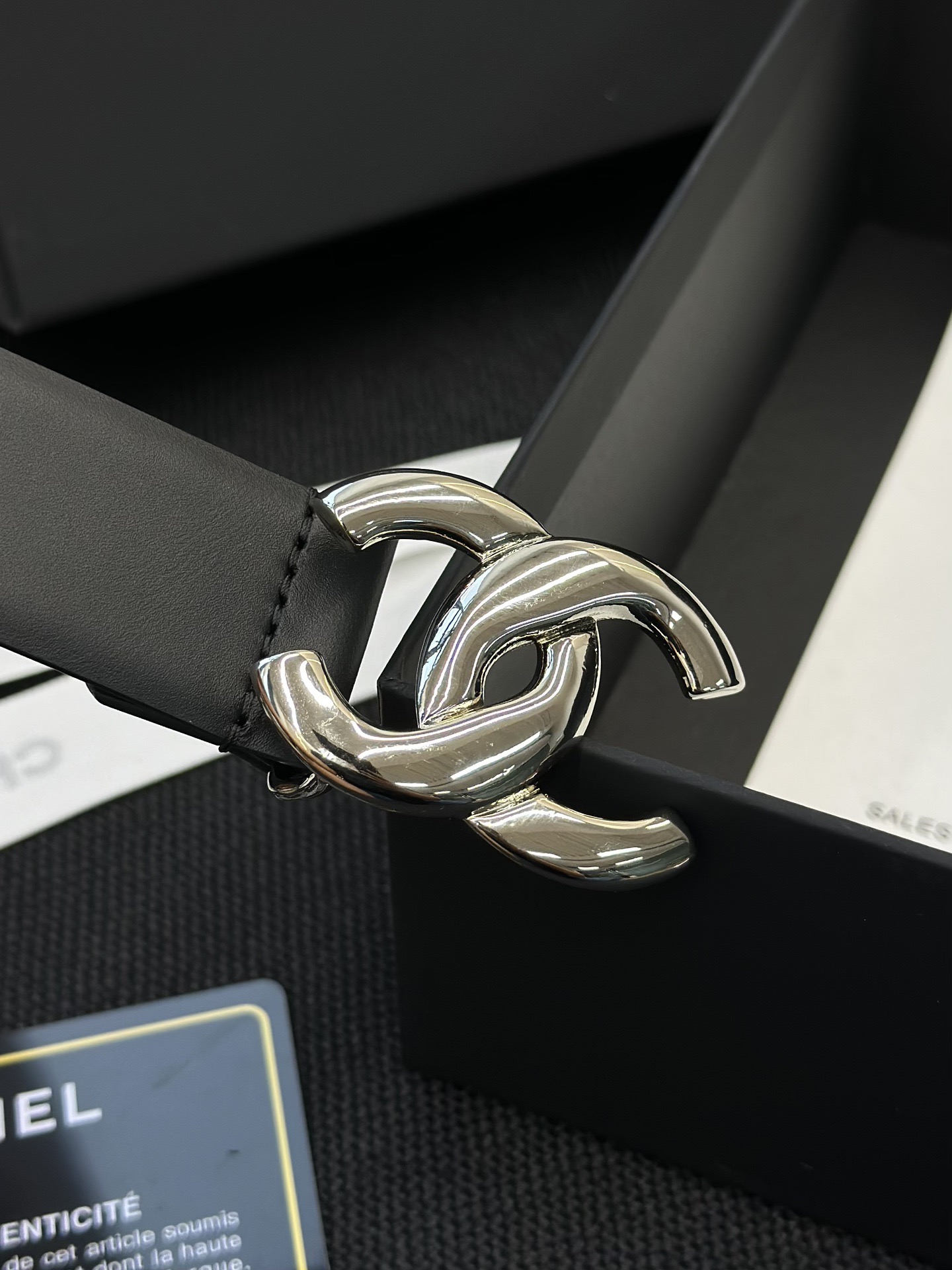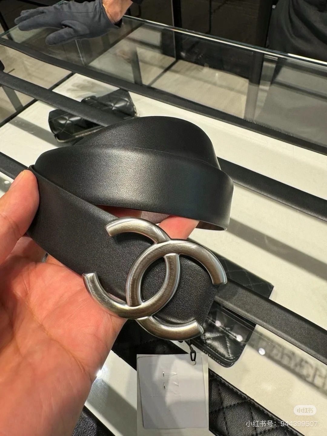 专柜款!头层小牛皮,CHANE1女士新款黑金皮穿链菱格字母腰带!时髦超百搭