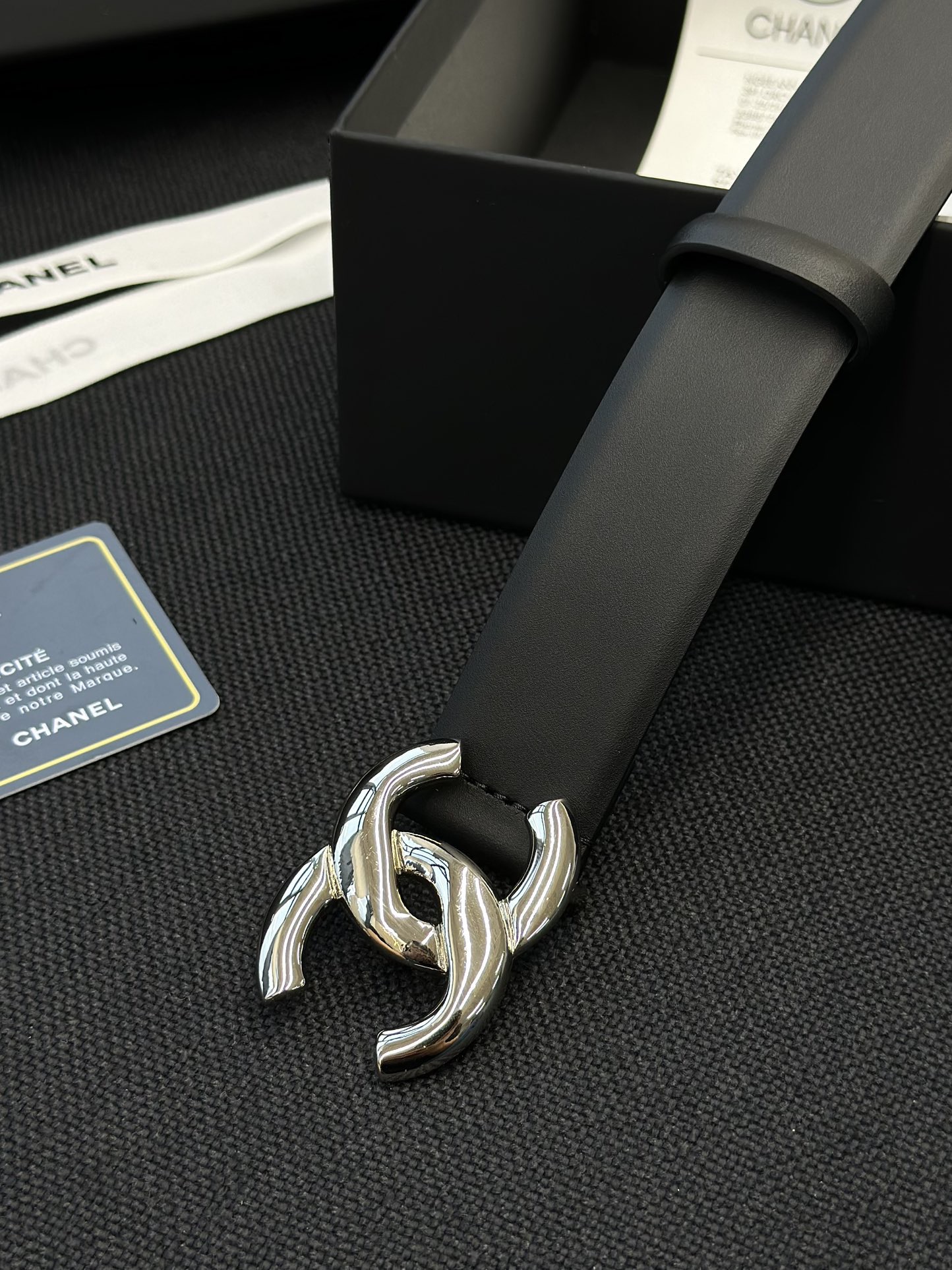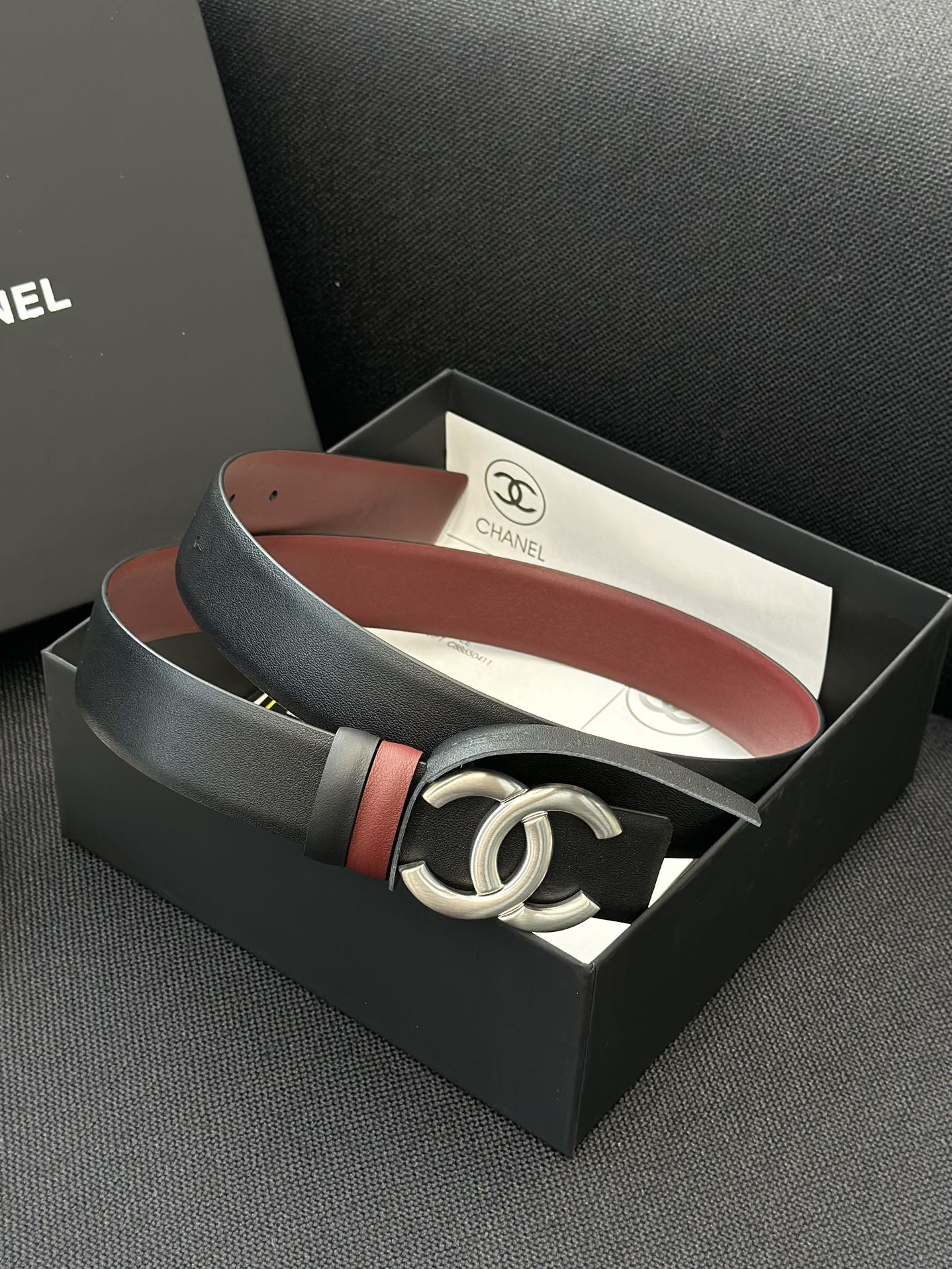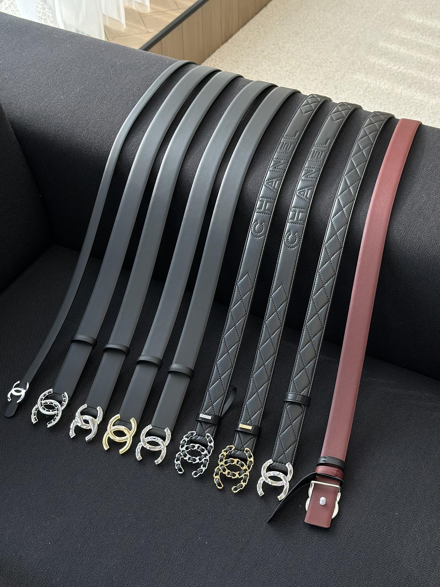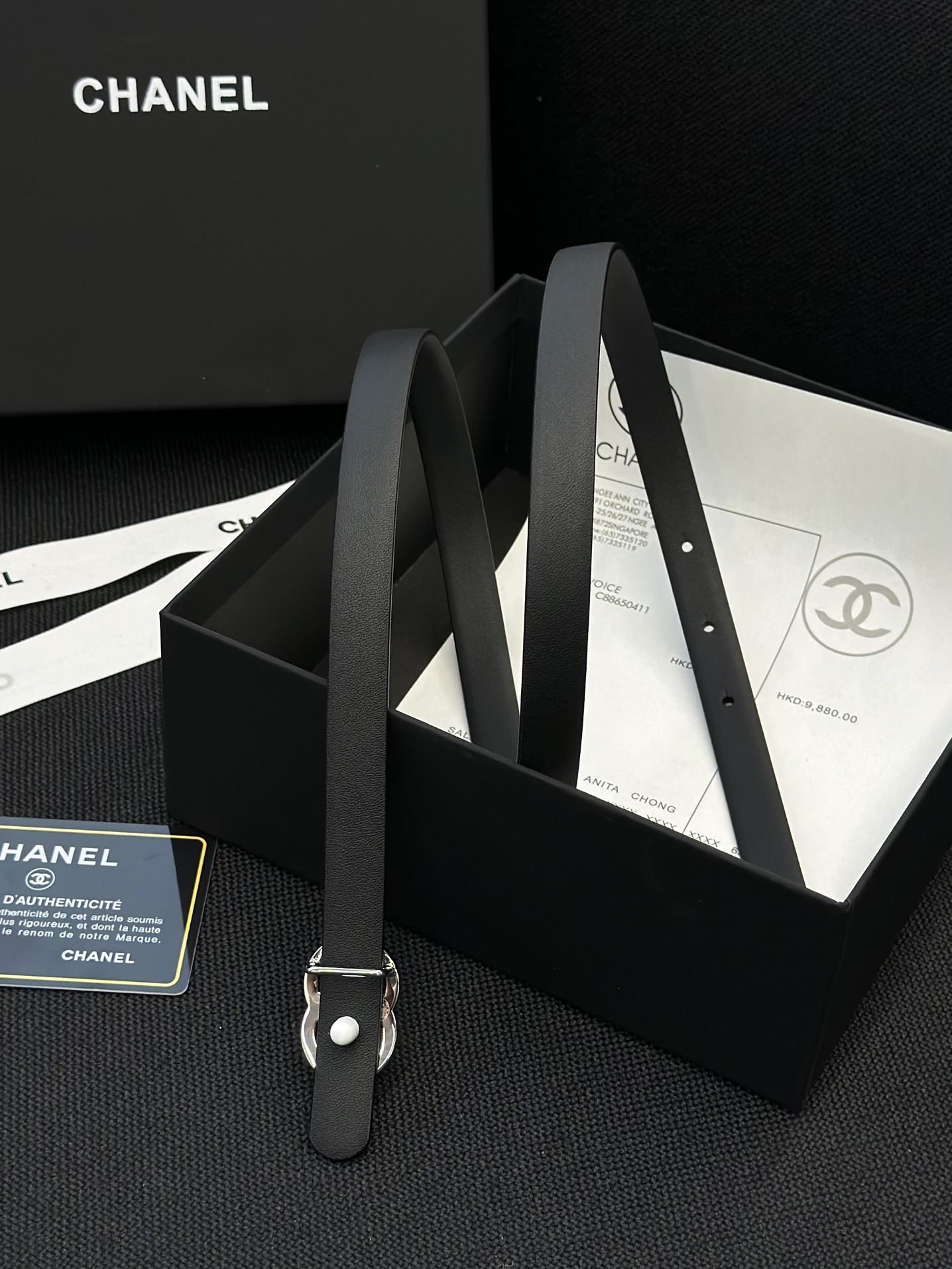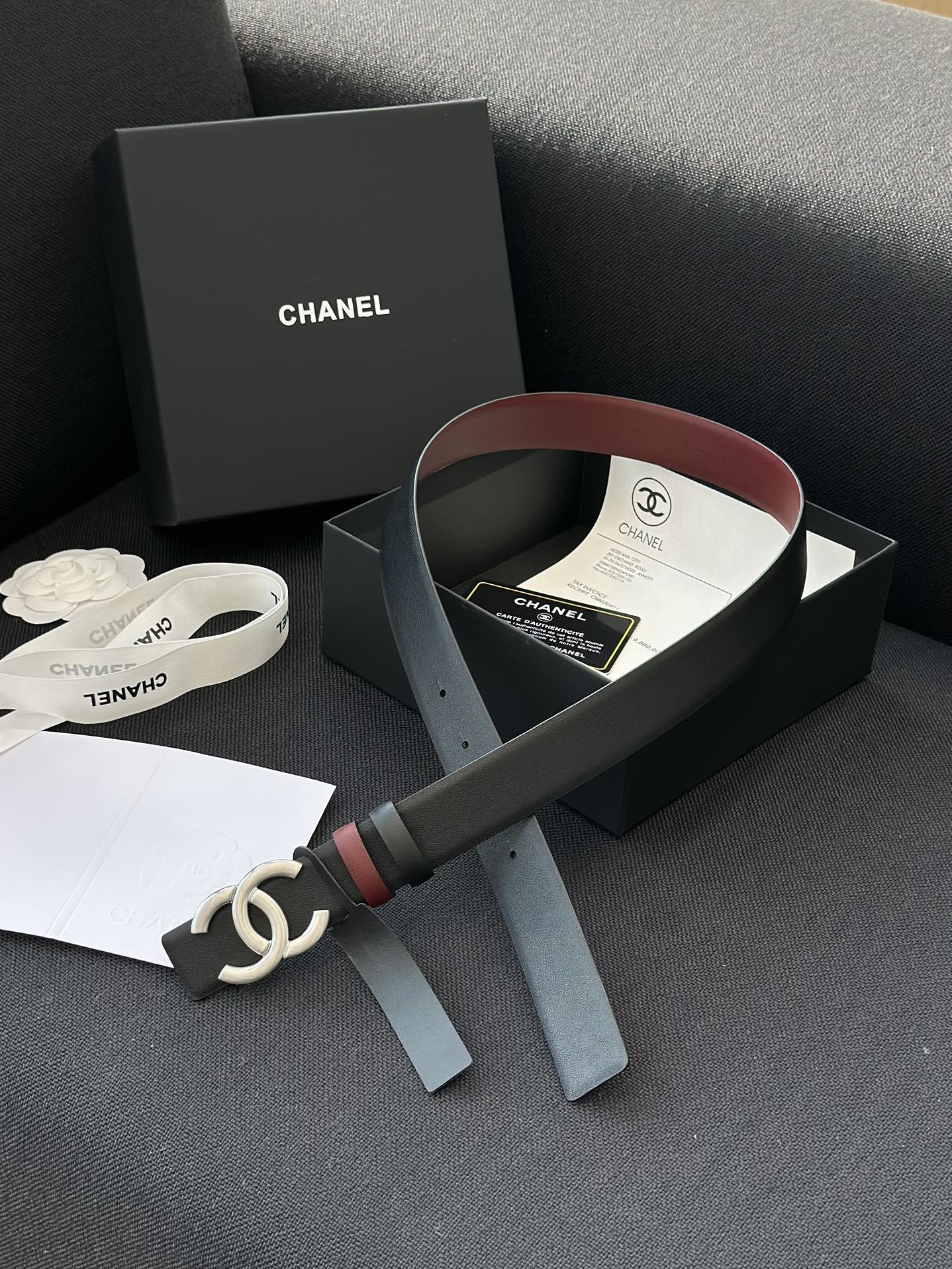 专柜款!头层小牛皮,CHANE1女士新款黑金皮穿链菱格字母腰带!时髦超百搭