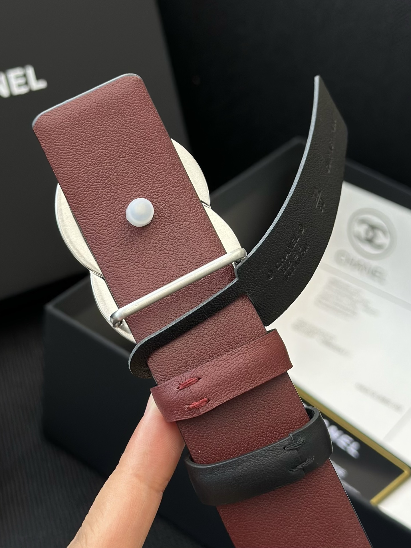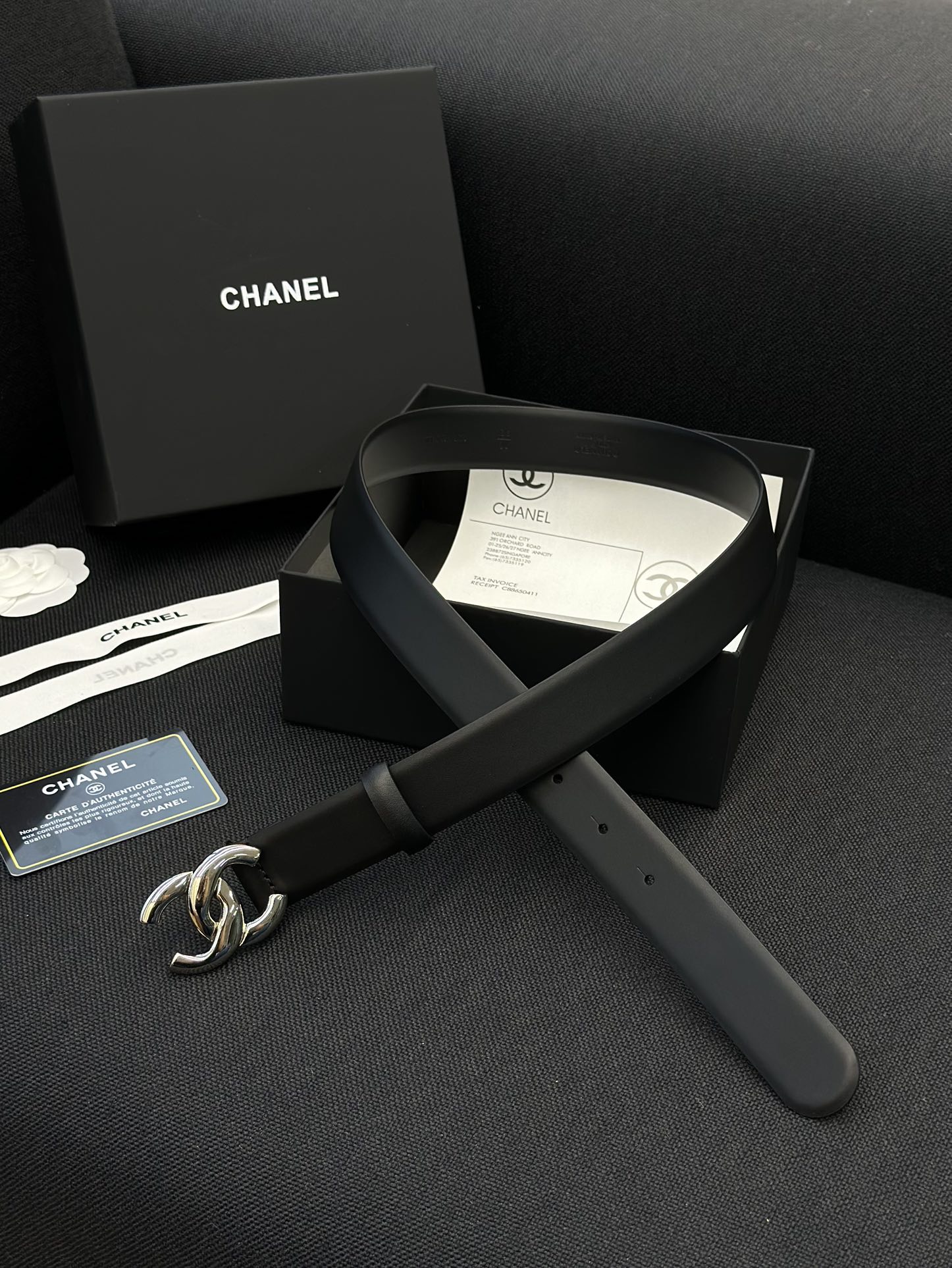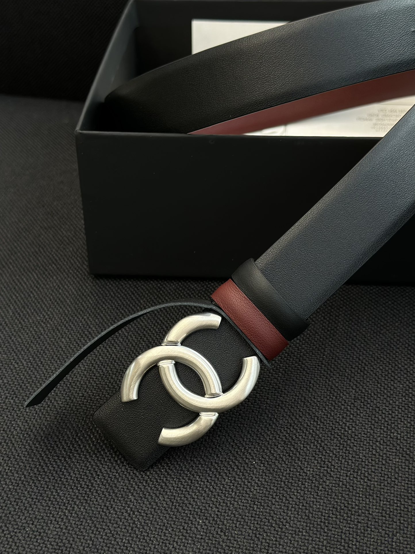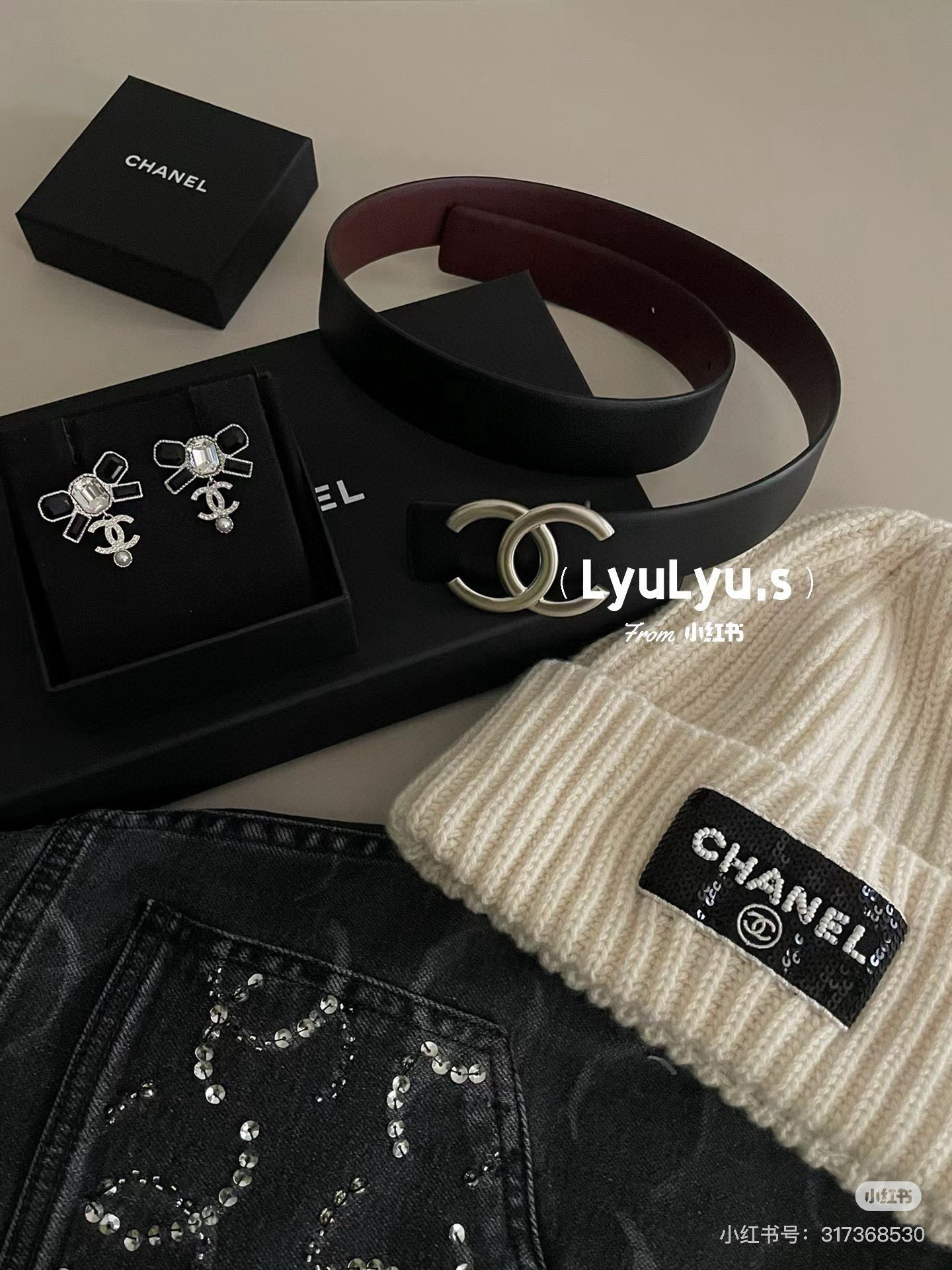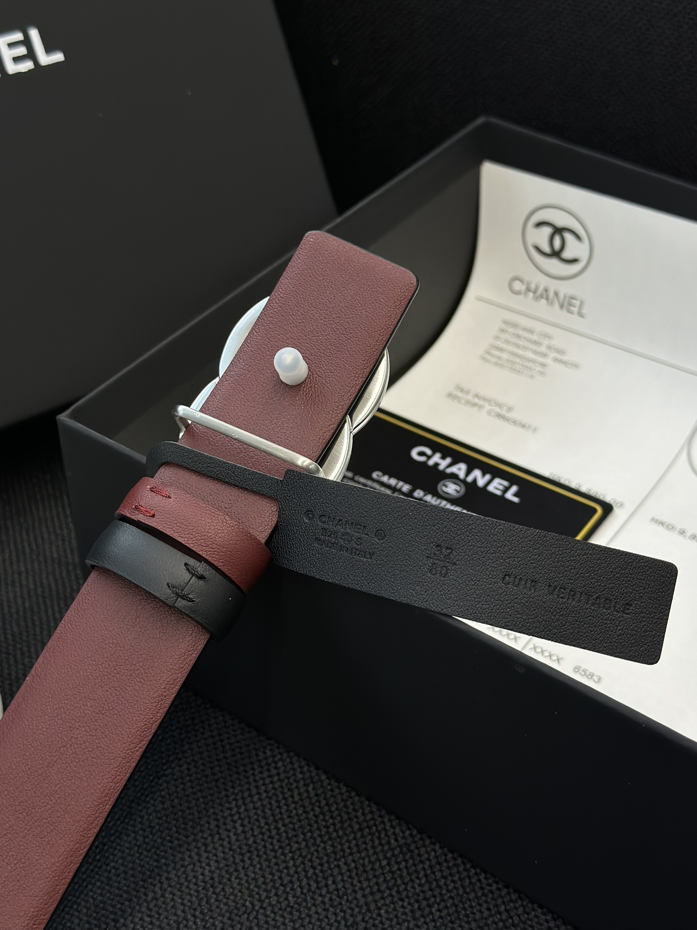 专柜款!头层小牛皮,CHANE1女士新款黑金皮穿链菱格字母腰带!时髦超百搭