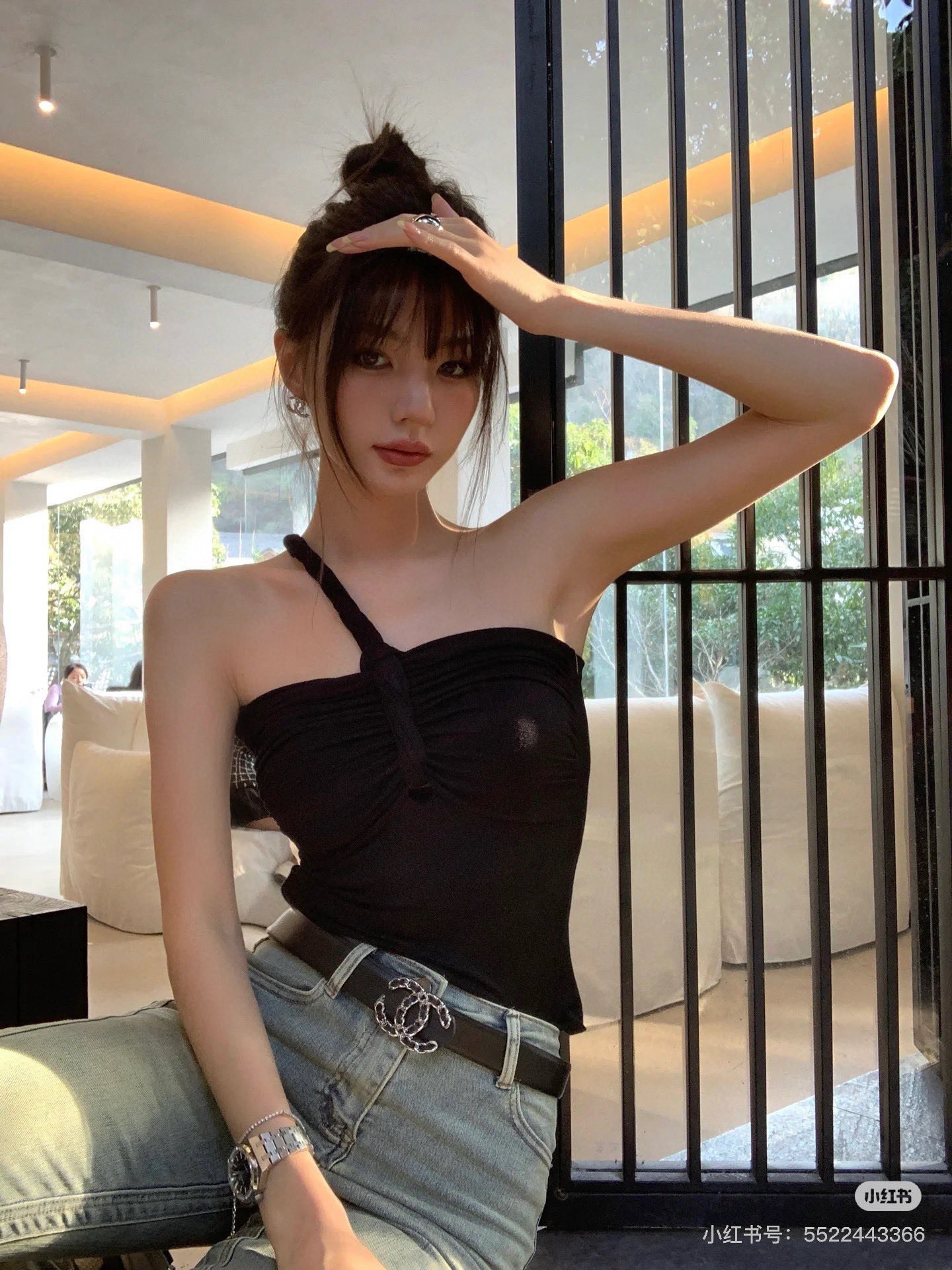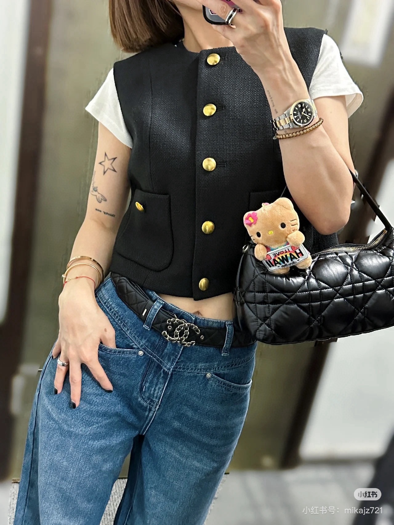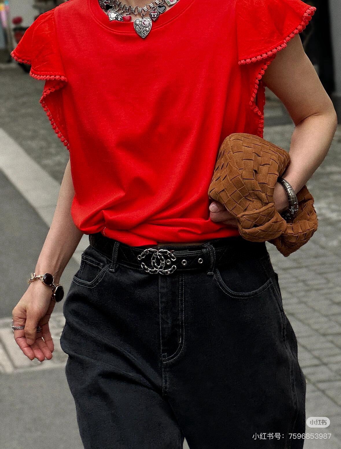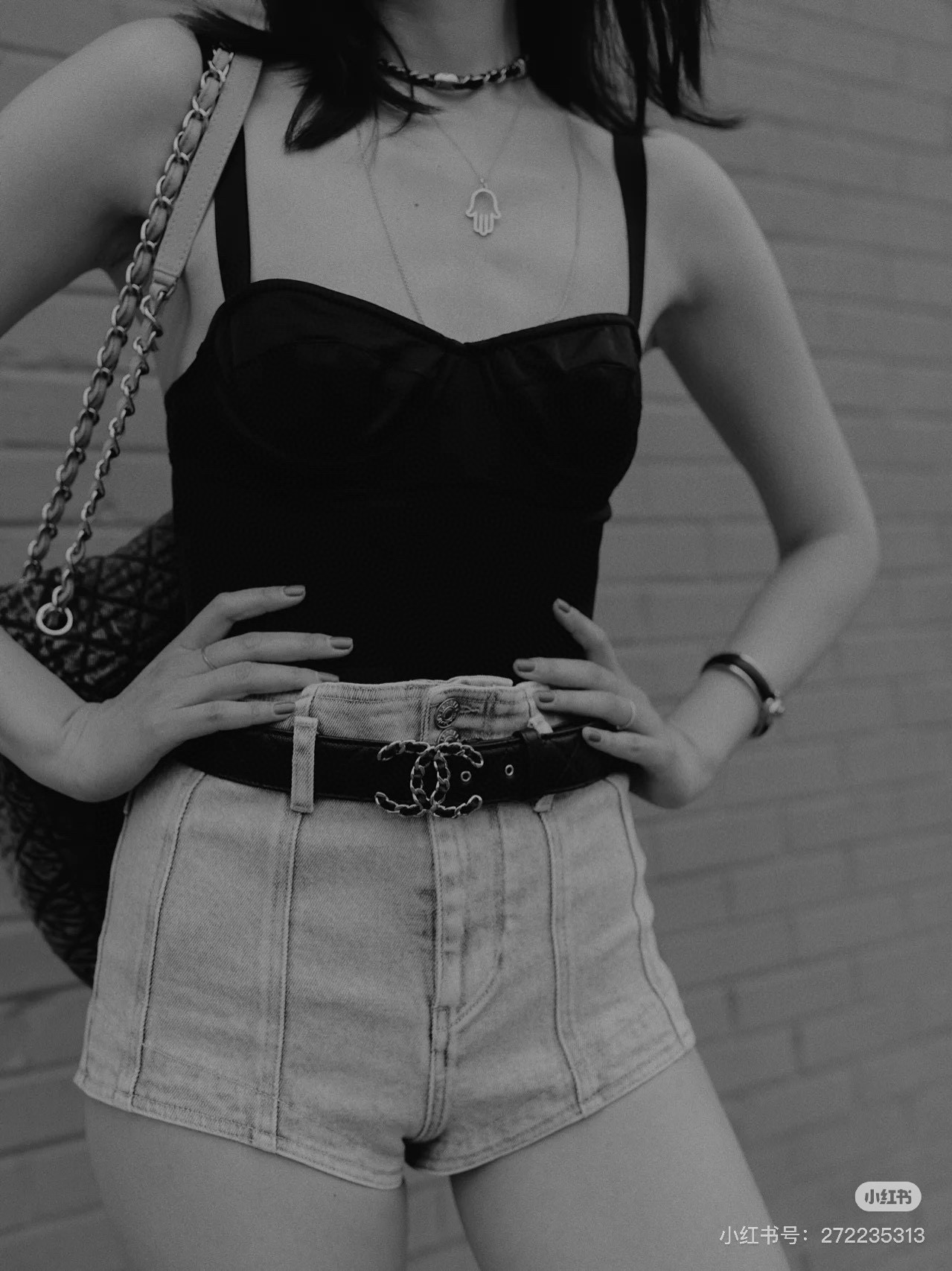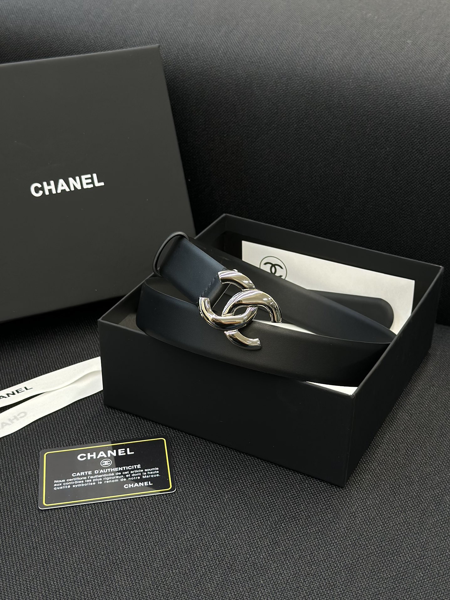 专柜款!头层小牛皮,CHANE1女士新款黑金皮穿链菱格字母腰带!时髦超百搭