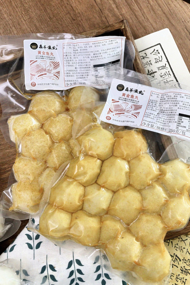 鲜嫩爆汁,鱼肉的灵魂暴击,“咬开像戳破一颗鲜鱼小炸弹!”,90%+鱼肉含量,优质的黄金鱼丸只用鲜鱼!剁碎后混合少量肥肉提香,高温油炸锁住汁水,咬开瞬间鱼汁迸发,能hold住多种烹饪方式!