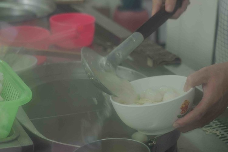 摔打完后,泡在温水中,让黄金鱼丸进一步变得有弹性,经过传统手工捶打,每一颗都口感Q弹,口感会更加绵密细致,一口醇香,鲜爽美味。