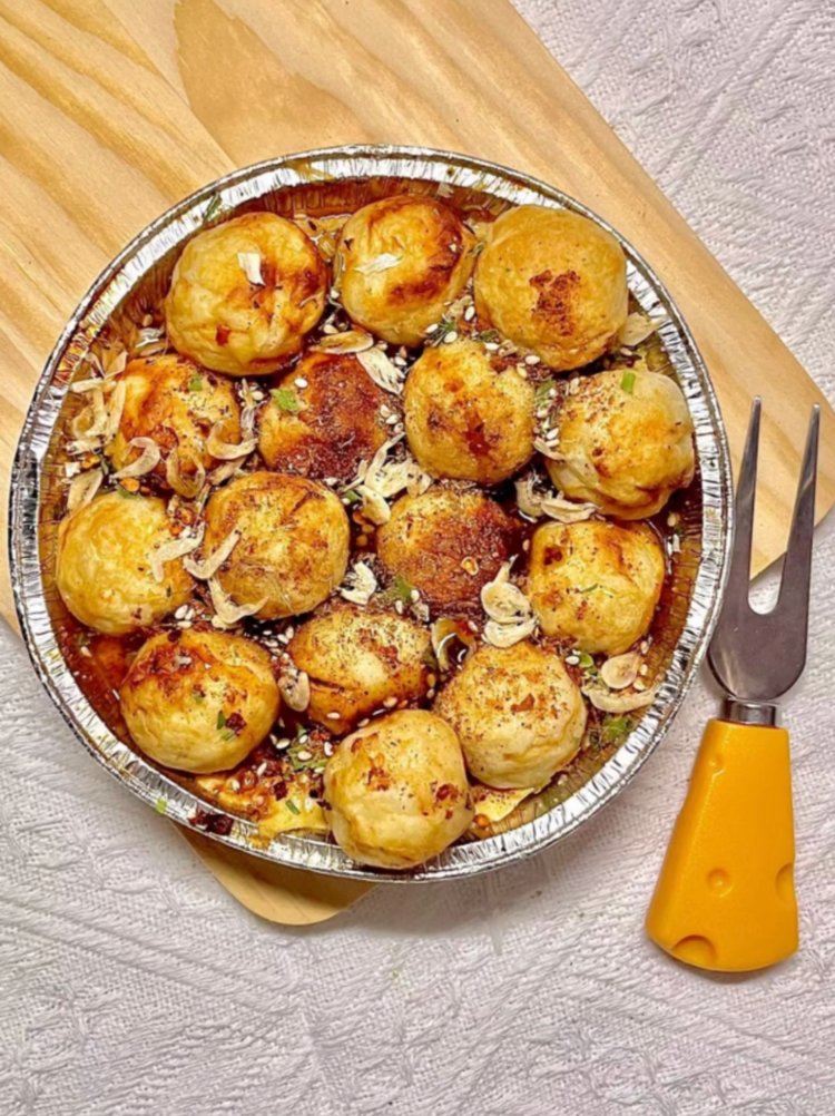 1️⃣ 爆汁神操作:鱼丸切花刀,空气炸锅180℃烤8分钟,外脆里爆浆!
