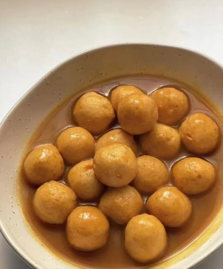 🌟 黄金鱼蛋 vs 普通鱼丸:烹饪兼容性更强,有着百变吃法!普通鱼丸多局限于火锅涮煮,而黄金鱼蛋凭借高弹性和吸汁能力。😋港吸收咖喱酱汁后外层香辣、内芯爆鲜❗️