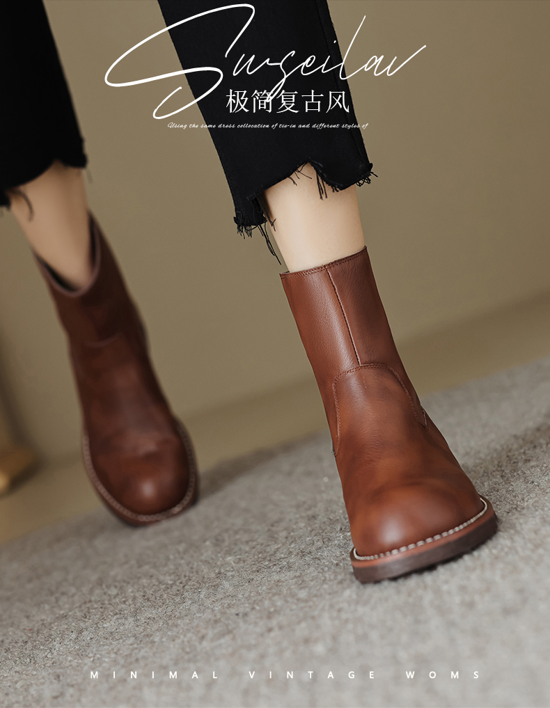 时尚气质,真皮平底短靴OFSM-OF6816R