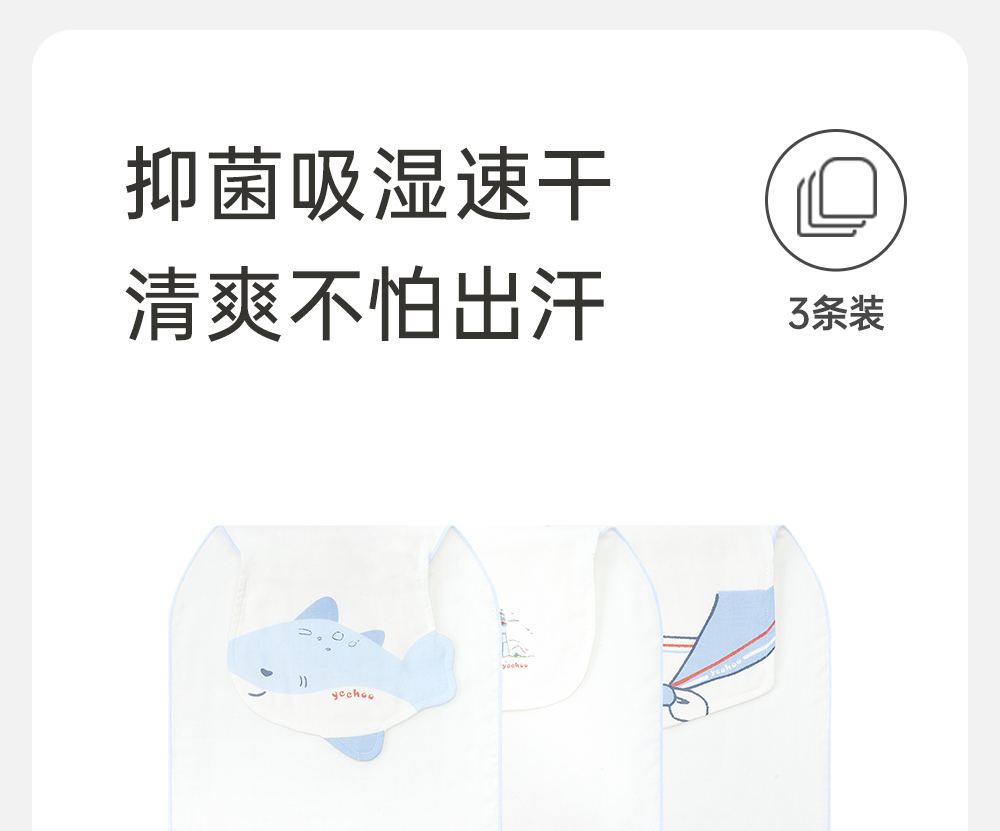 【商场同款】英氏赛柔丝吸汗巾宝宝抑菌垫背巾3条装新款