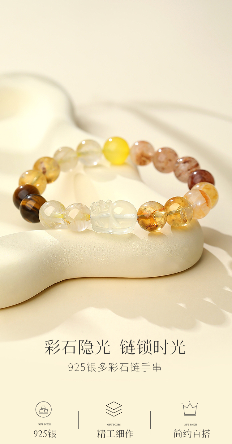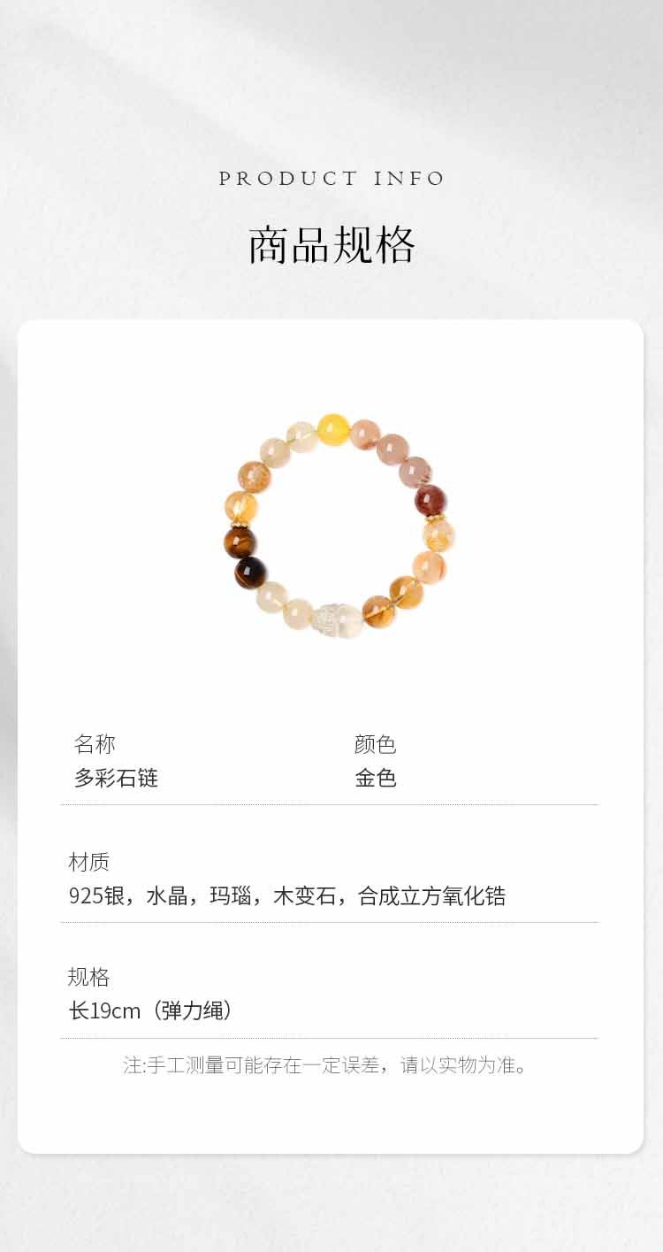 Winy s925银多彩石手链配证书送女友闺蜜节日生日礼物