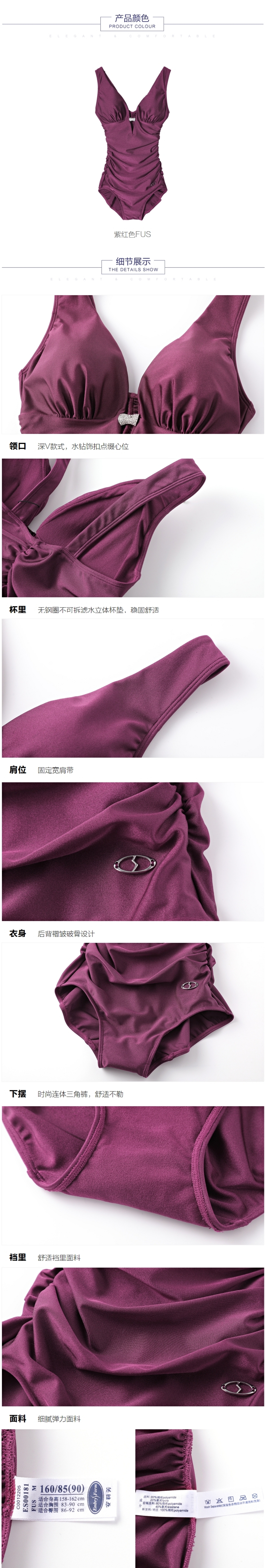 安莉芳性感深V美背连体泳衣女士无袖褶皱修身显瘦度假泳装ES00181