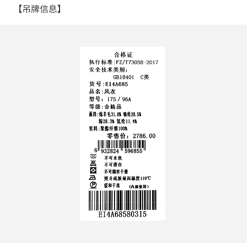 【绵羊毛】乔万尼秋冬新款美利奴羊毛大衣保暖舒适外套EI4A685