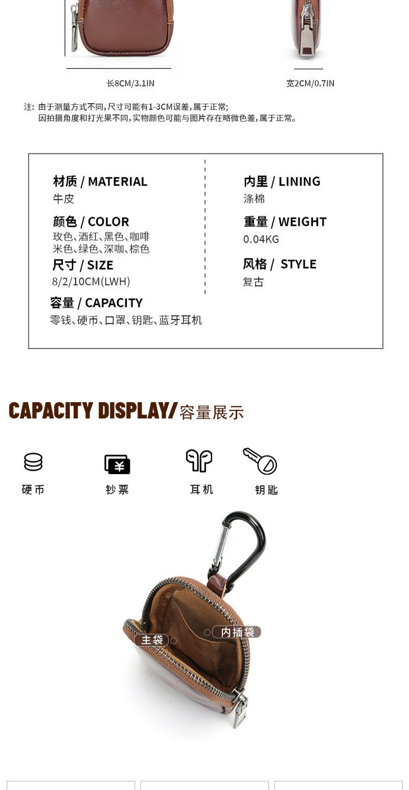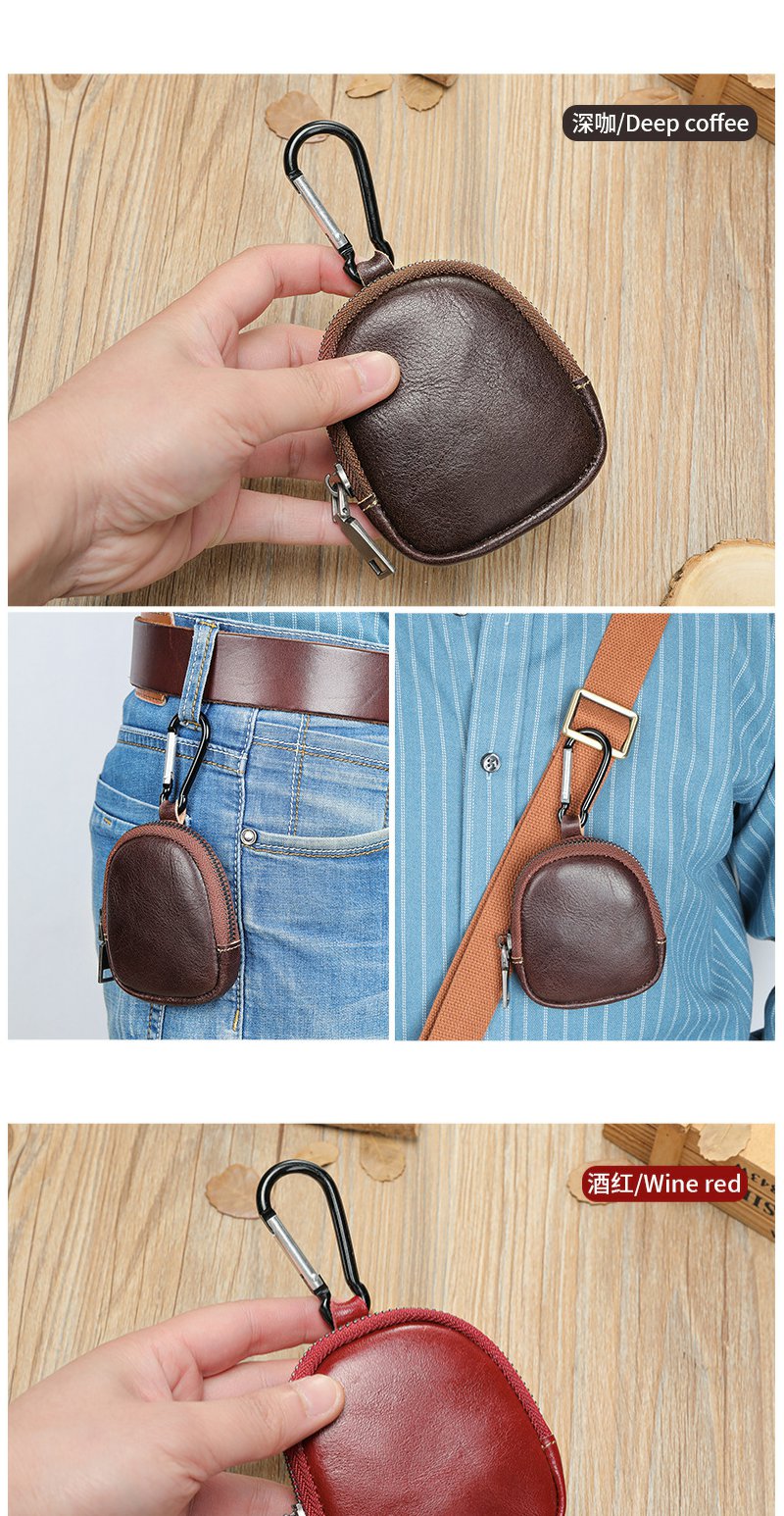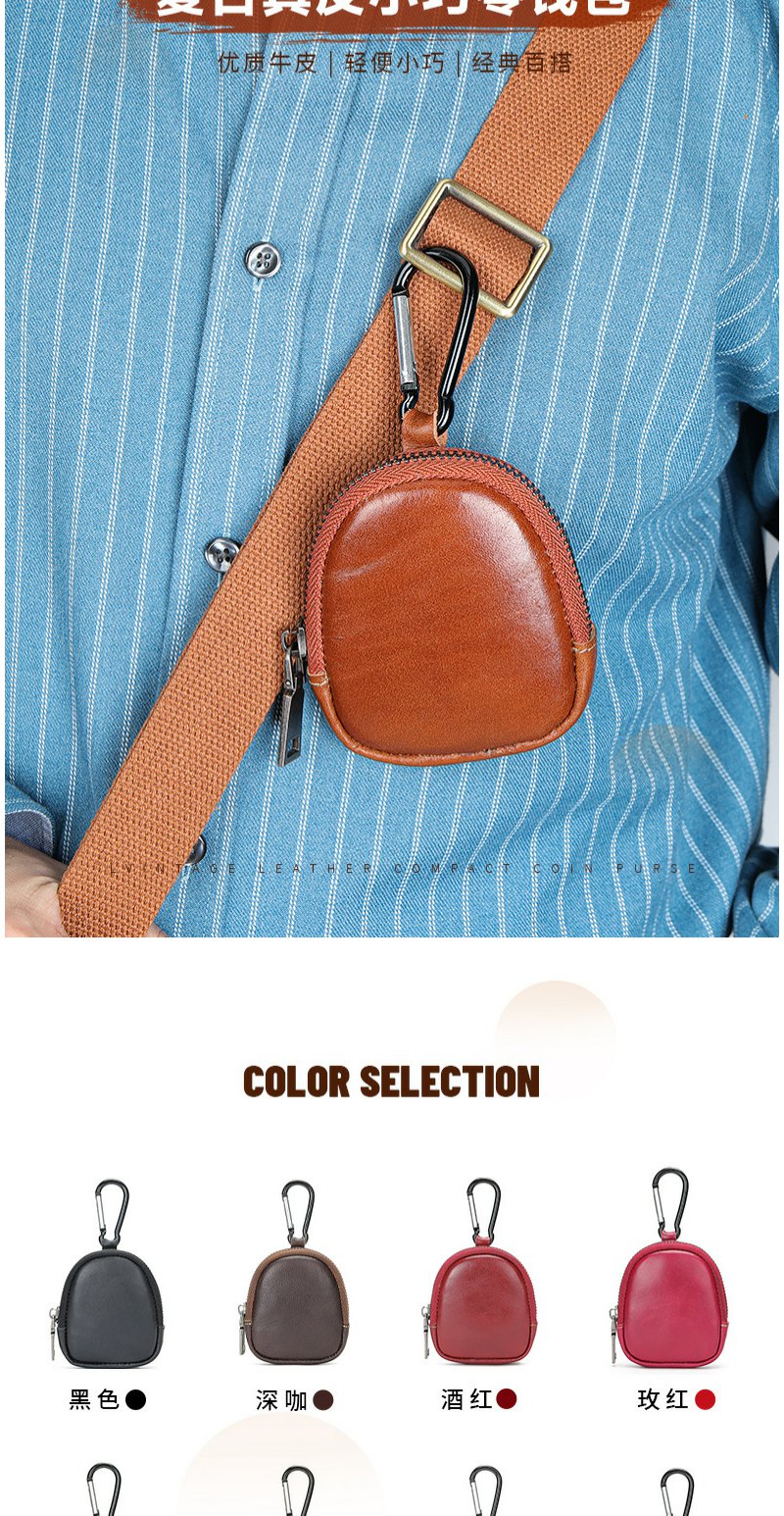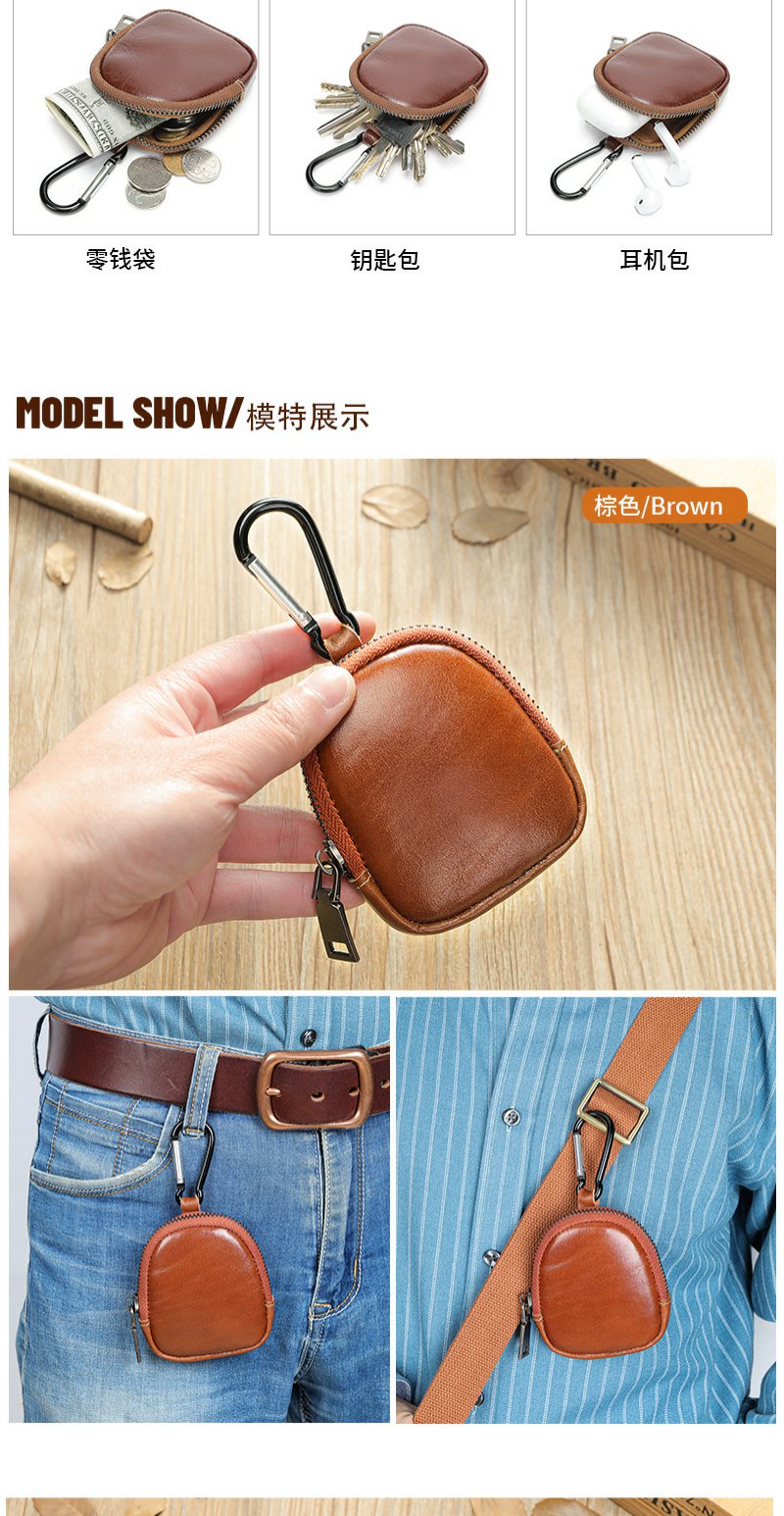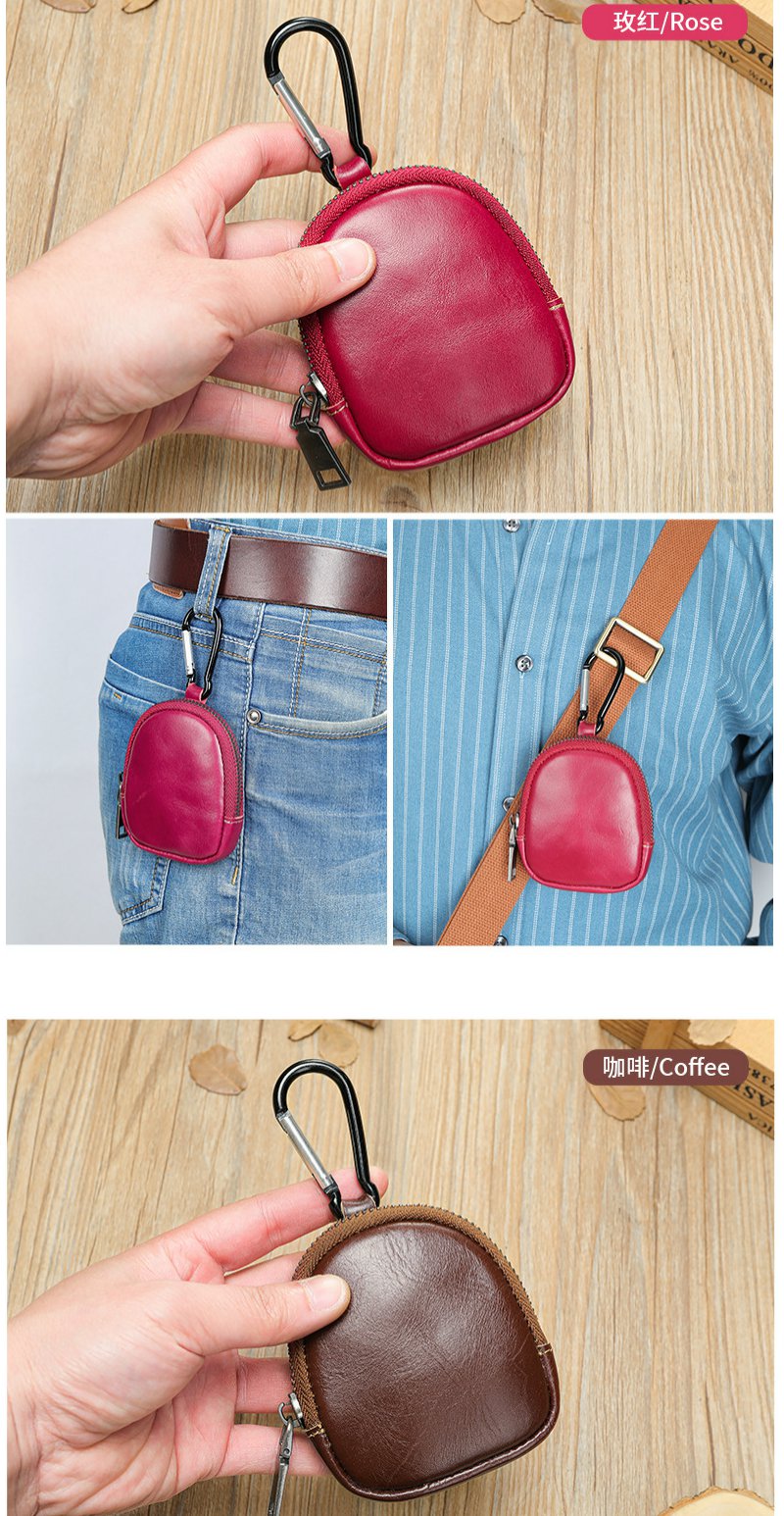 雀说 头层复古真皮小巧可爱零钱包 多功能耳机包迷你拉链钱包8061