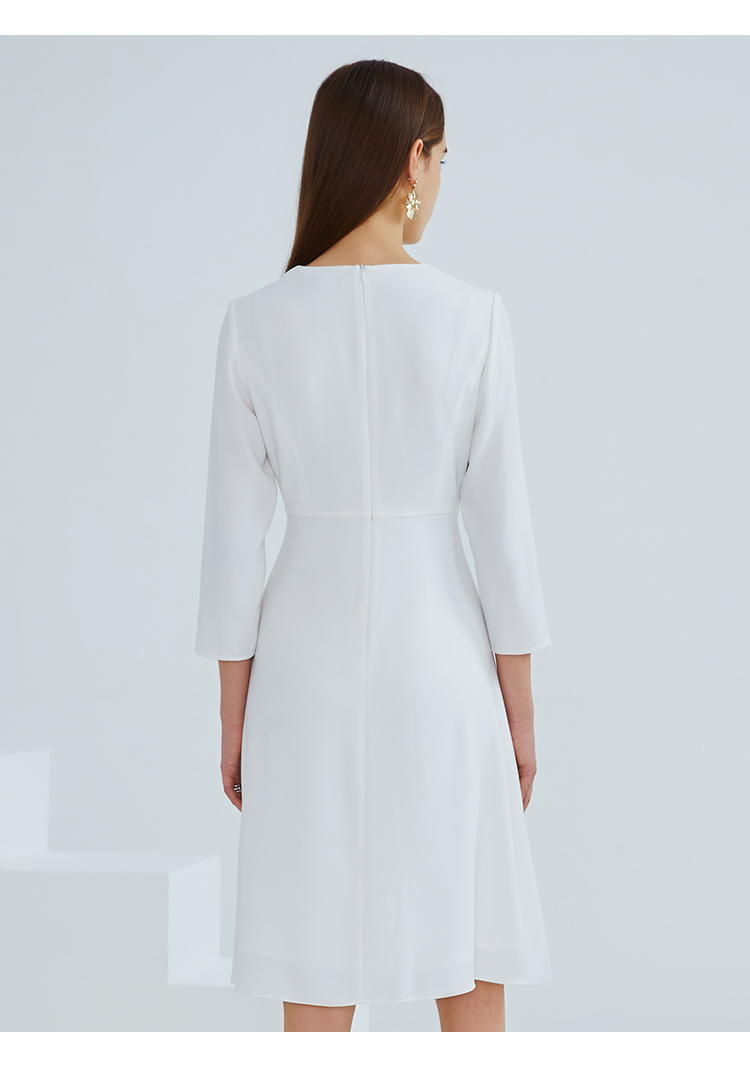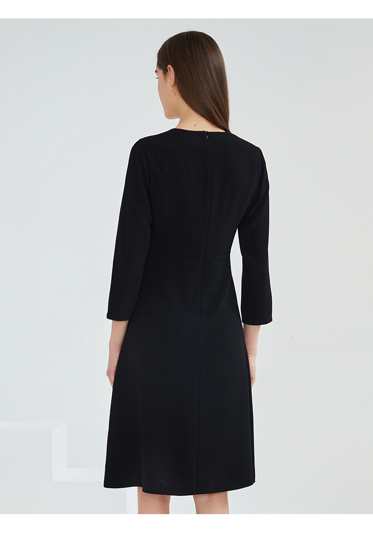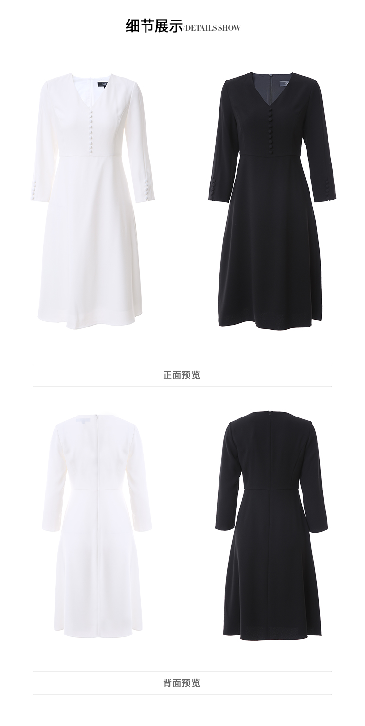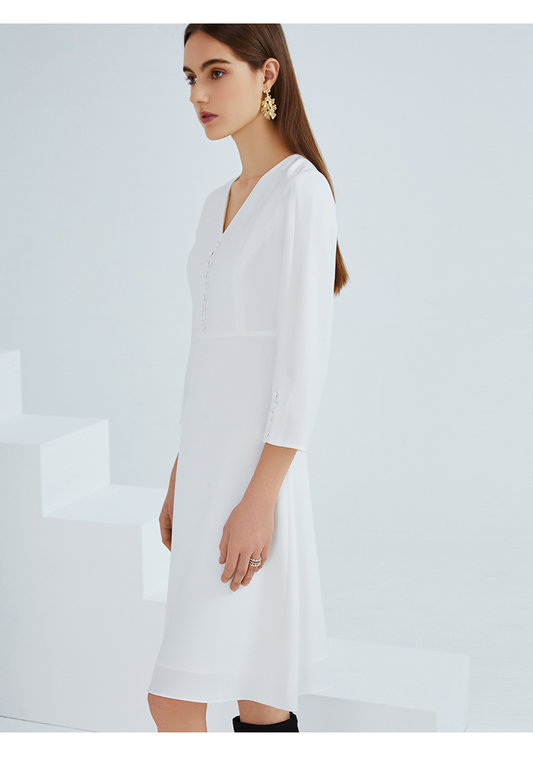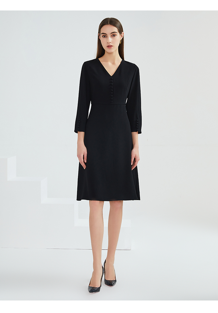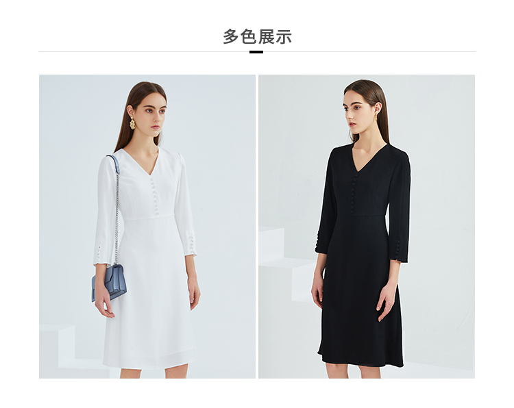 EITIE爱特爱春季新款洋气复古V领修身显瘦简约百搭气质连衣裙6307013