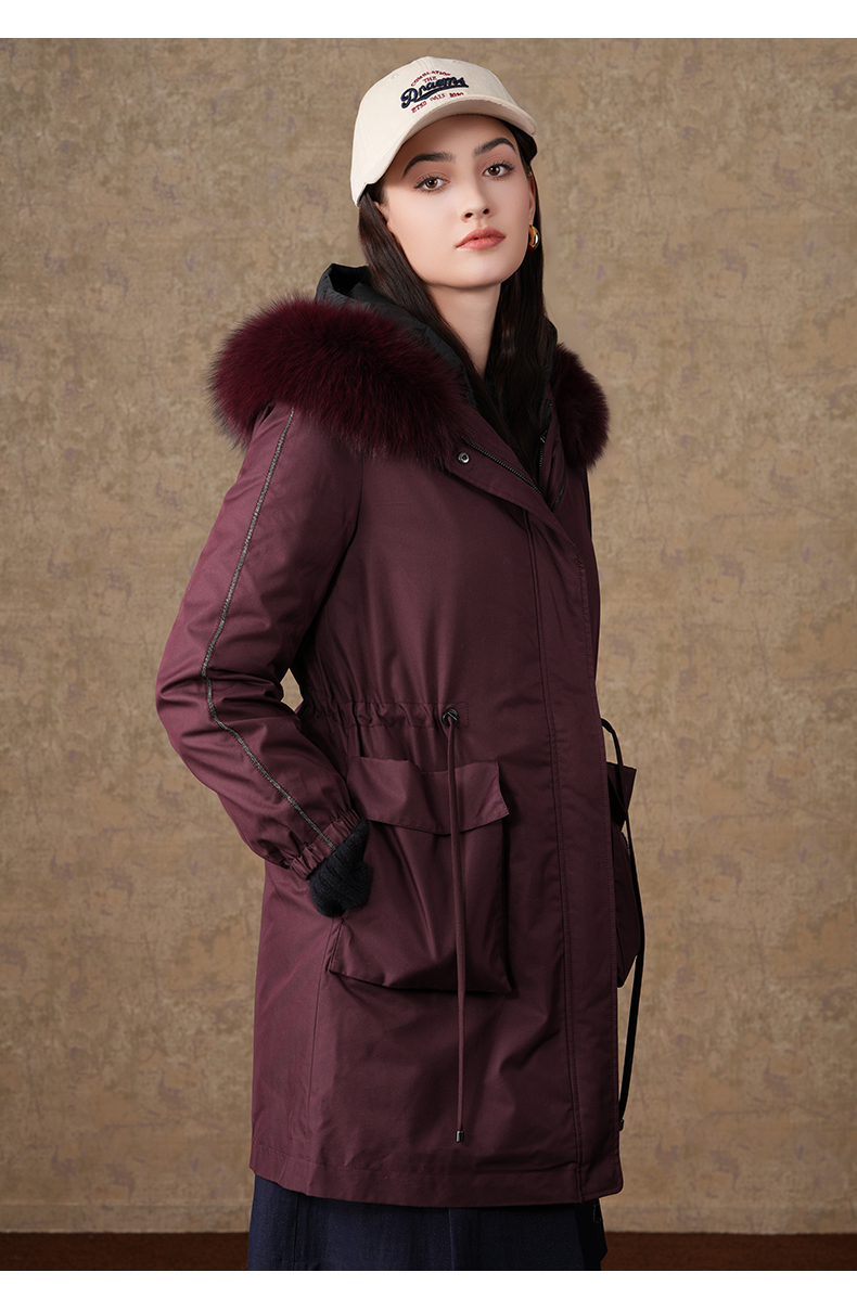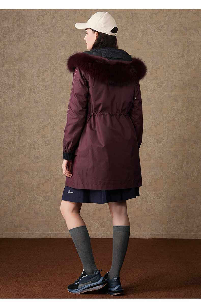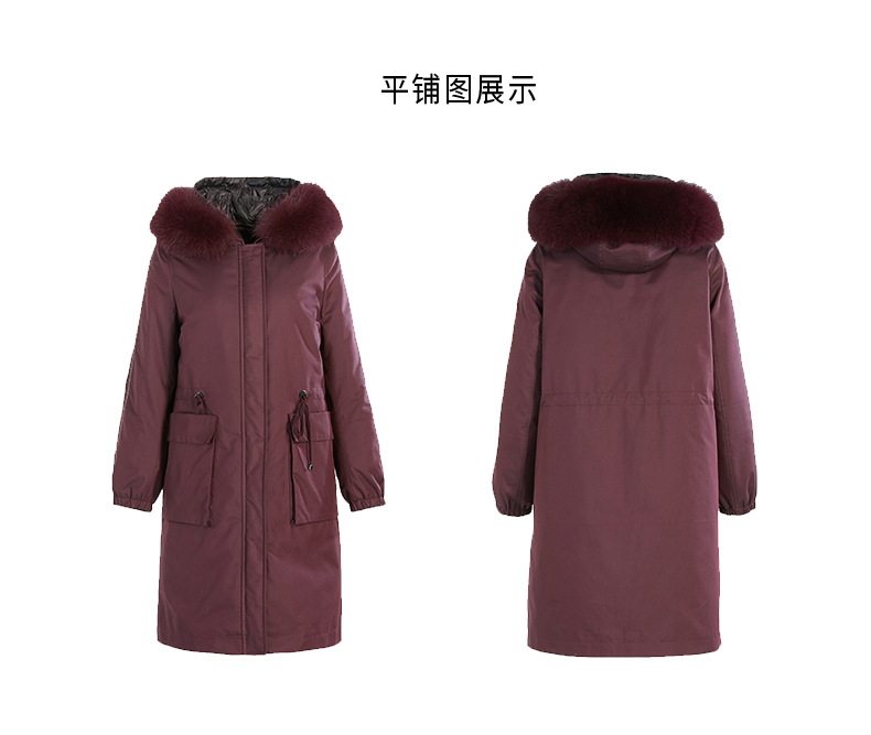 【两色可选】乔万尼秋冬新款连帽可收腰防风抗寒保暖狐毛派克羽绒服ES4T423