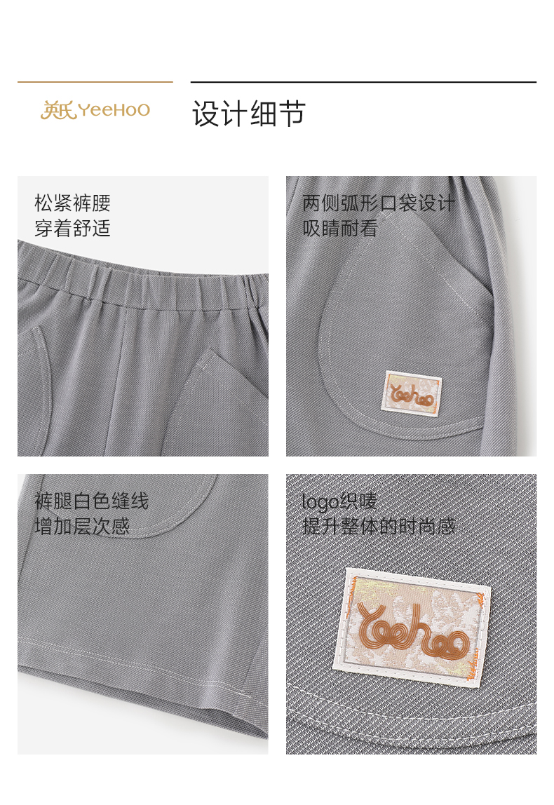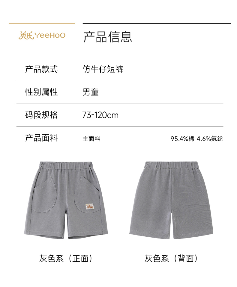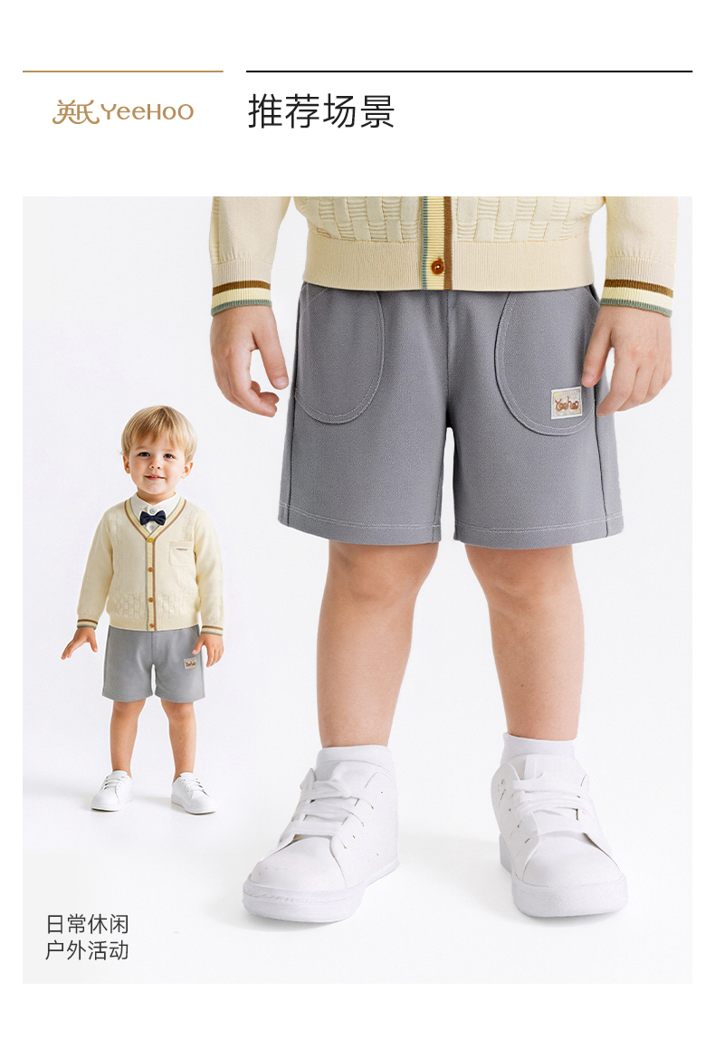 【商场同款】英氏儿童裤子男童夏季针织短裤灰色百搭休闲裤26新款