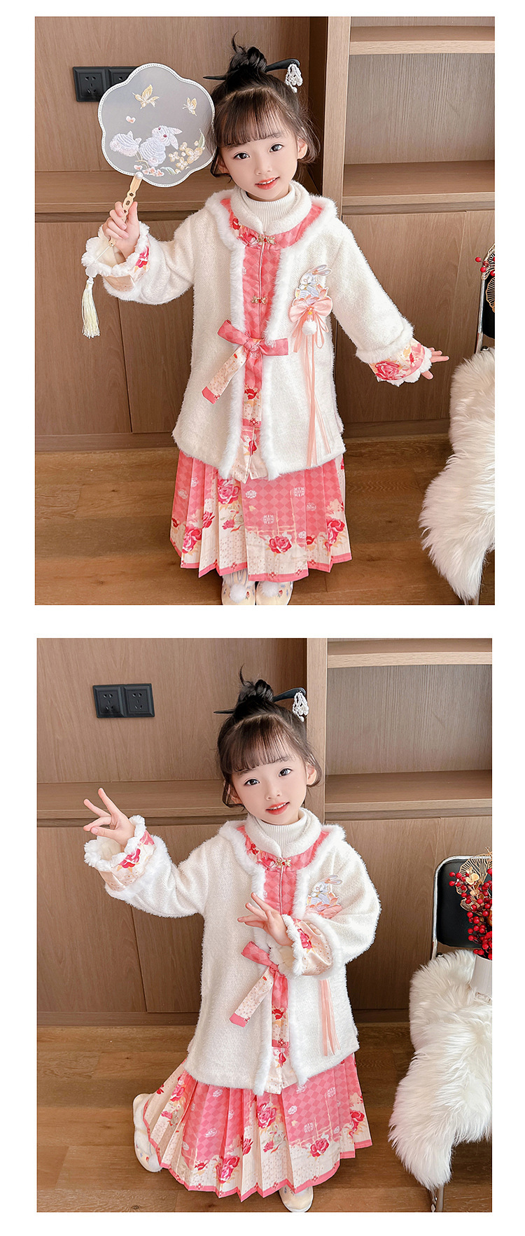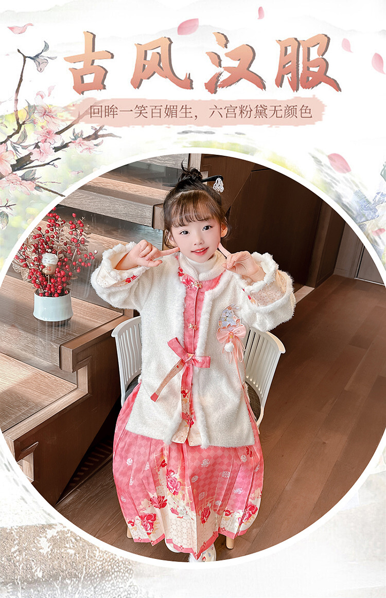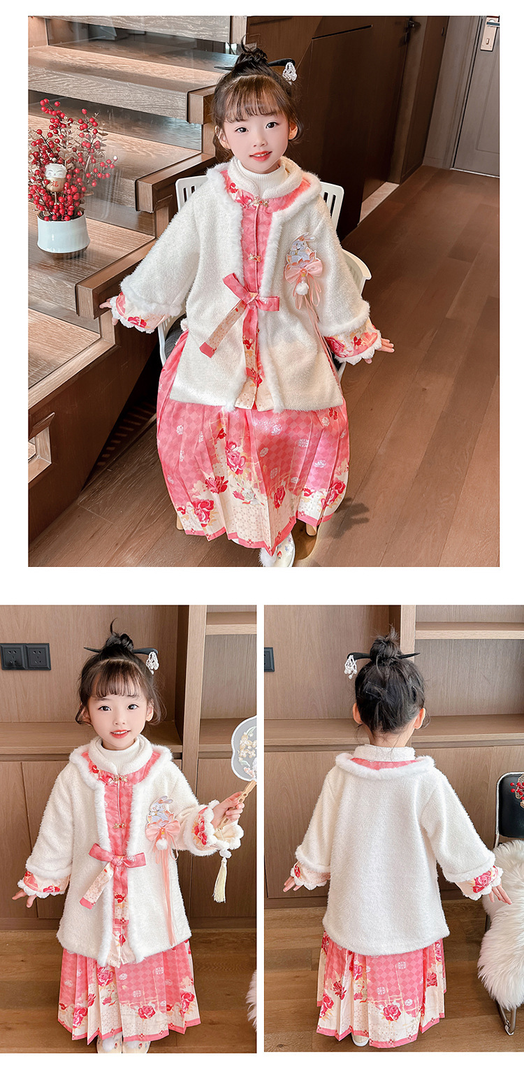 女童年服连衣裙,冬装儿童汉服古装冬季中国风加绒小女孩马面裙汉服PJX-TS36